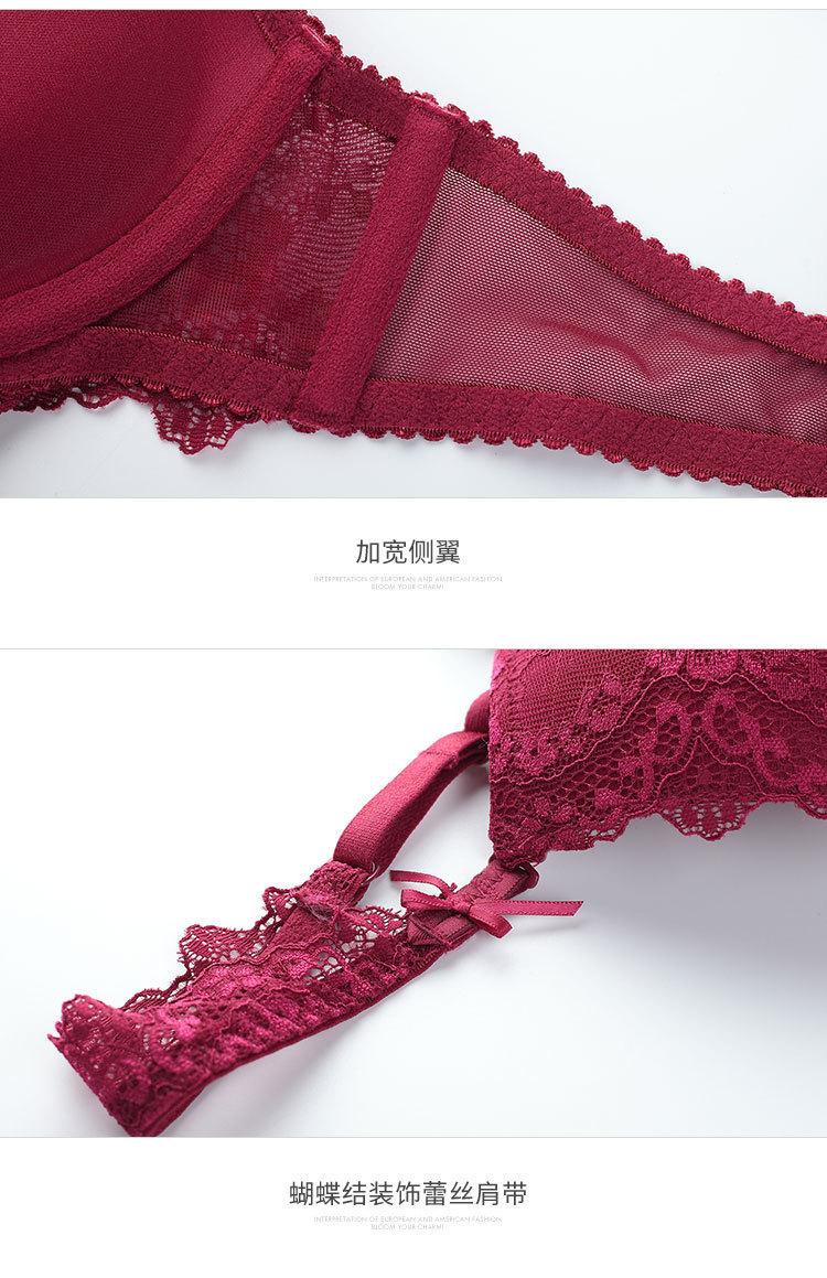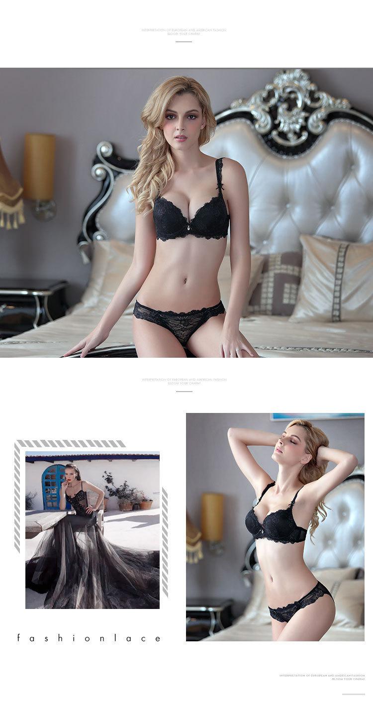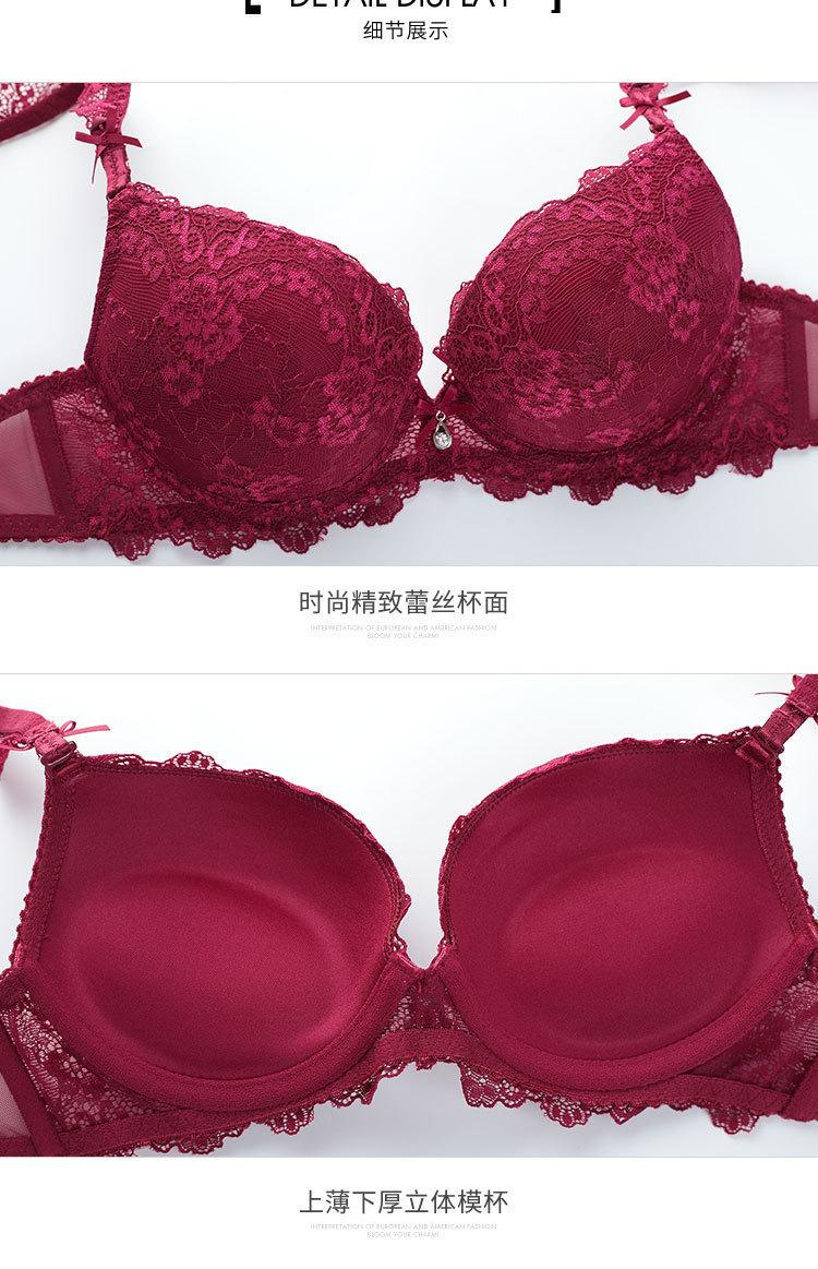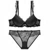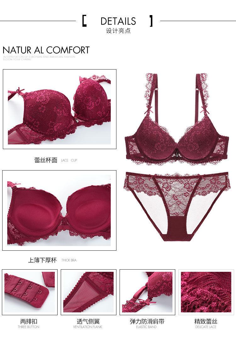 Íntimos Sexy Push-Up para Busto Pequeño Europeo y Americano, Íntimos Retractores de Busto Anticaída, Copa Delgada y Base Gruesa, Set de Brasier de Encaje Push-Up