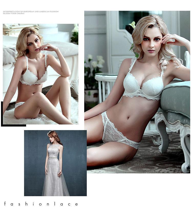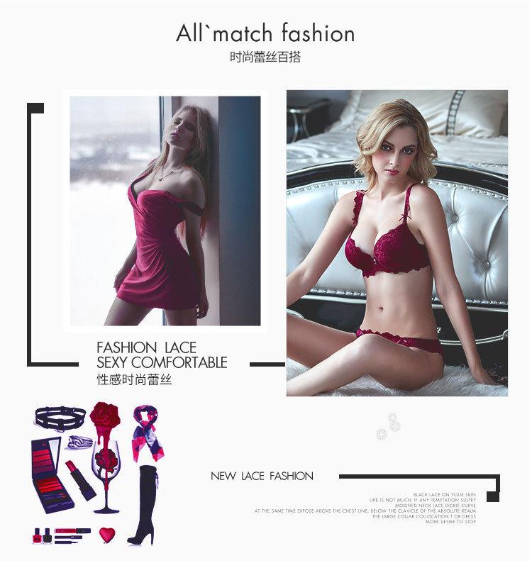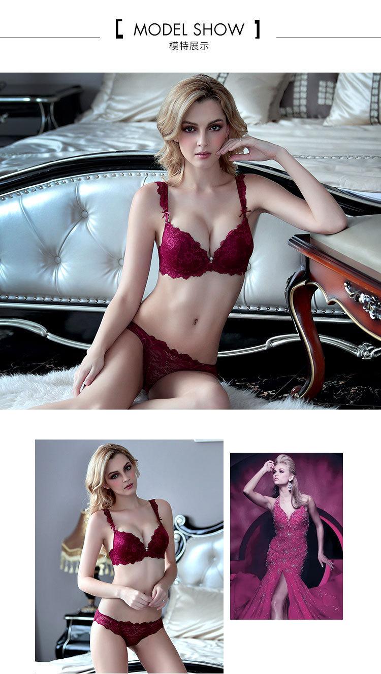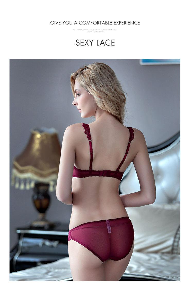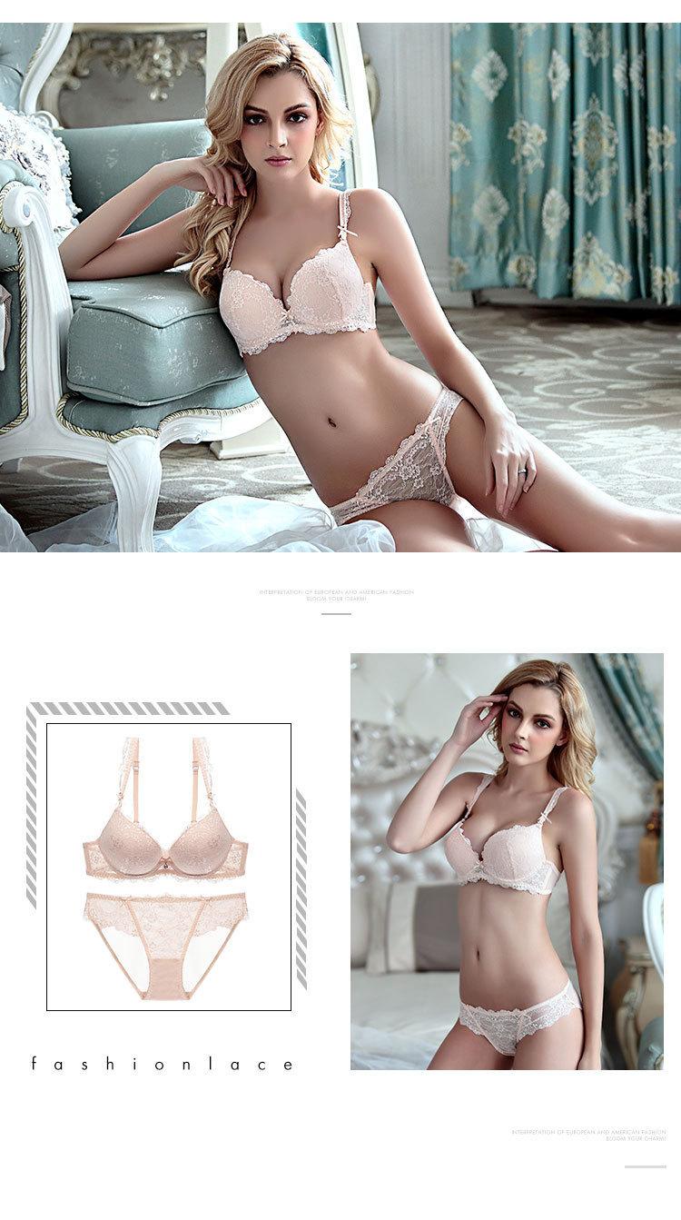 Íntimos Sexy Push-Up para Busto Pequeño Europeo y Americano, Íntimos Retractores de Busto Anticaída, Copa Delgada y Base Gruesa, Set de Brasier de Encaje Push-Up
