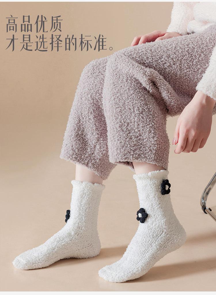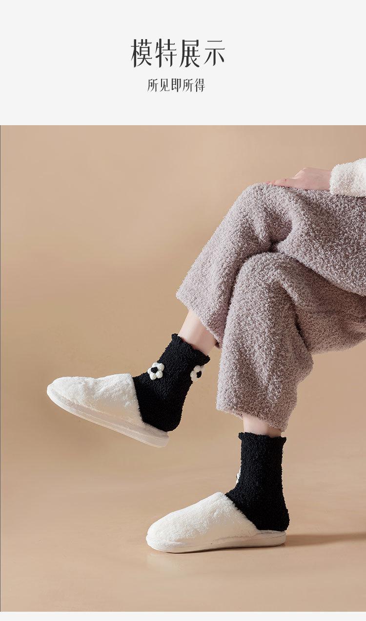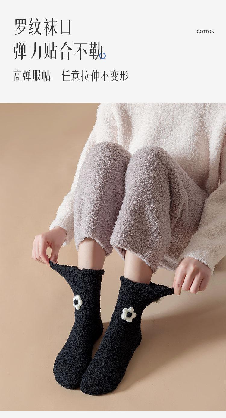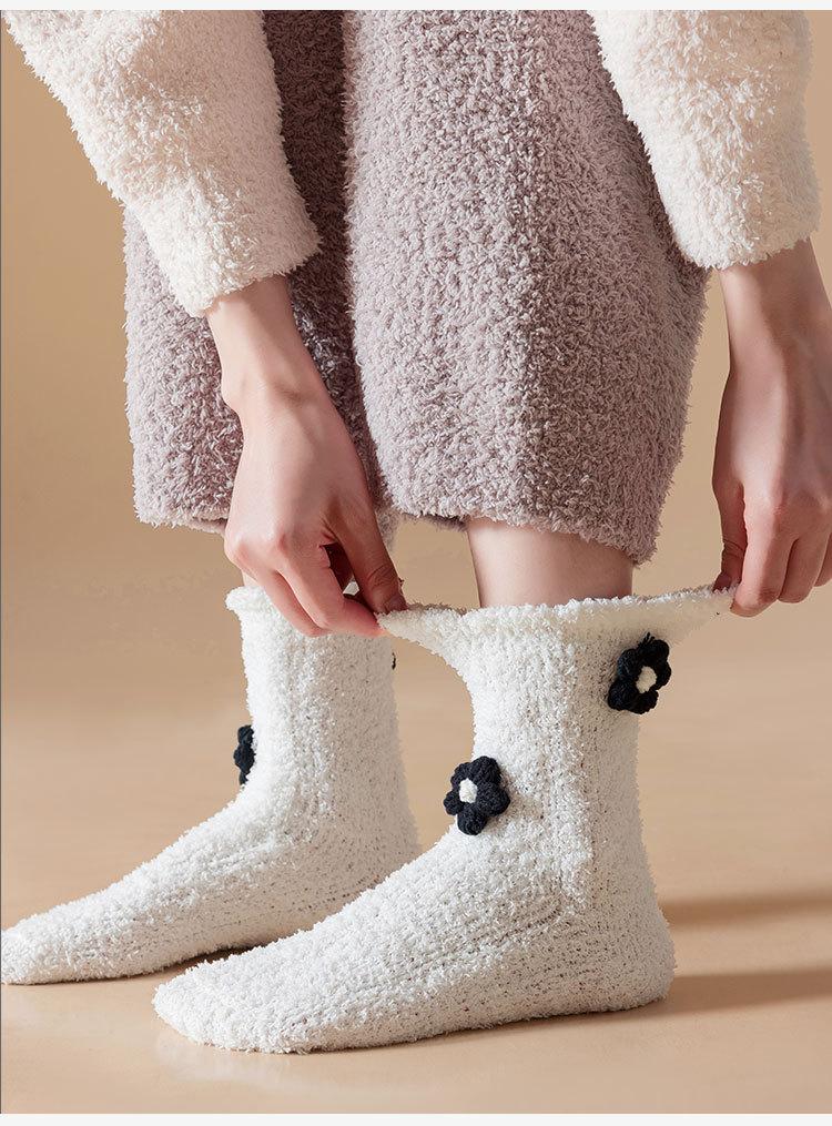 Calcetines de suelo de vellón coral para mujer, forrados con vellón grueso, cálidos, de otoño e invierno, de felpa, para el hogar, con pequeñas flores.