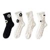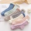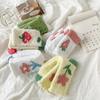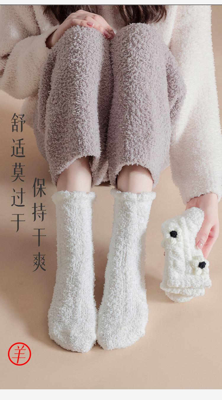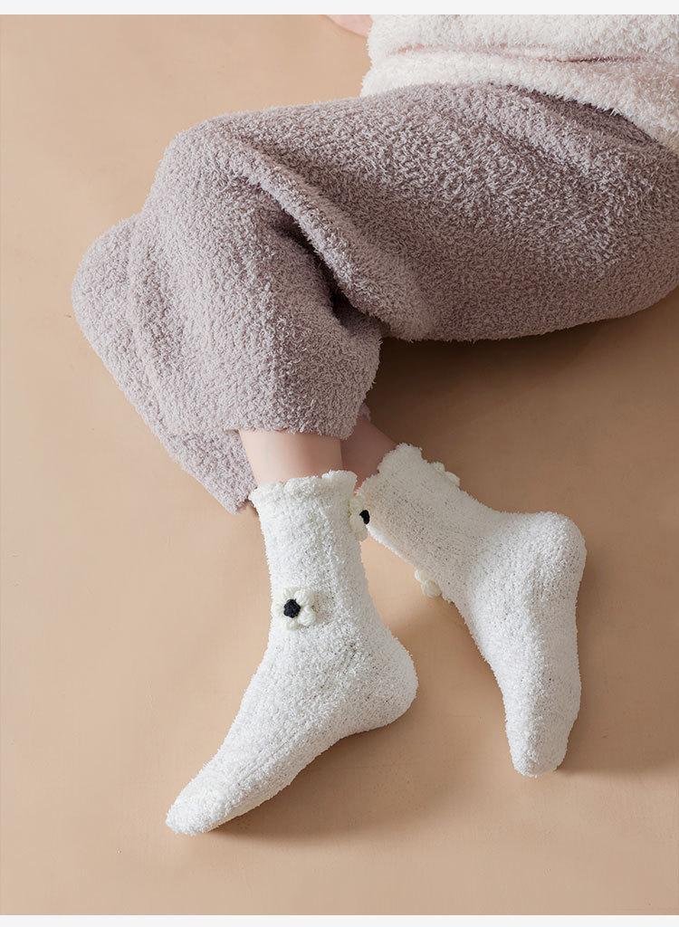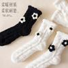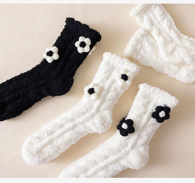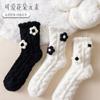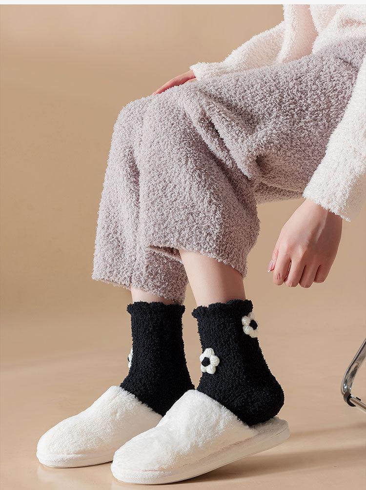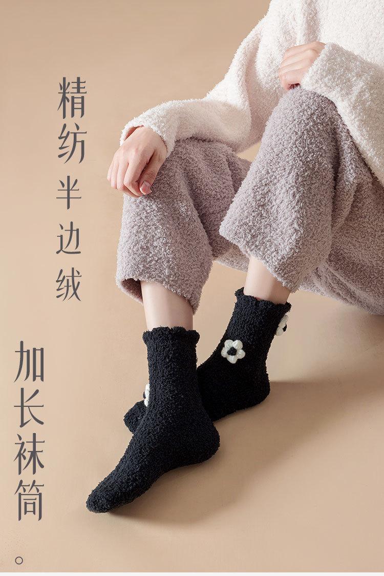Calcetines de suelo de vellón coral para mujer, forrados con vellón grueso, cálidos, de otoño e invierno, de felpa, para el hogar, con pequeñas flores.