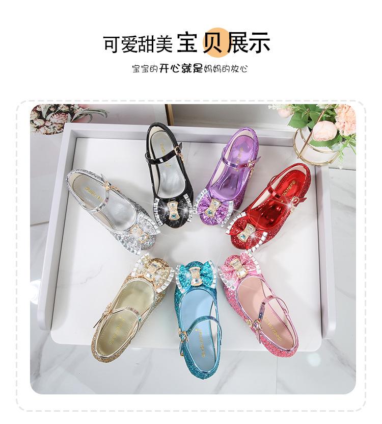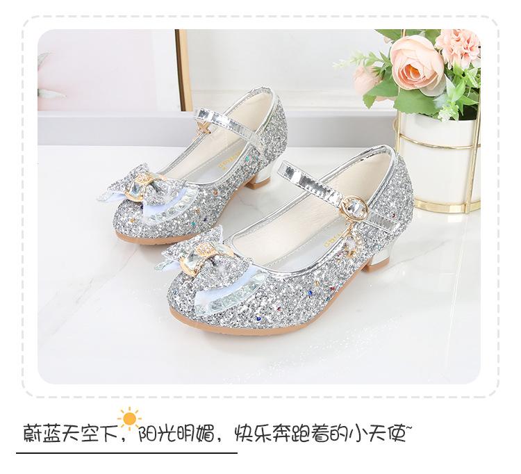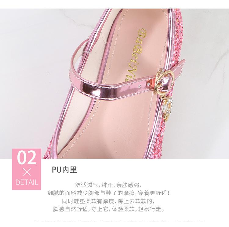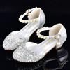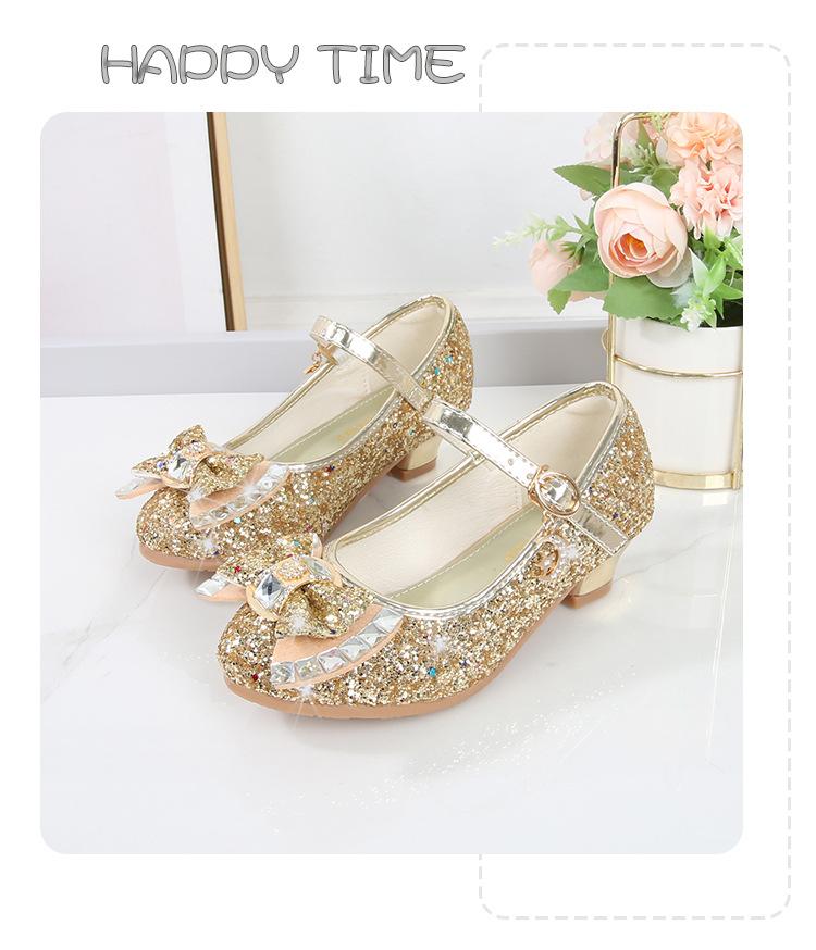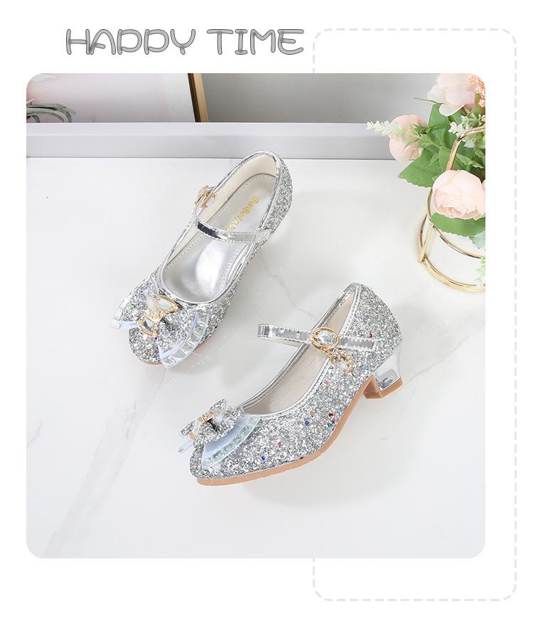 Zapatos de Tacón Alto para Niñas Primavera 2025 Nuevos Zapatos de Princesa Zapatos Individuales para Estudiantes y Niños Zapatos de Cuero Cristal para Actuación para Niñitas