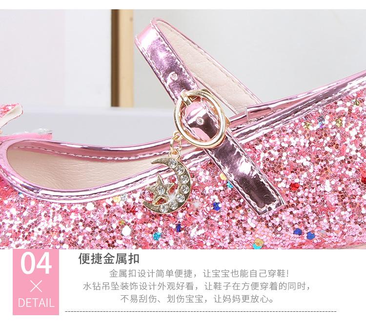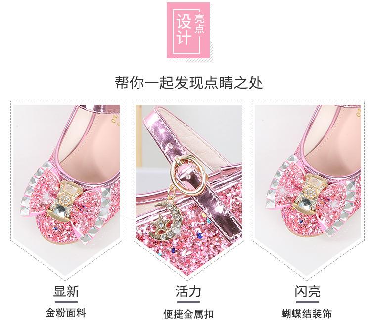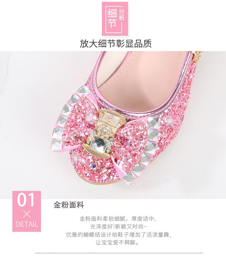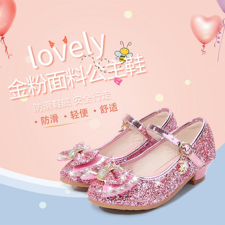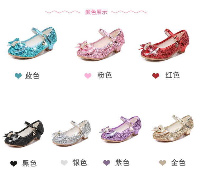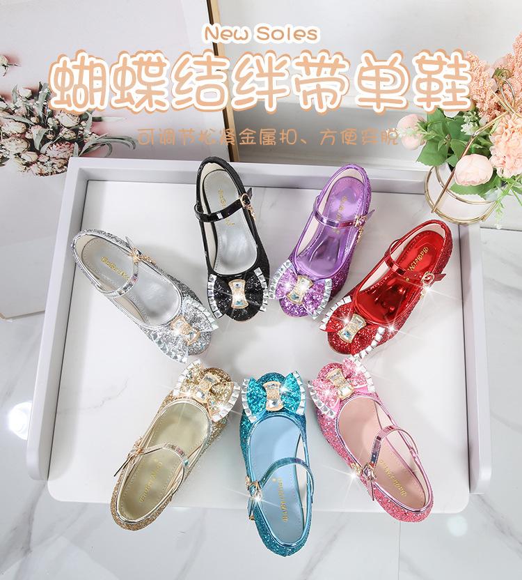 Zapatos de Tacón Alto para Niñas Primavera 2025 Nuevos Zapatos de Princesa Zapatos Individuales para Estudiantes y Niños Zapatos de Cuero Cristal para Actuación para Niñitas