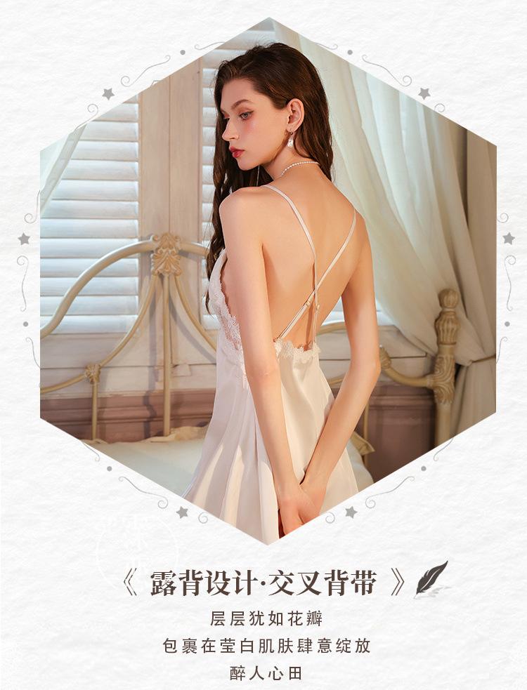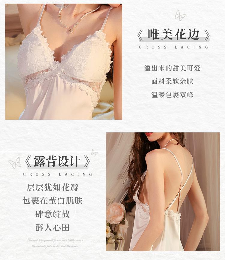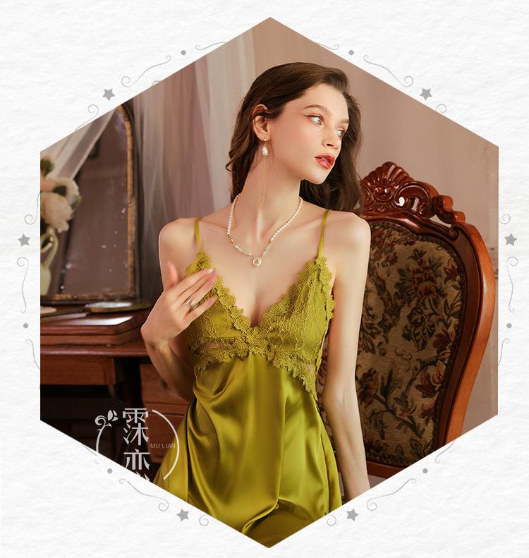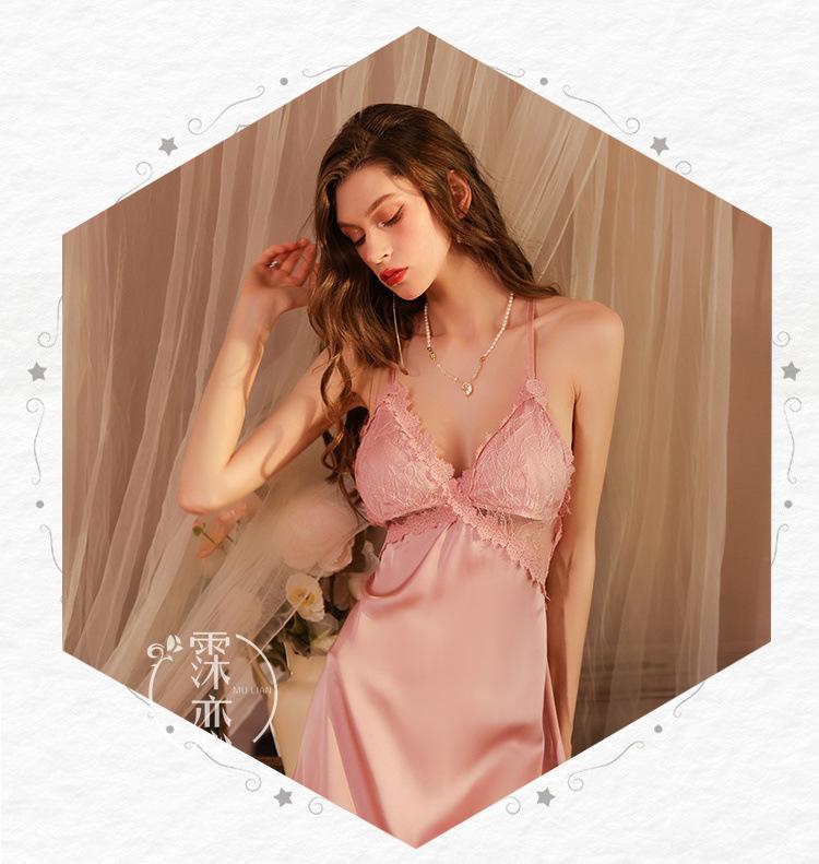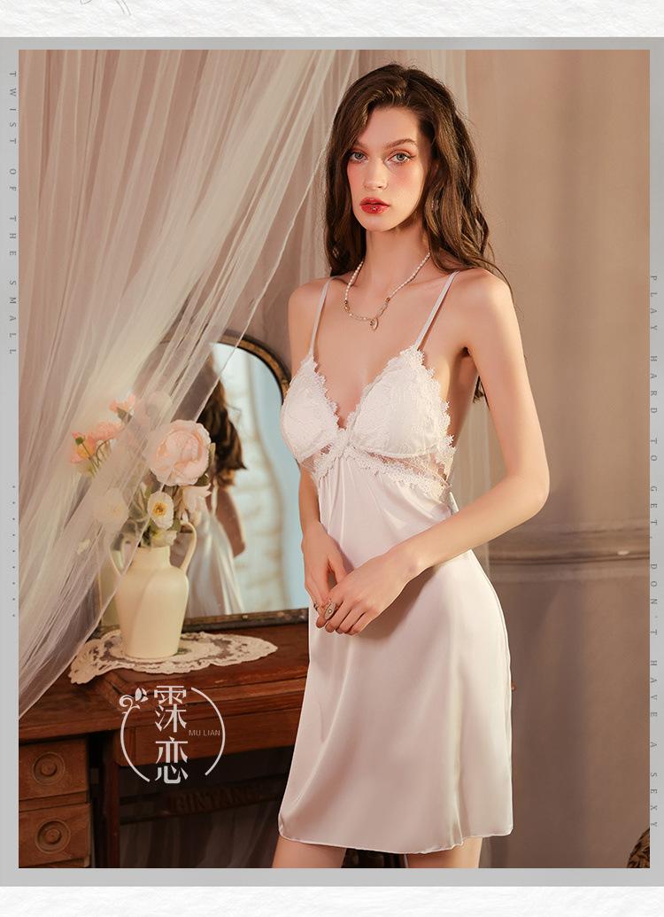 Pijama Estilo Francés Puro Deseo Verano para Mujer Sexy Camisón Delgado Cinta de Hielo Almohadilla para el Pecho Camisón con Tirantes Traje Ropa para el Hogar