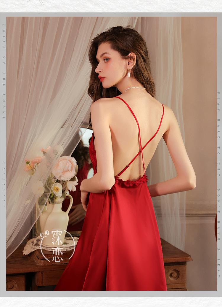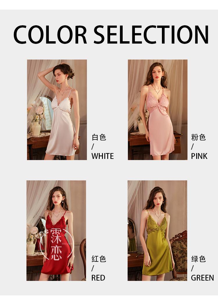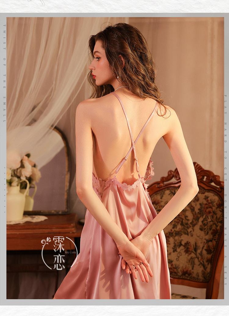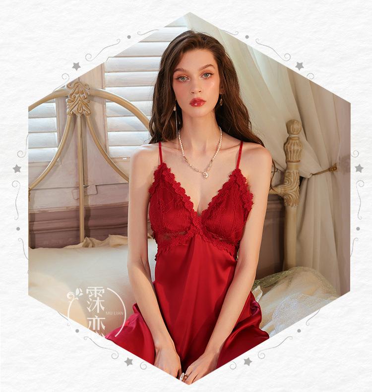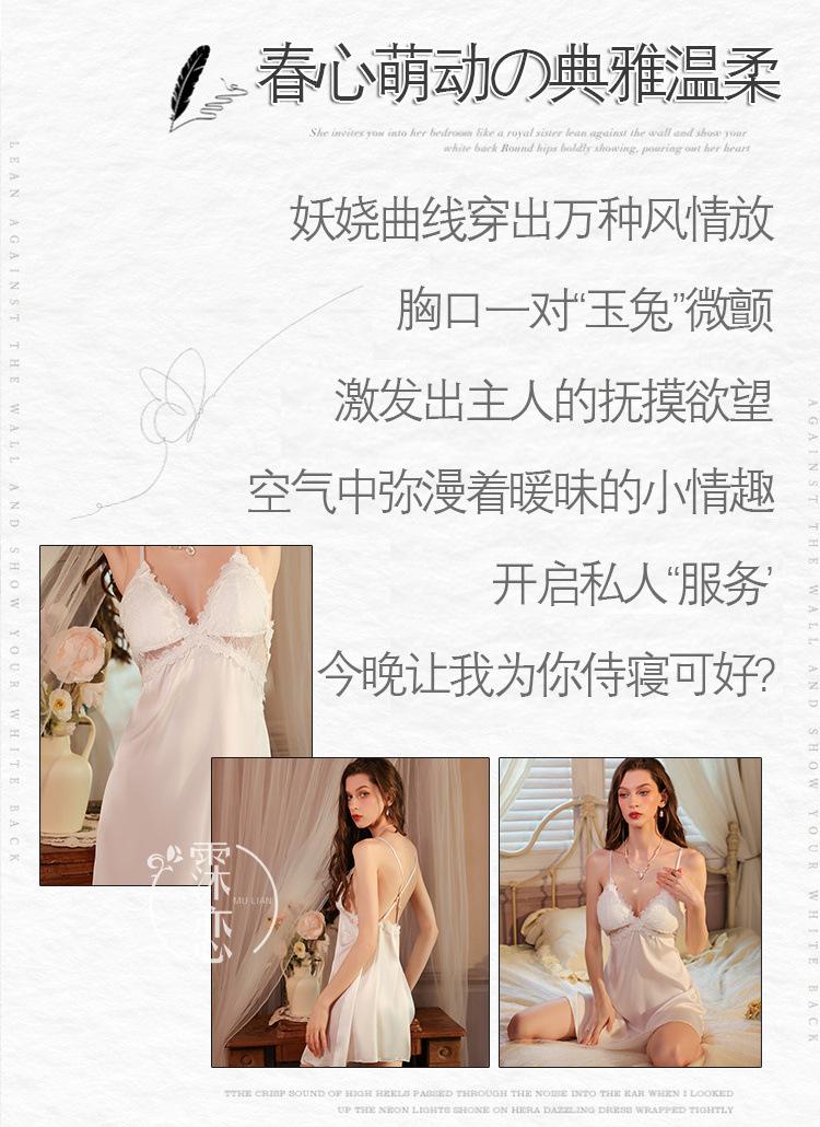 Pijama Estilo Francés Puro Deseo Verano para Mujer Sexy Camisón Delgado Cinta de Hielo Almohadilla para el Pecho Camisón con Tirantes Traje Ropa para el Hogar