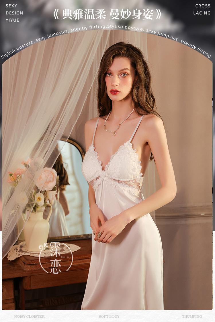 Lencería sexy Milian, camisón sexy sin mangas de talla grande, ropa de casa de estilo coreano, tirantes de encaje, ropa sexy de puro deseo