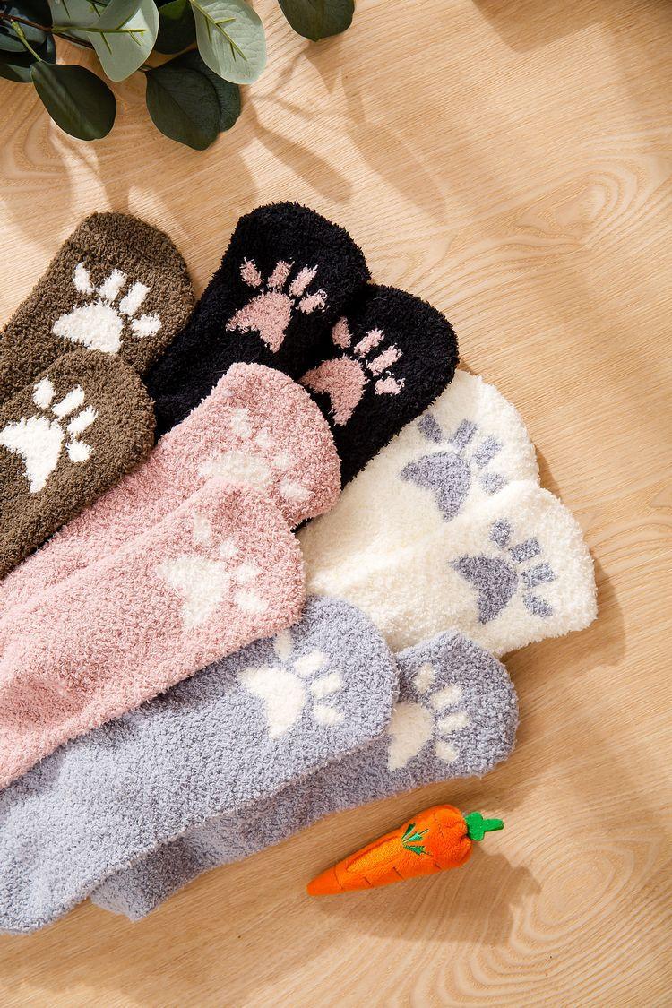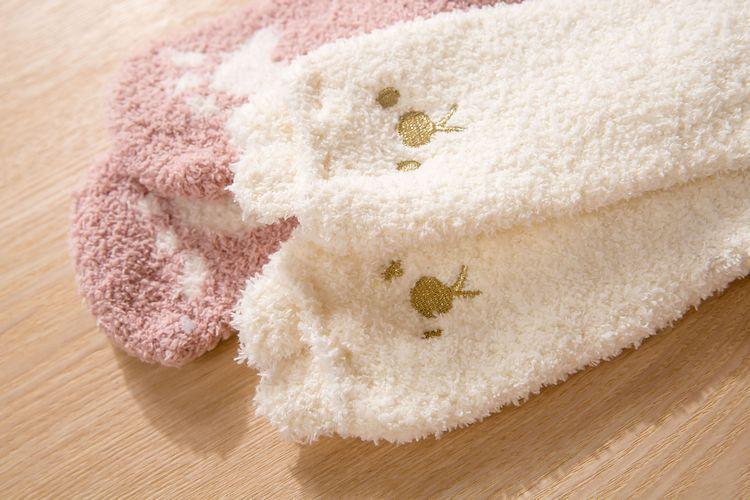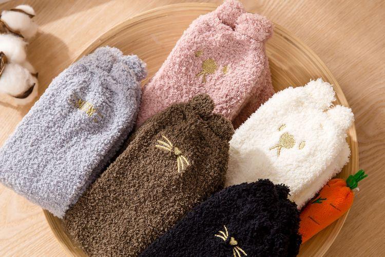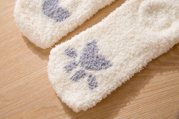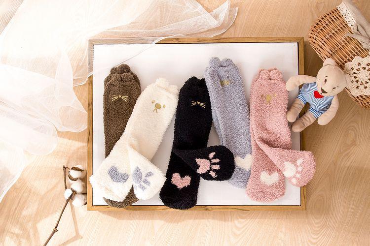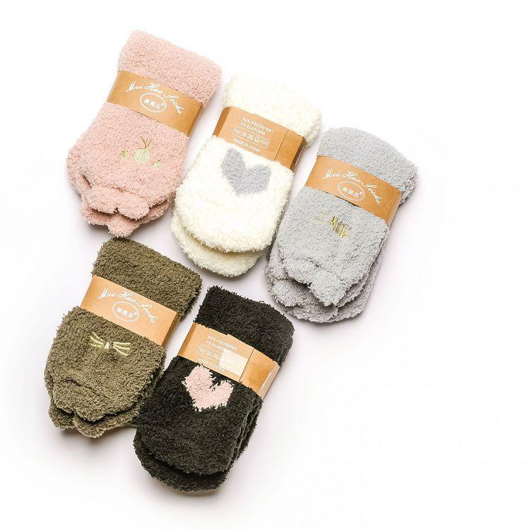 Calcetines de Mujer de Otoño e Invierno 2018 con Bordado de Gato Amor de Vellón Coral