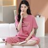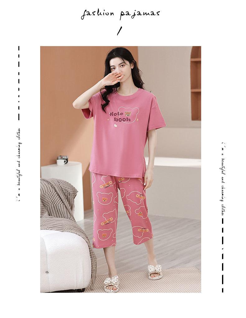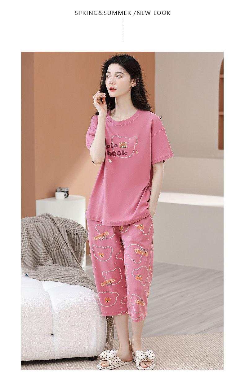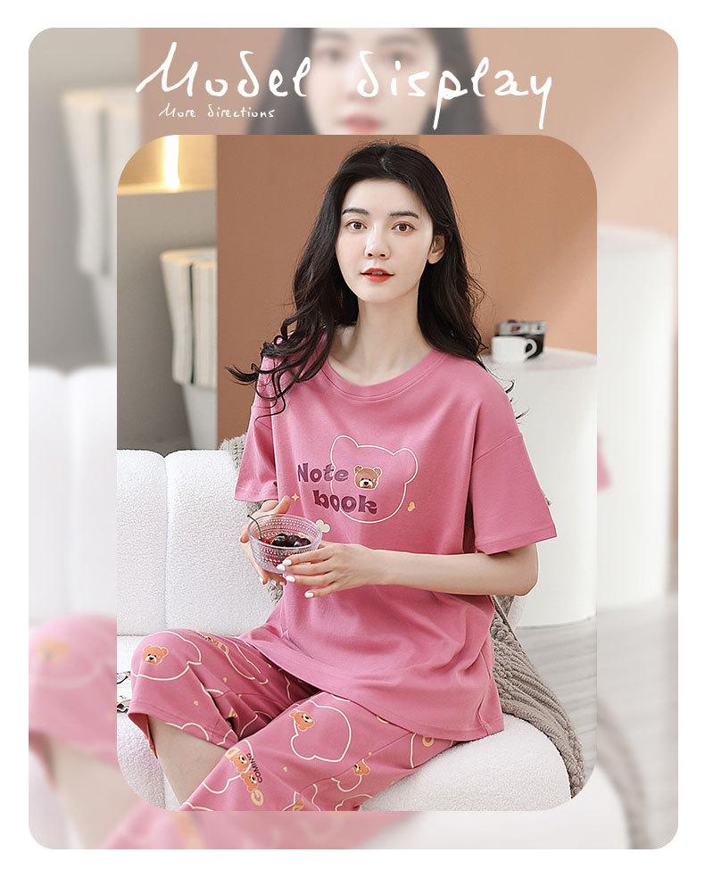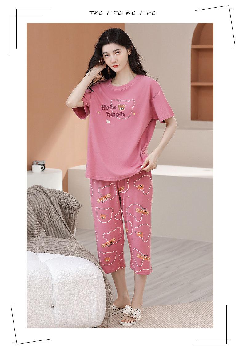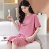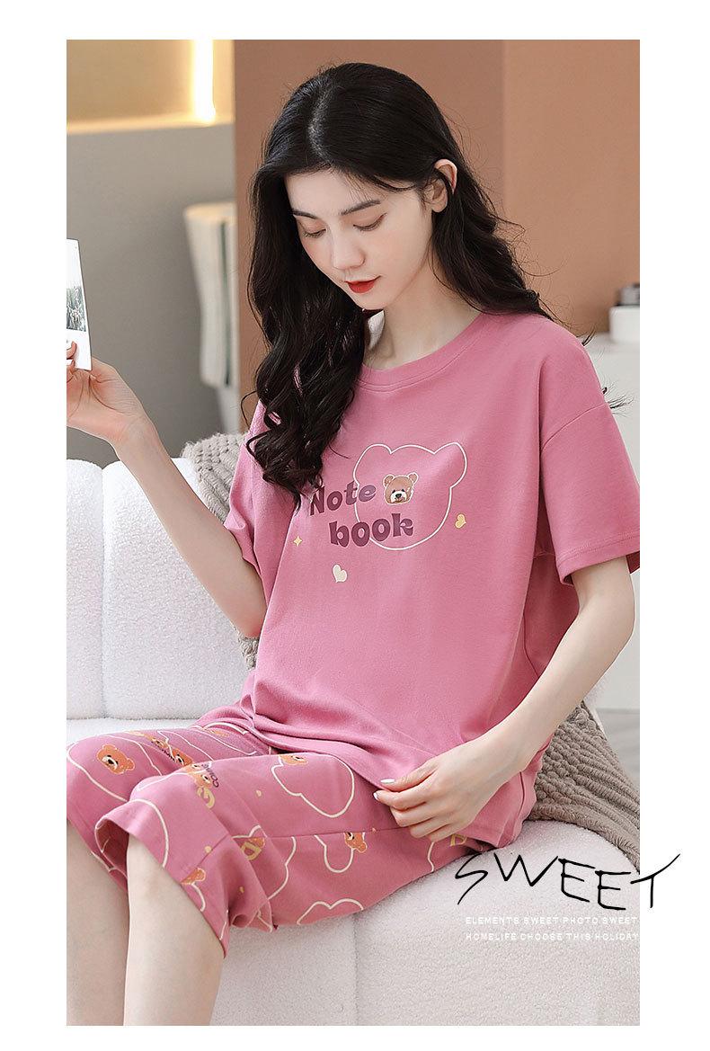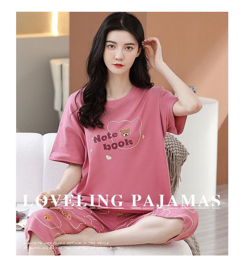 Pijama de algodón de verano para mujer, de manga corta, con pantalones cortos, traje de dos piezas, ropa informal de dibujos animados para el hogar para jóvenes y medianas edades.