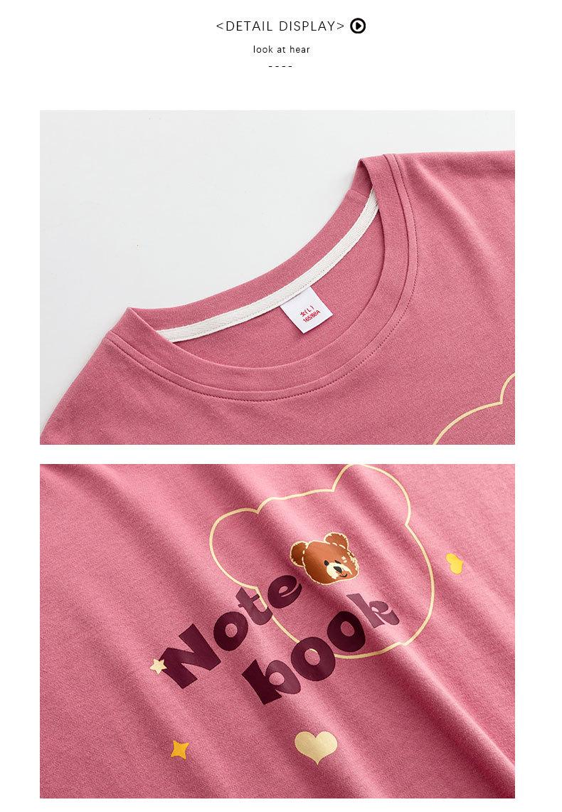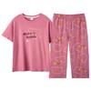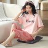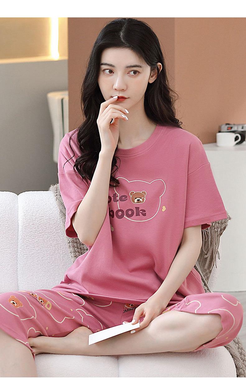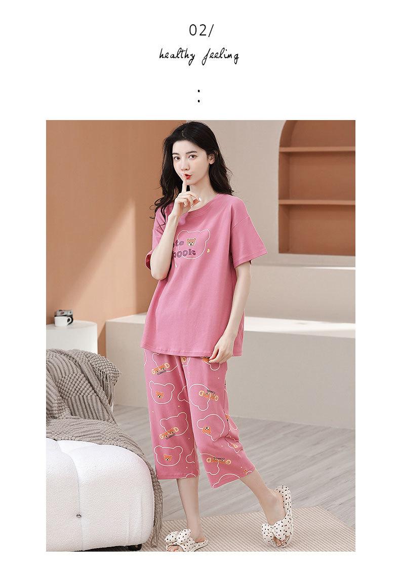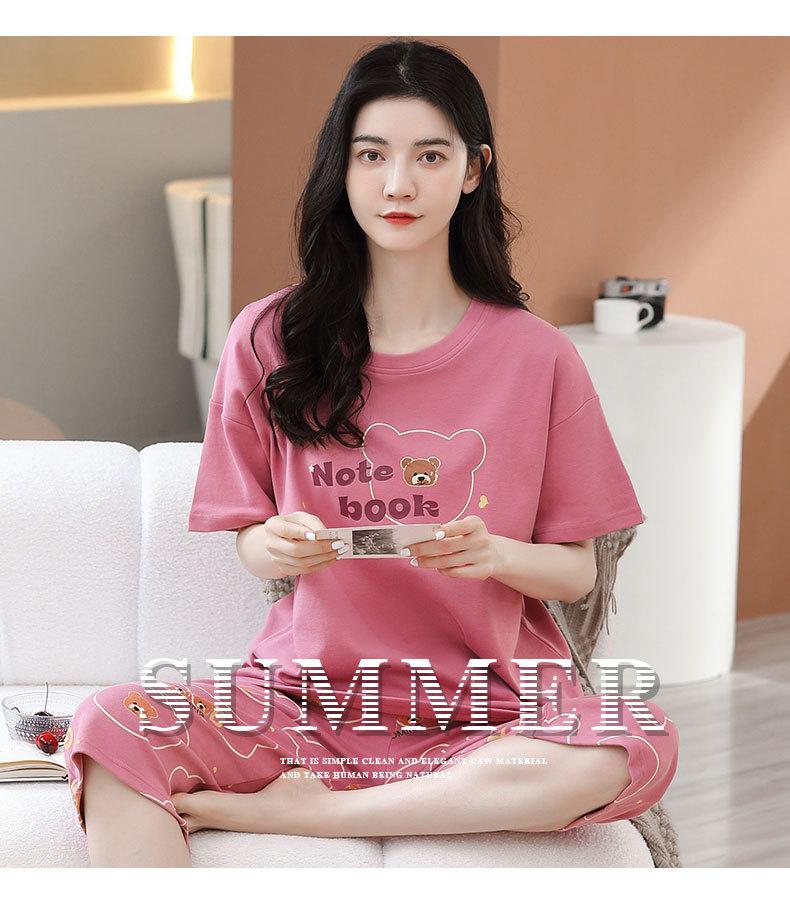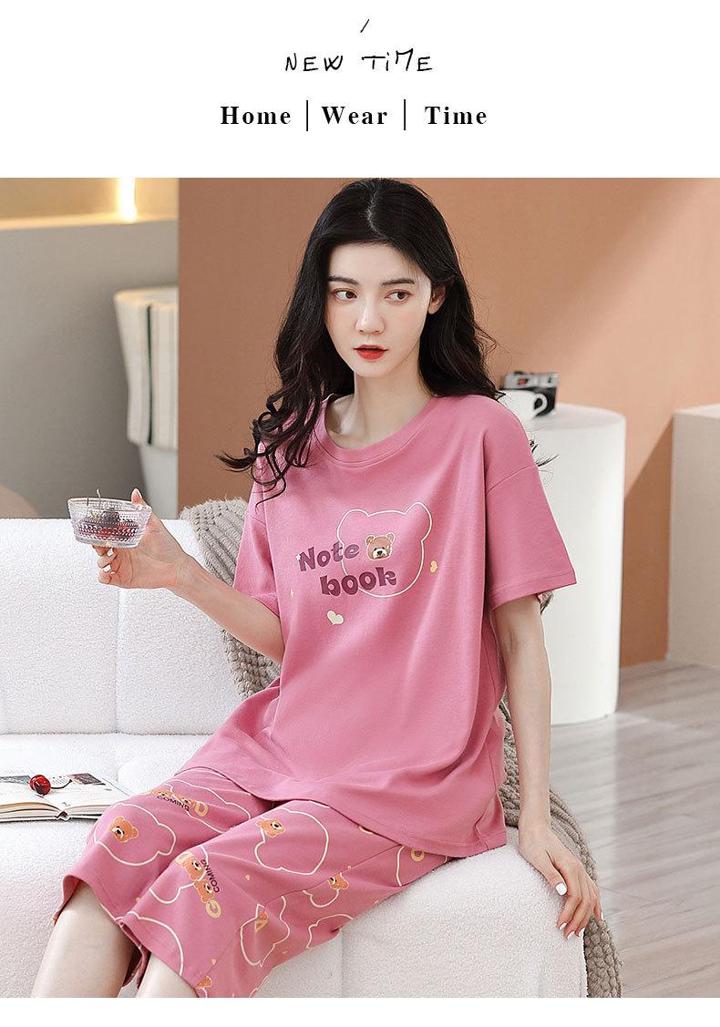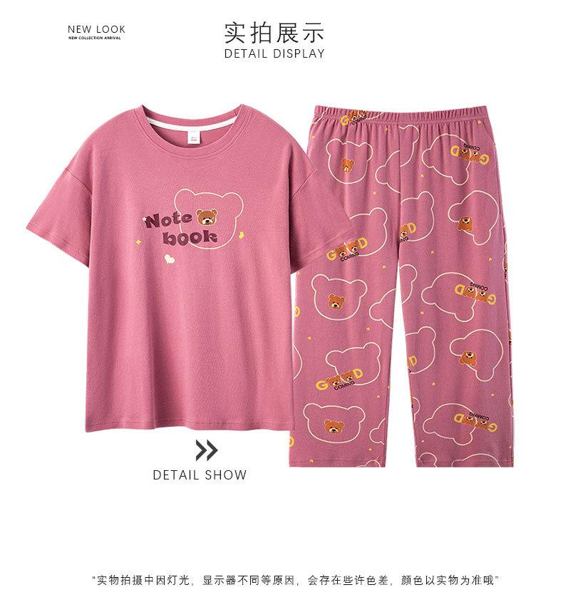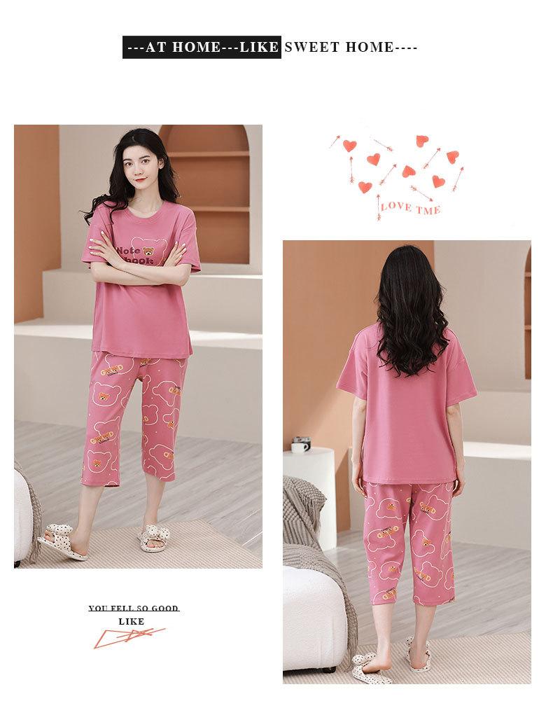 Pijama de algodón de verano para mujer, de manga corta, con pantalones cortos, traje de dos piezas, ropa informal de dibujos animados para el hogar para jóvenes y medianas edades.