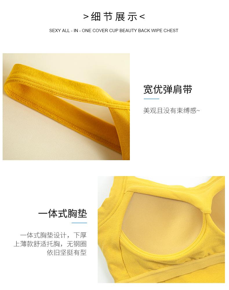 Chaleco de verano nuevo, sin tirantes, transpirable, de algodón puro, con espalda hermosa, interior y exterior, con base integrada y almohadilla para el pecho para mujer.