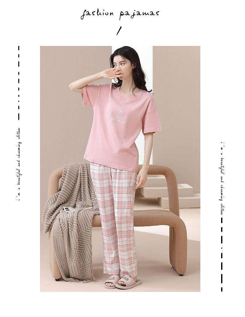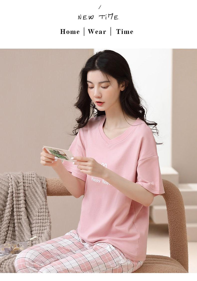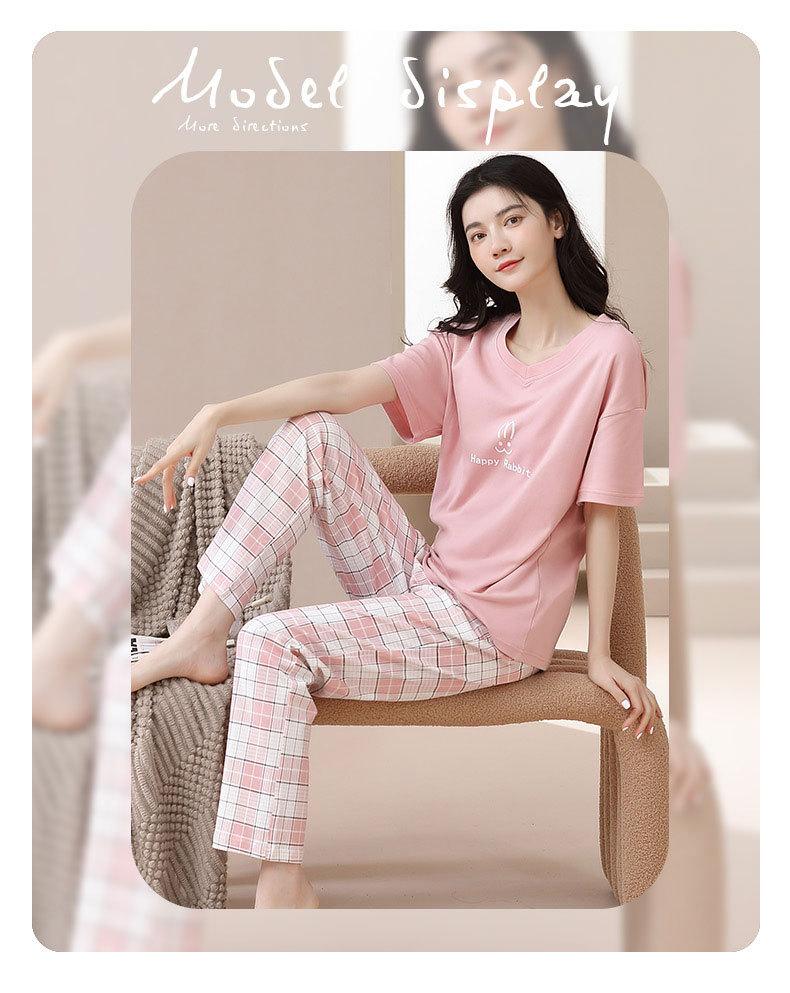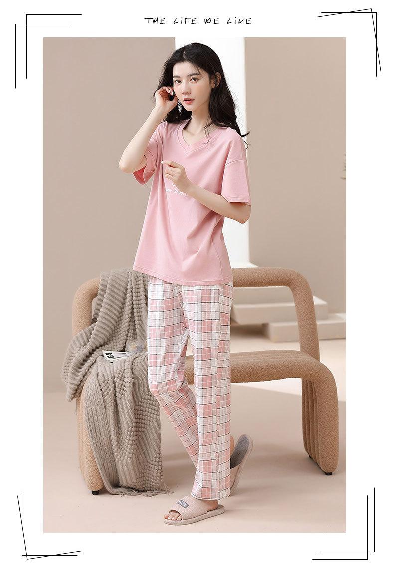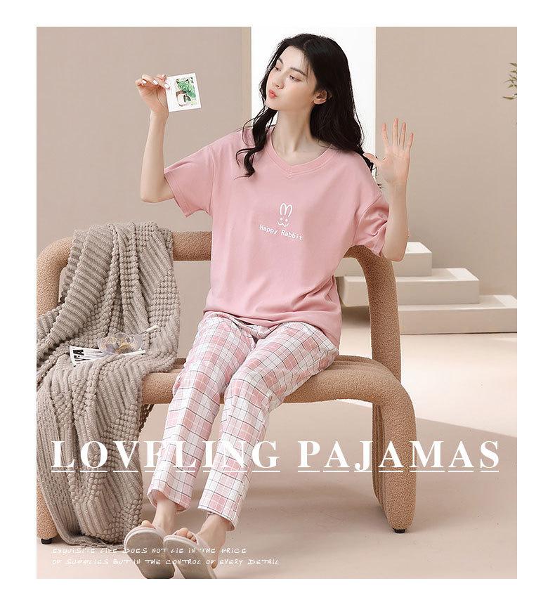 Pijama de verano para mujer, de algodón puro, fino, de manga corta, sencillo, informal, cómodo, para el hogar