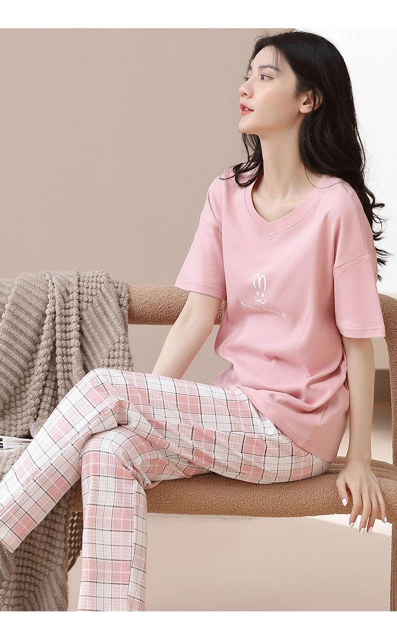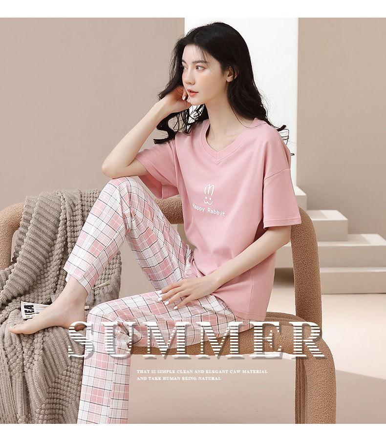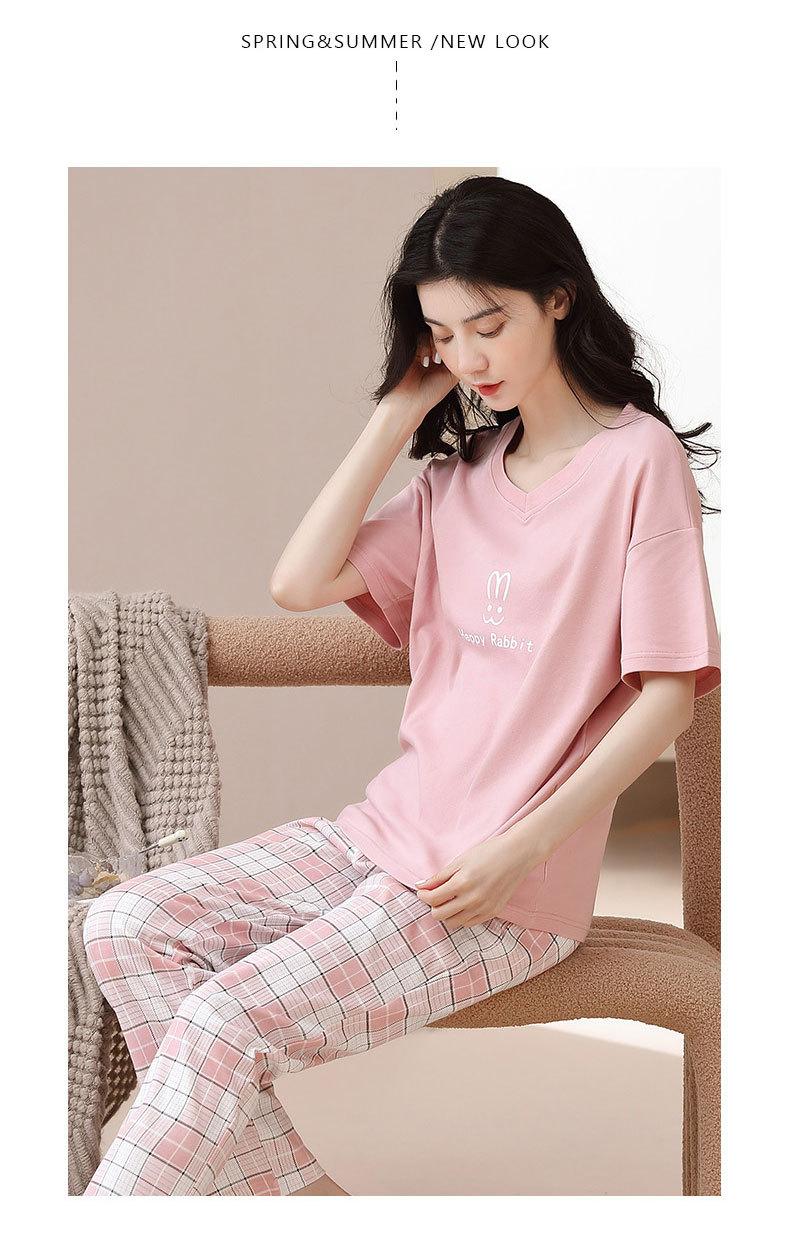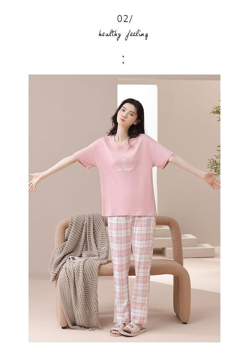 Pijama de verano para mujer, de algodón puro, fino, de manga corta, sencillo, informal, cómodo, para el hogar