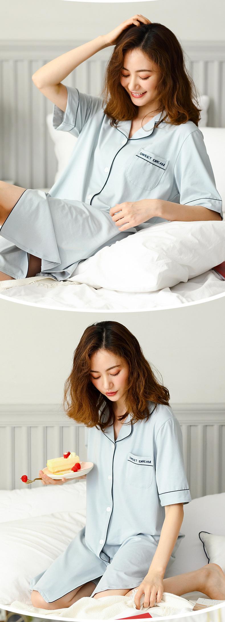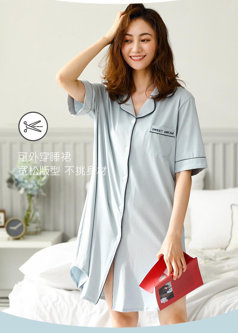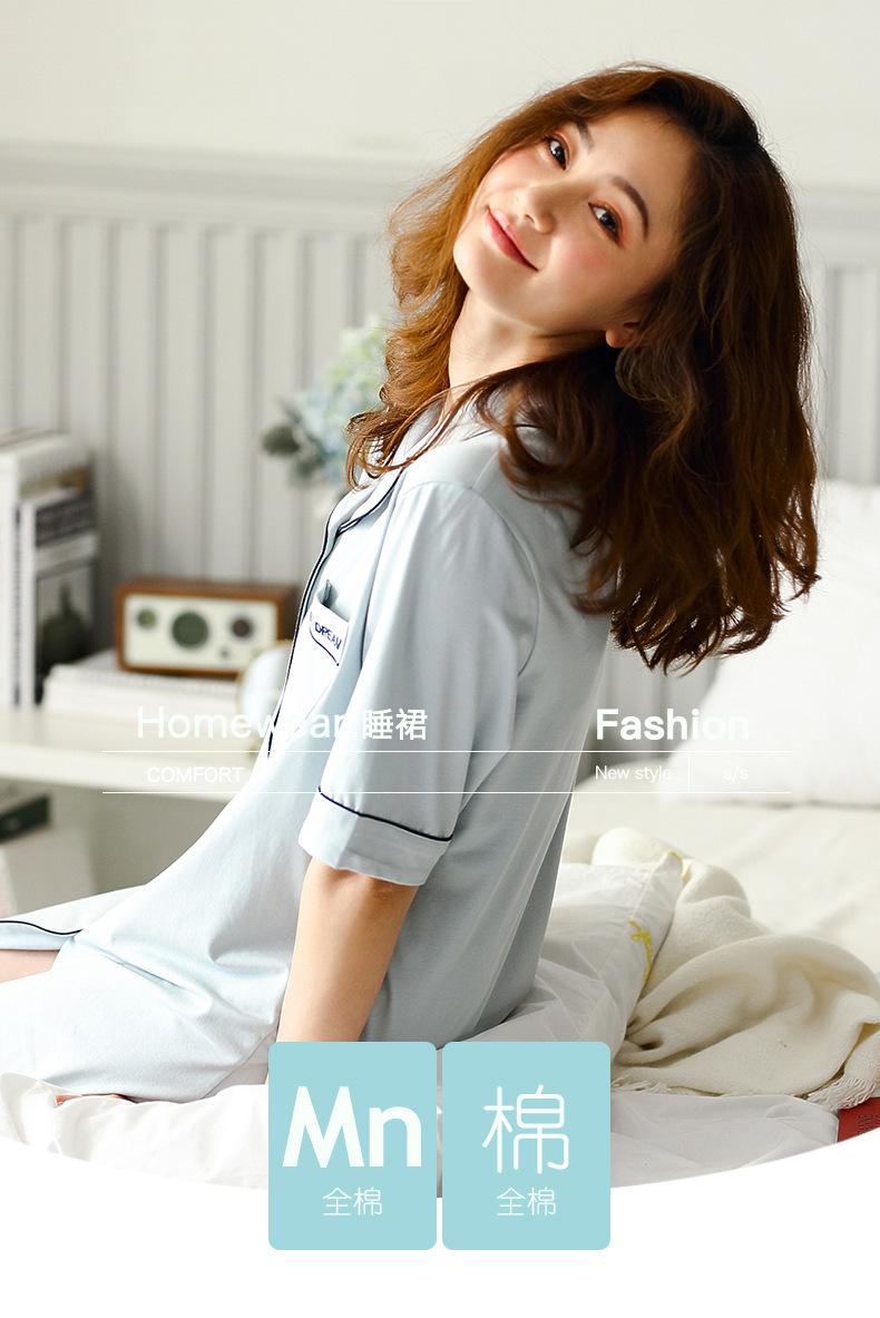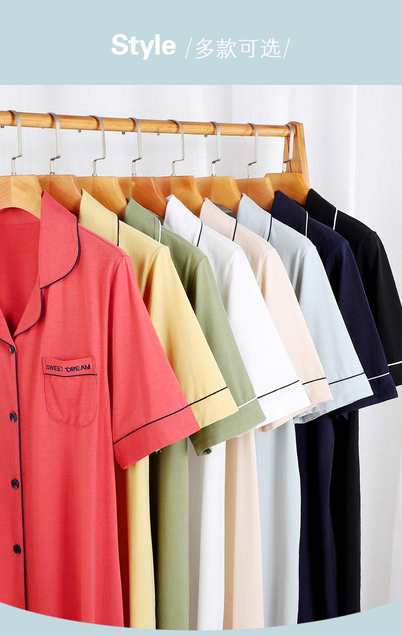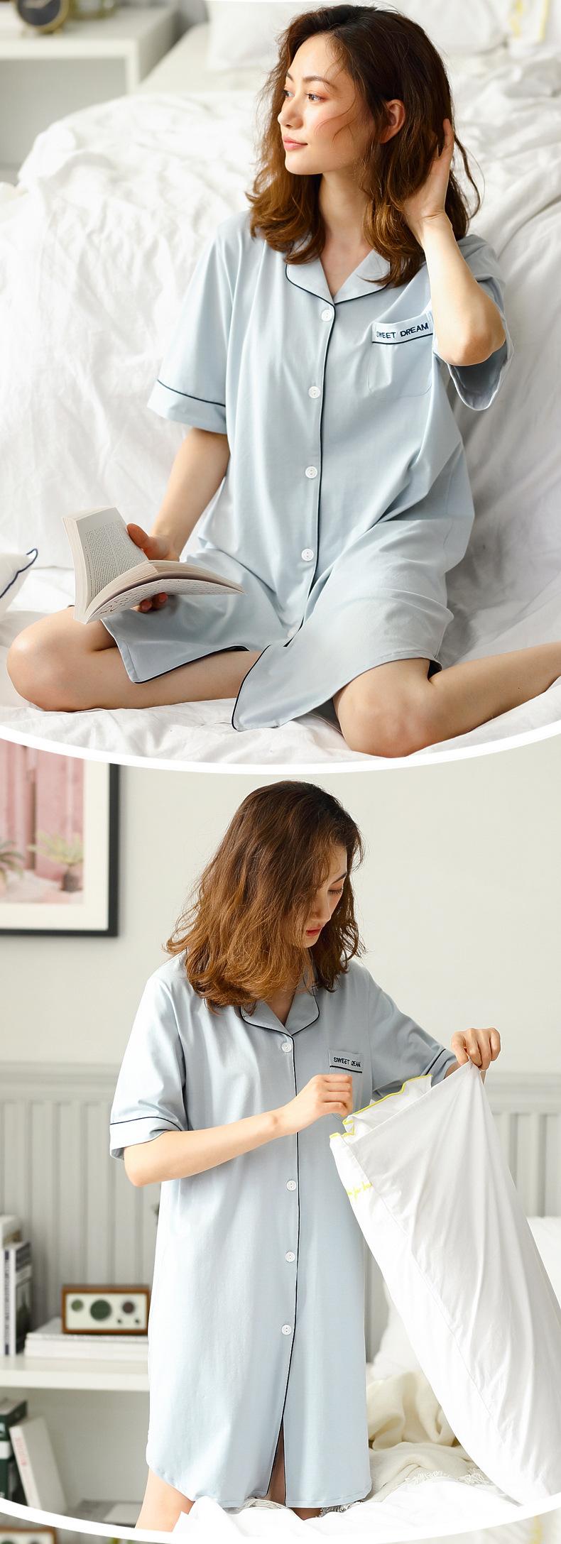 Pijama para Mujer Verano Algodón Puro Cárdigan Sexy Media Longitud Manga Corta Camisón Fino Verano Solapa Ropa de Casa