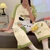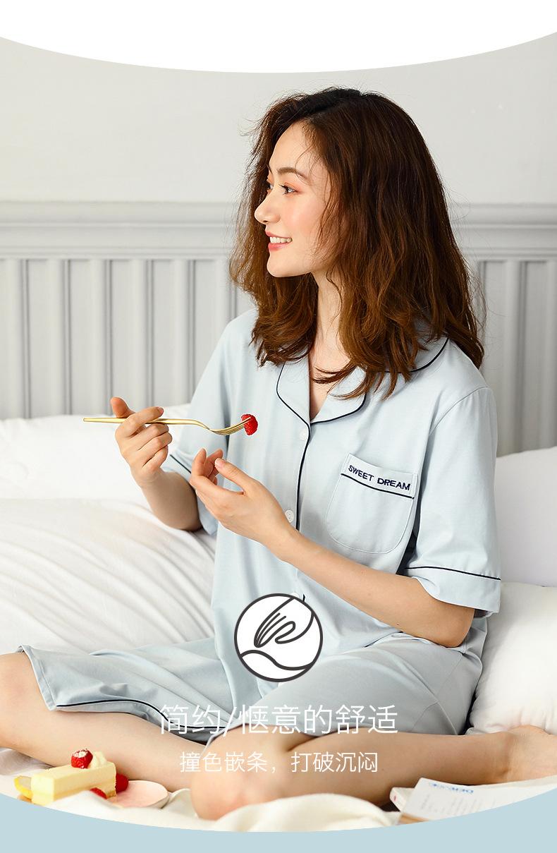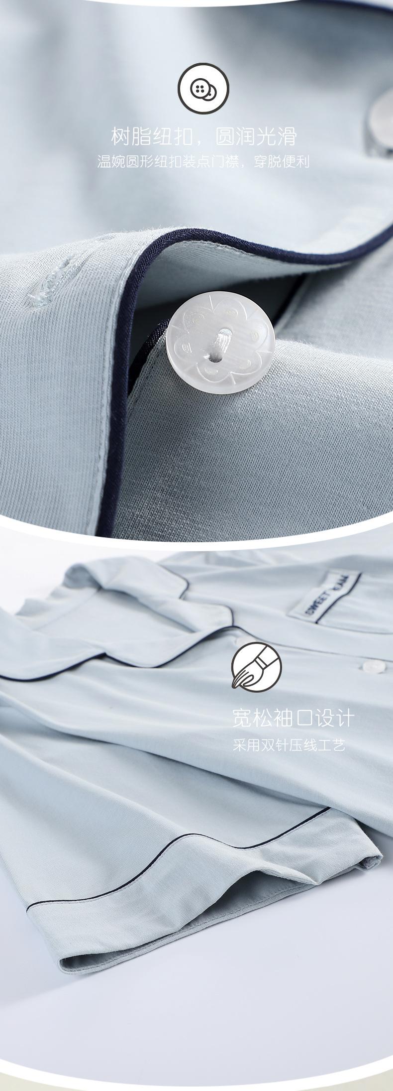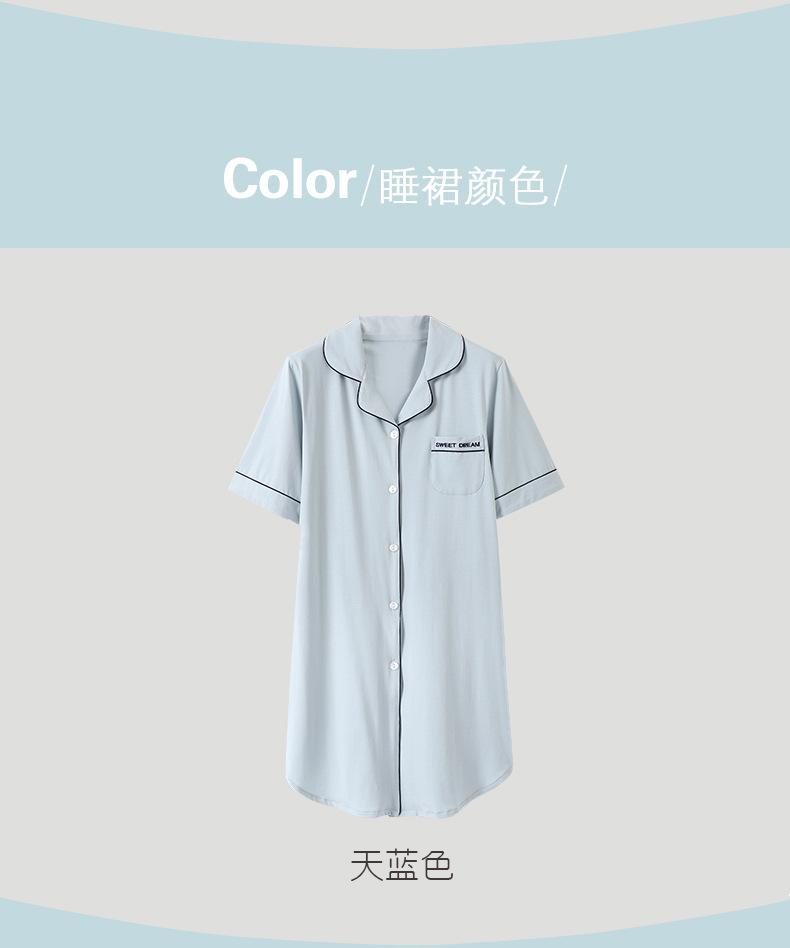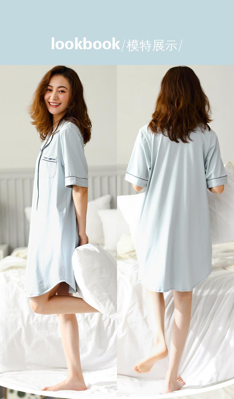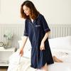 Pijama para Mujer Verano Algodón Puro Cárdigan Sexy Media Longitud Manga Corta Camisón Fino Verano Solapa Ropa de Casa