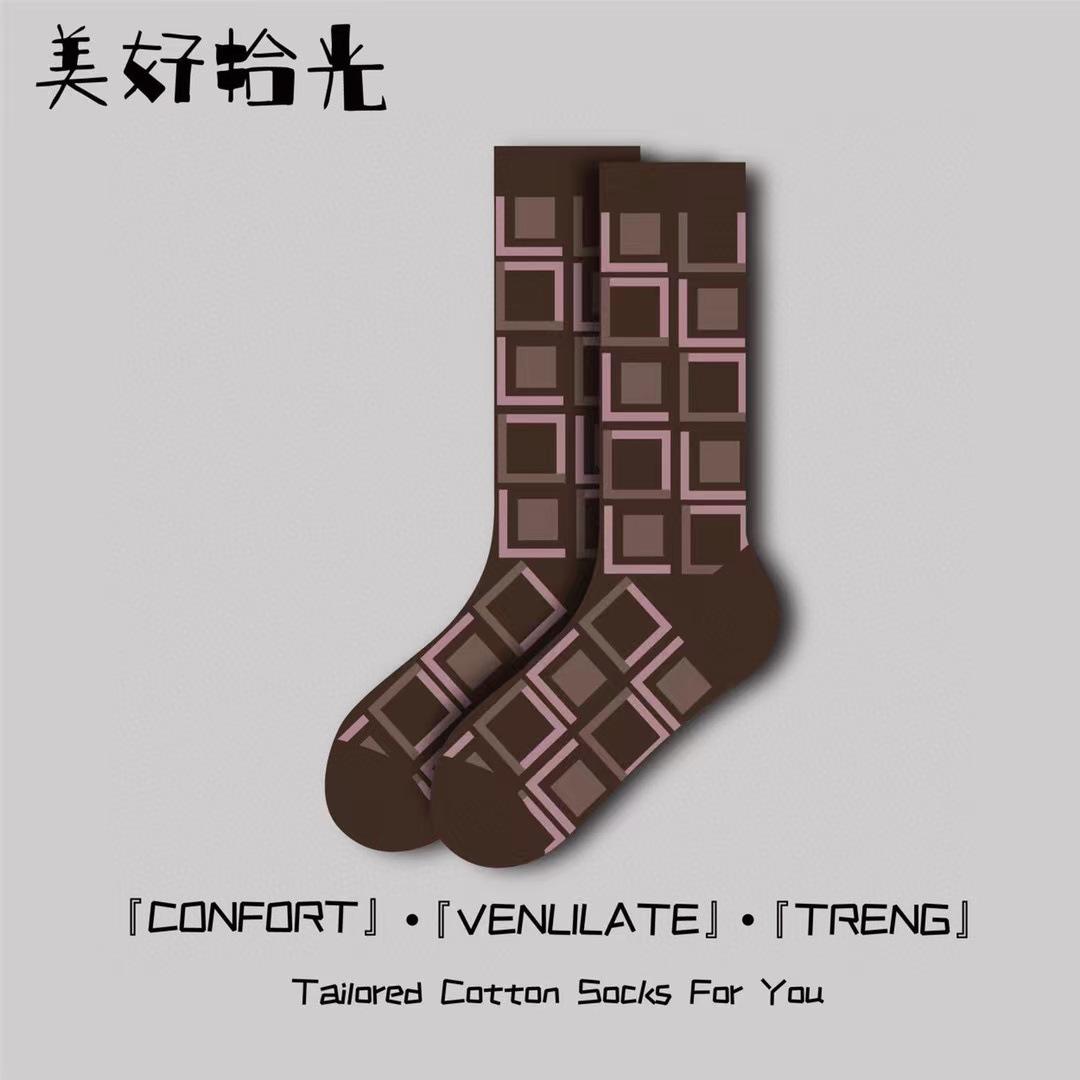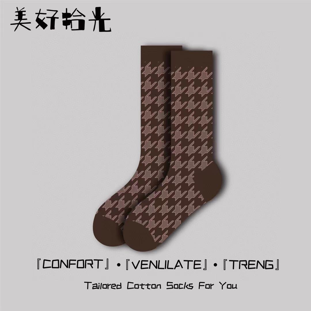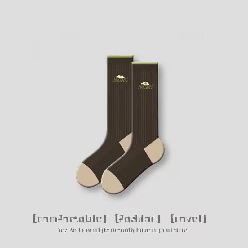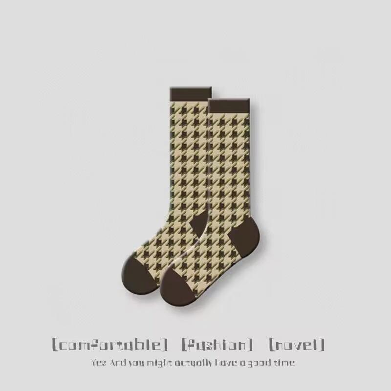 Calcetines de largo medio de doble punto de lana de oveja para otoño e invierno, marca de celebridad femenina estilo Maillard, versátiles, tendencia de moda, calcetines cálidos