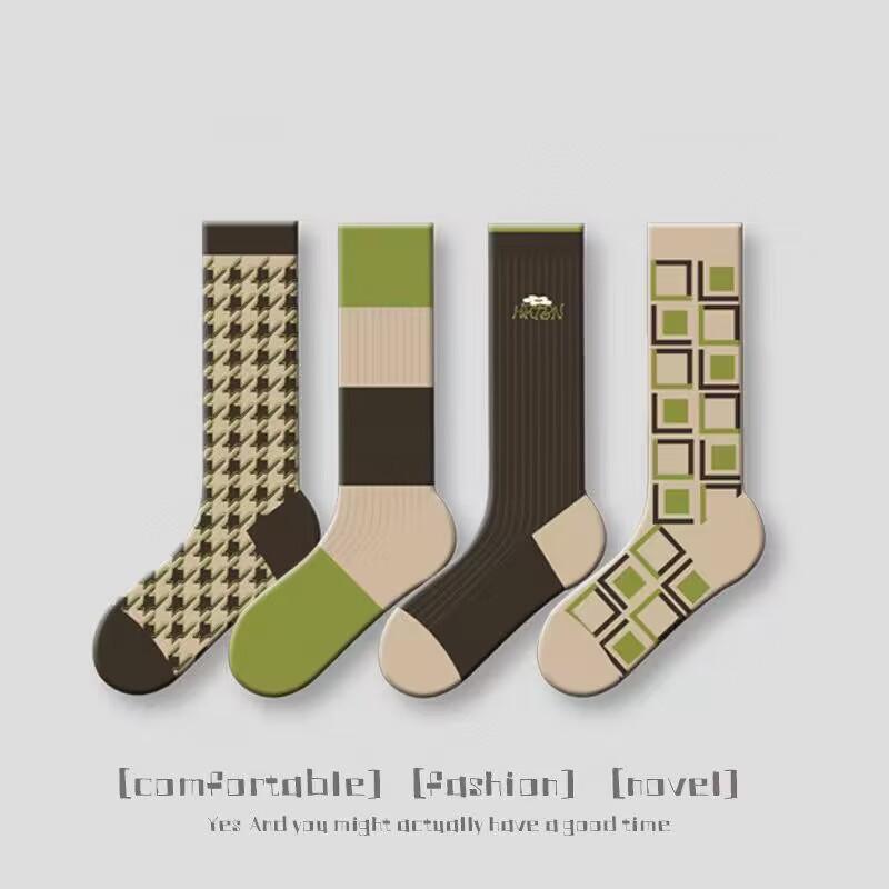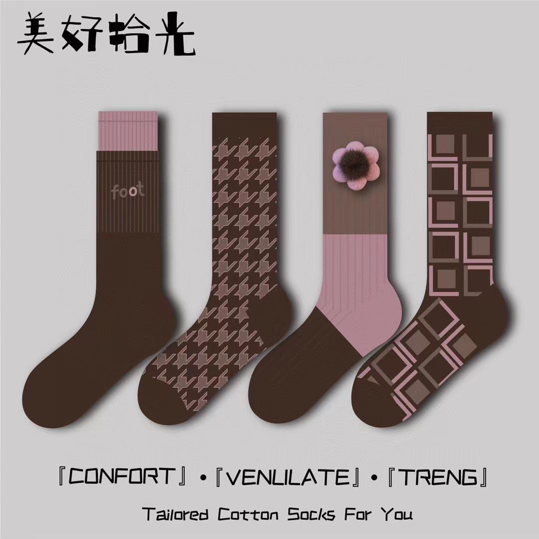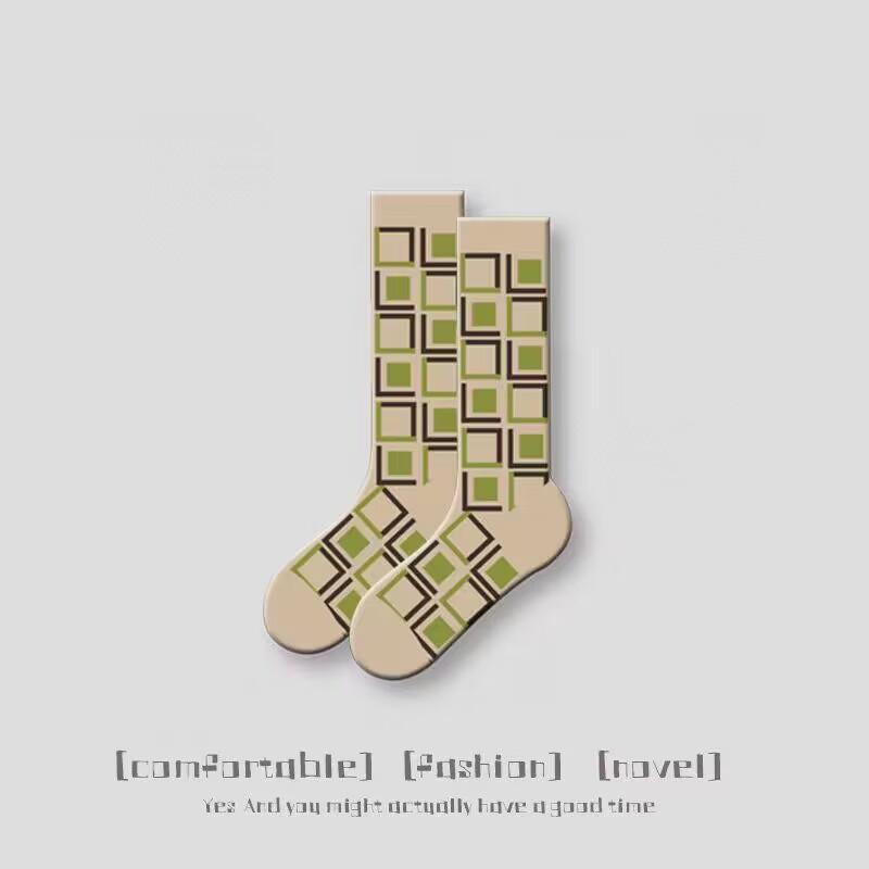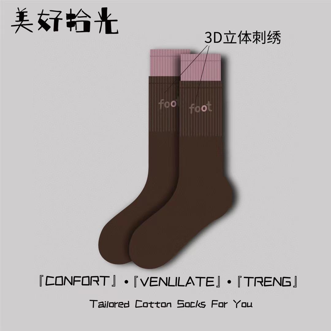 Calcetines de largo medio de doble punto de lana de oveja para otoño e invierno, marca de celebridad femenina estilo Maillard, versátiles, tendencia de moda, calcetines cálidos