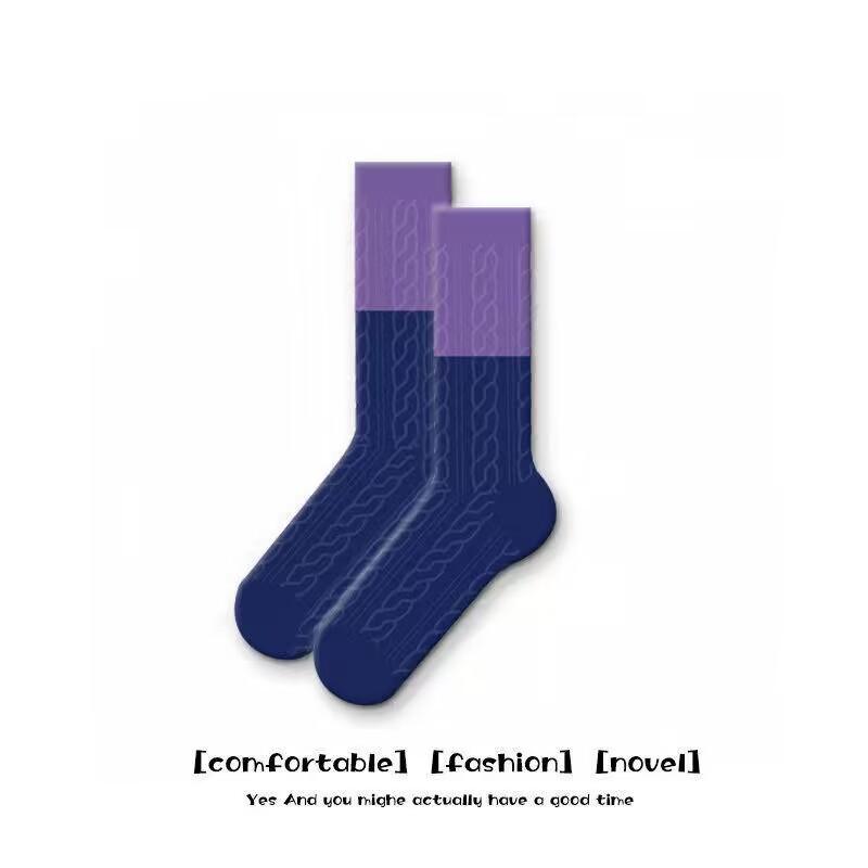 Otoño e Invierno nuevo diseño de color contrastante calcetines de lana de punto doble de media pantorrilla moda versátil modernos resistentes al frío calcetines cálidos