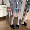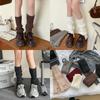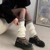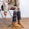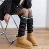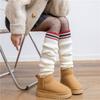 Calcetines de punto a rayas estilo preppy retro para mujer, otoño e invierno, con botas de nieve, calcetines cálidos de pelo largo, con cubierta para el muslo por encima de la rodilla.
