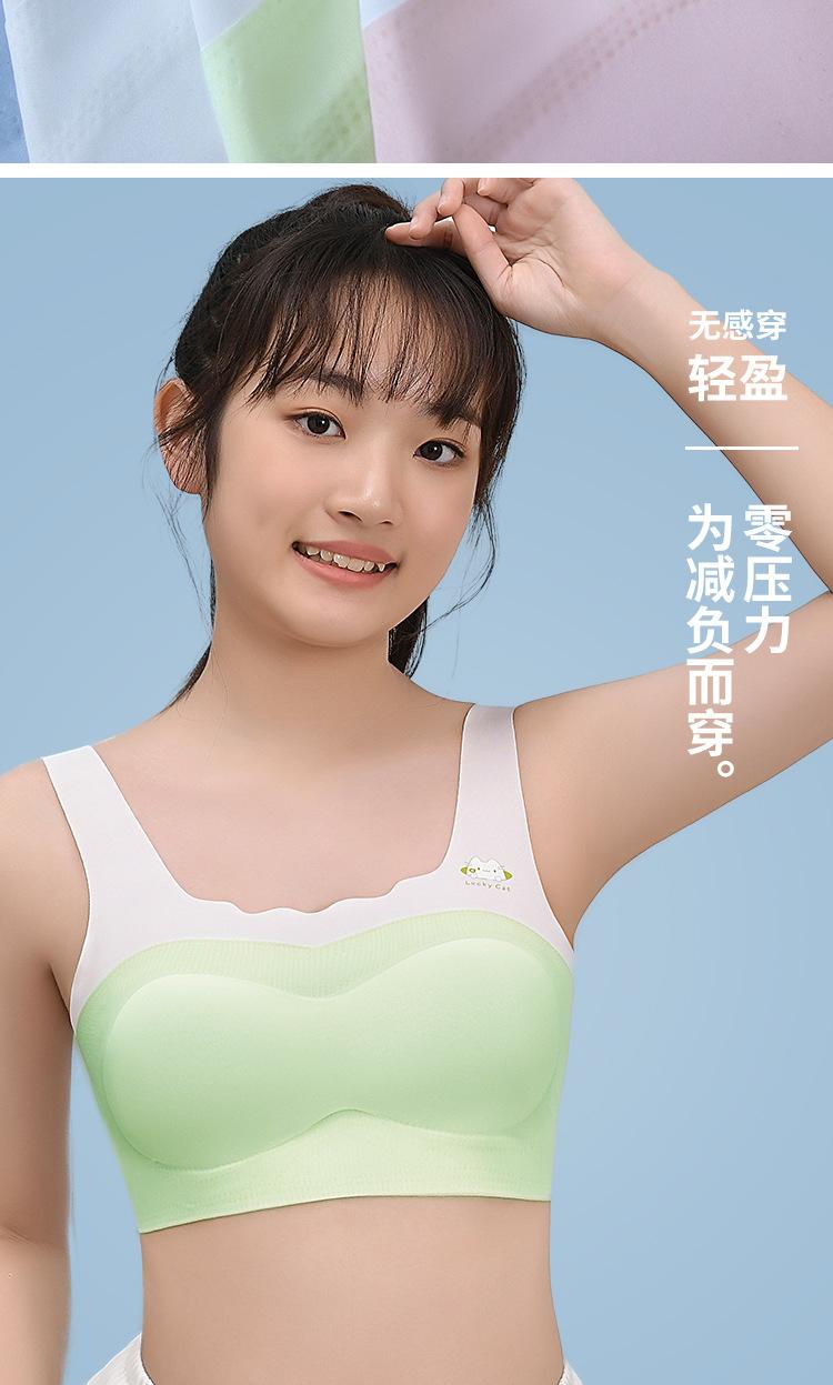 Ropa interior de color contrastante sin costuras para niñas en su etapa de desarrollo, antigolpes, para estudiantes de 9 a 15 años, chaleco fino y transpirable.