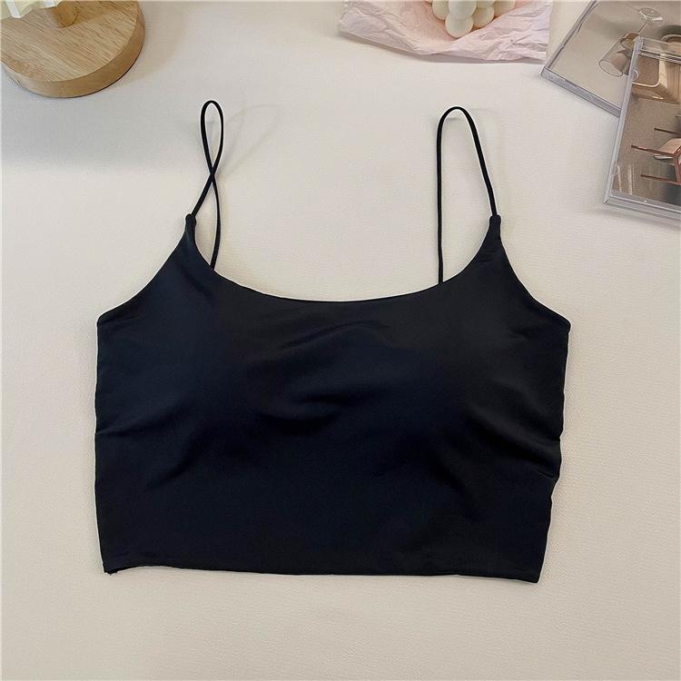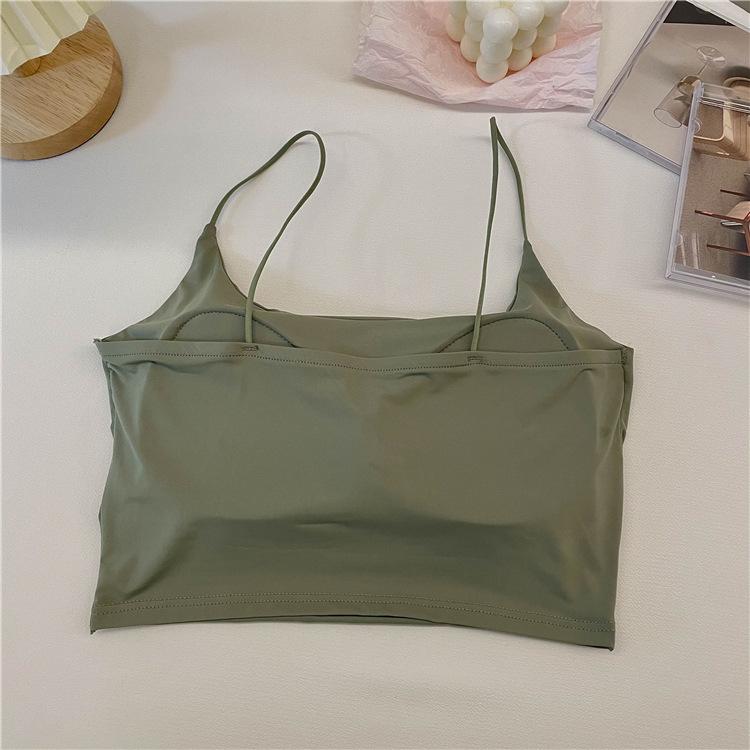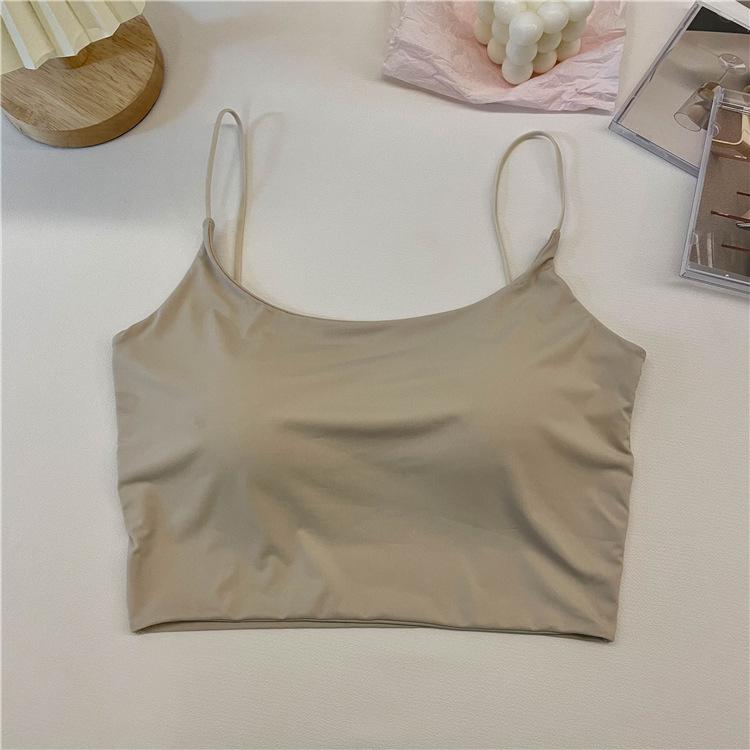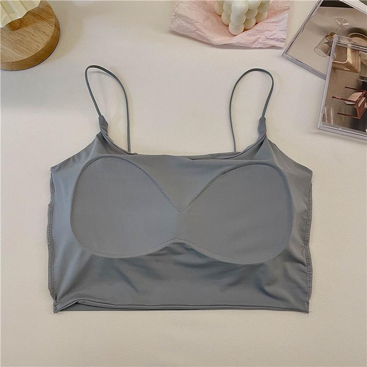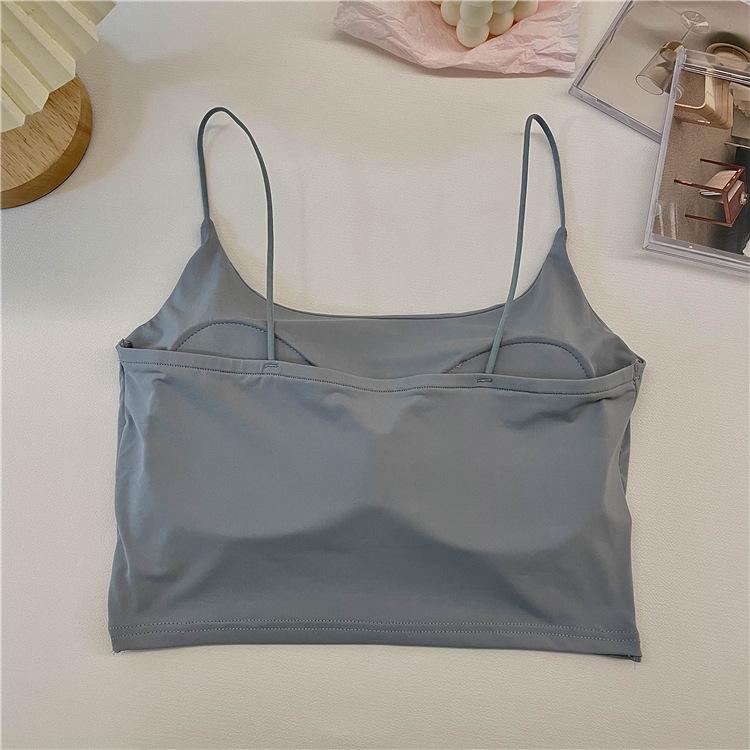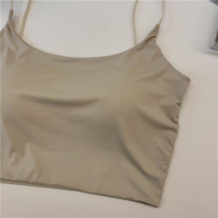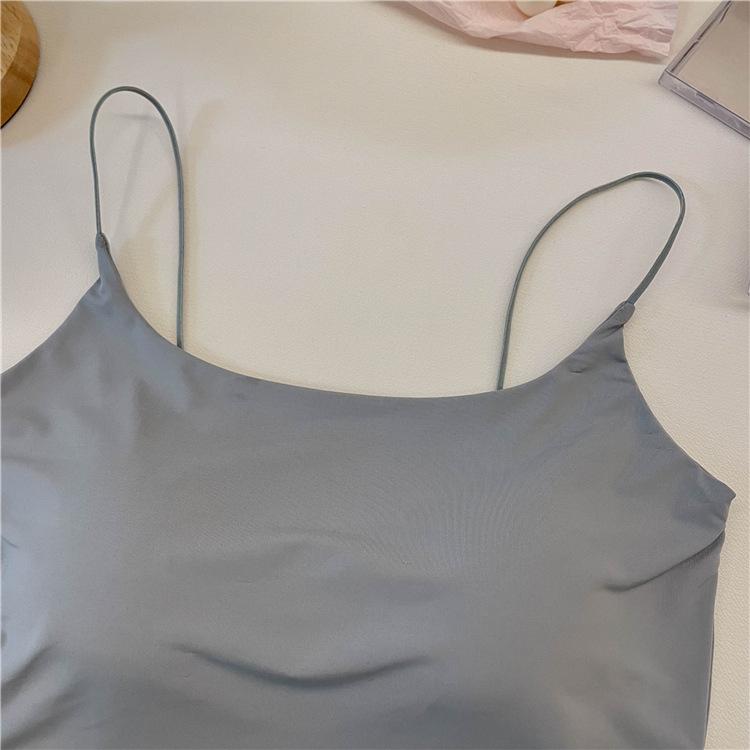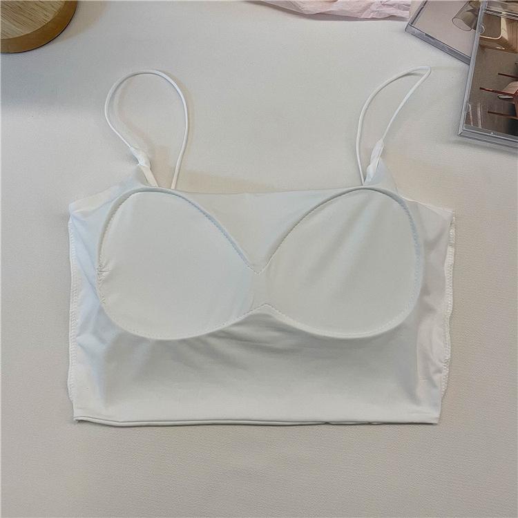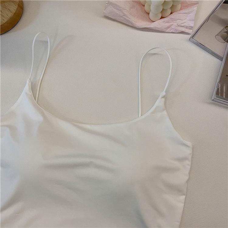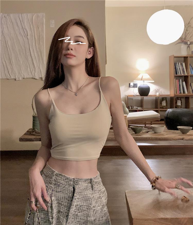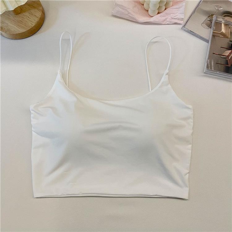 Todo en Uno Estilo Corto Sin Costuras Hermosa Espalda Verano Delgada Camisola con Almohadillas para el Busto y Fondo Look Sexy Adelgazante Top