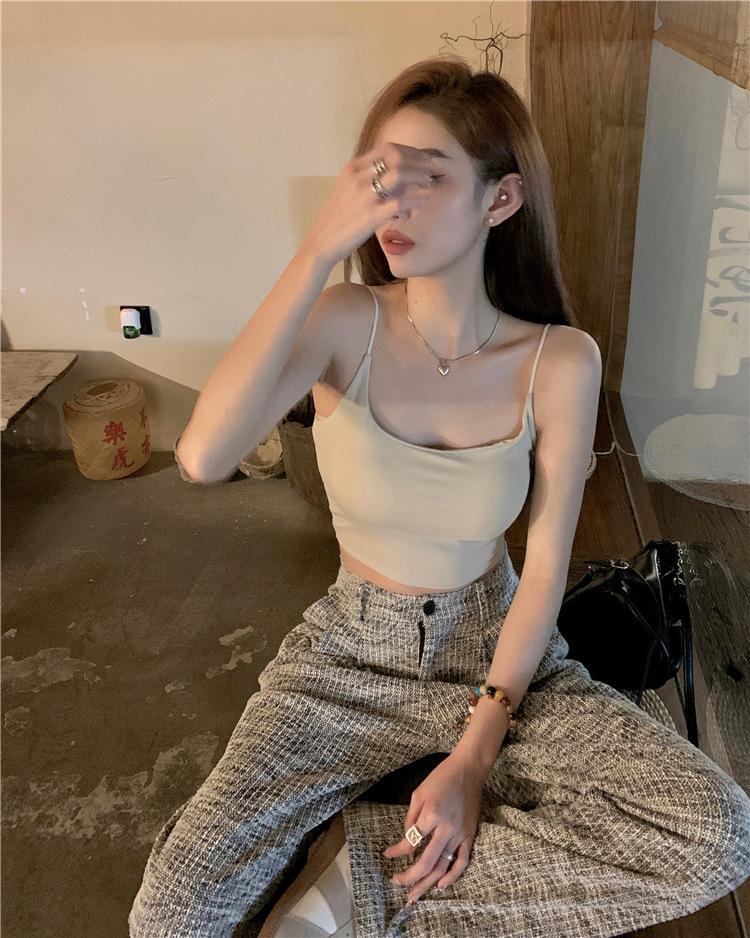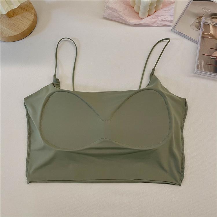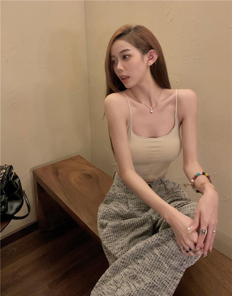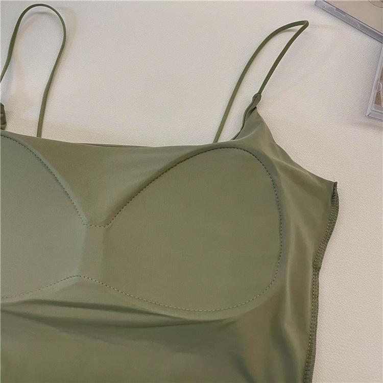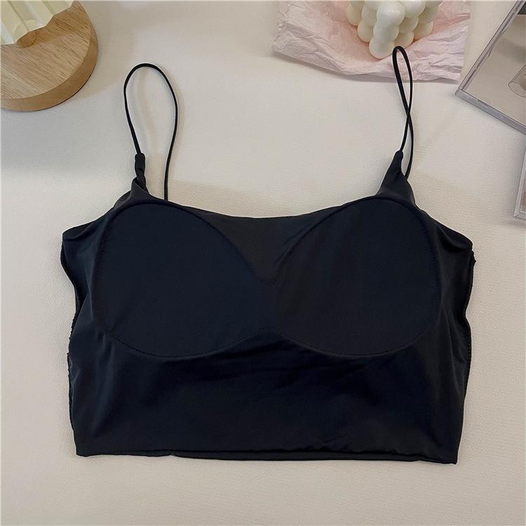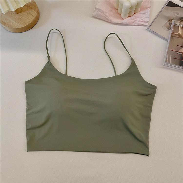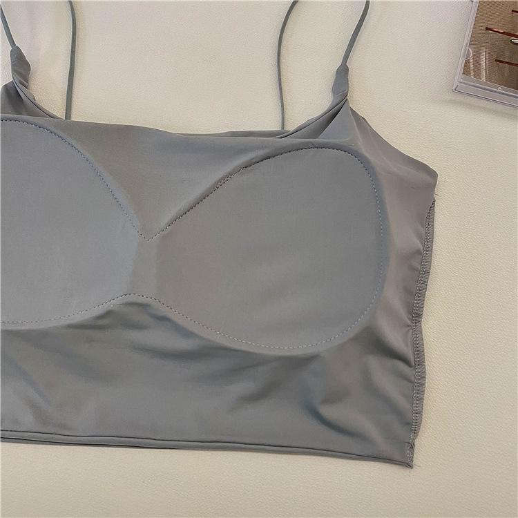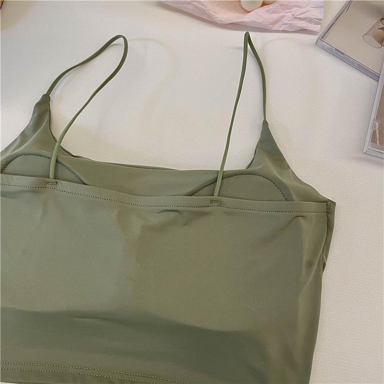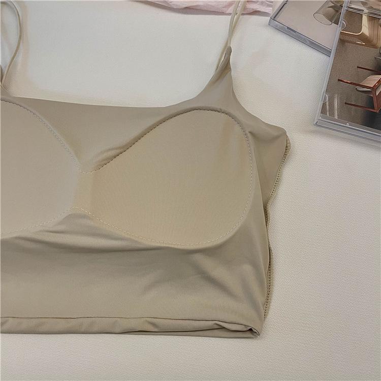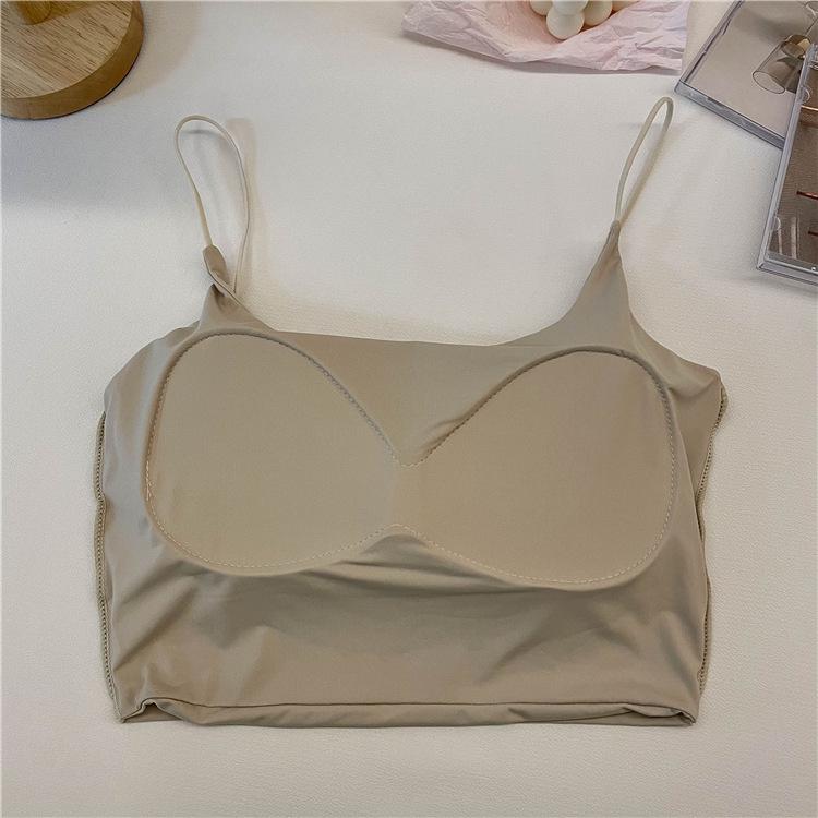 Todo en Uno Estilo Corto Sin Costuras Hermosa Espalda Verano Delgada Camisola con Almohadillas para el Busto y Fondo Look Sexy Adelgazante Top