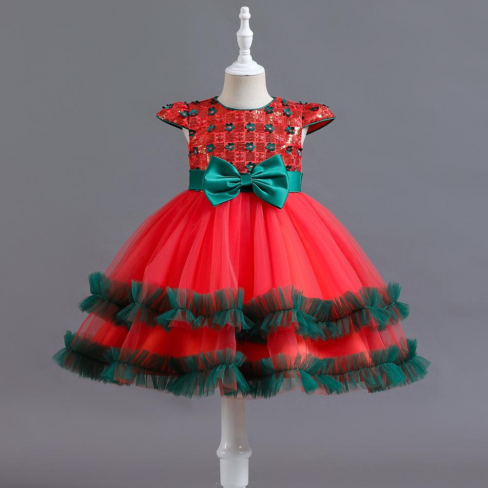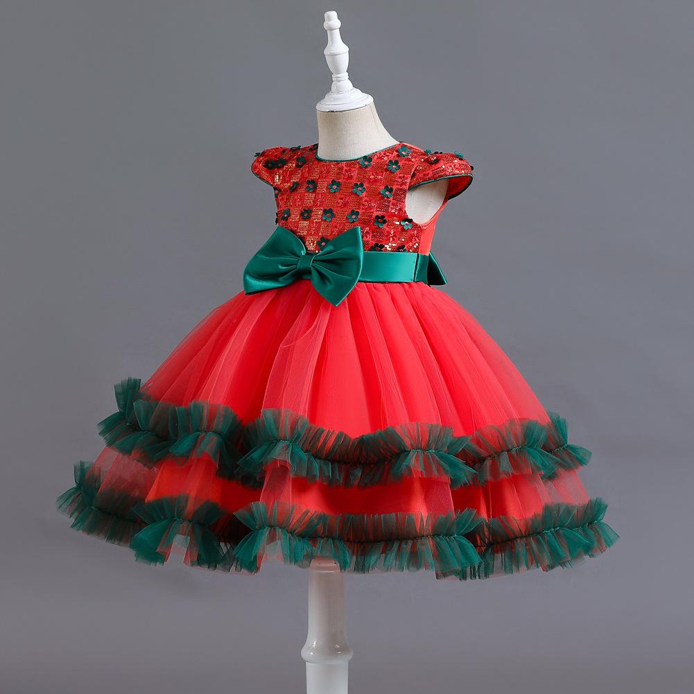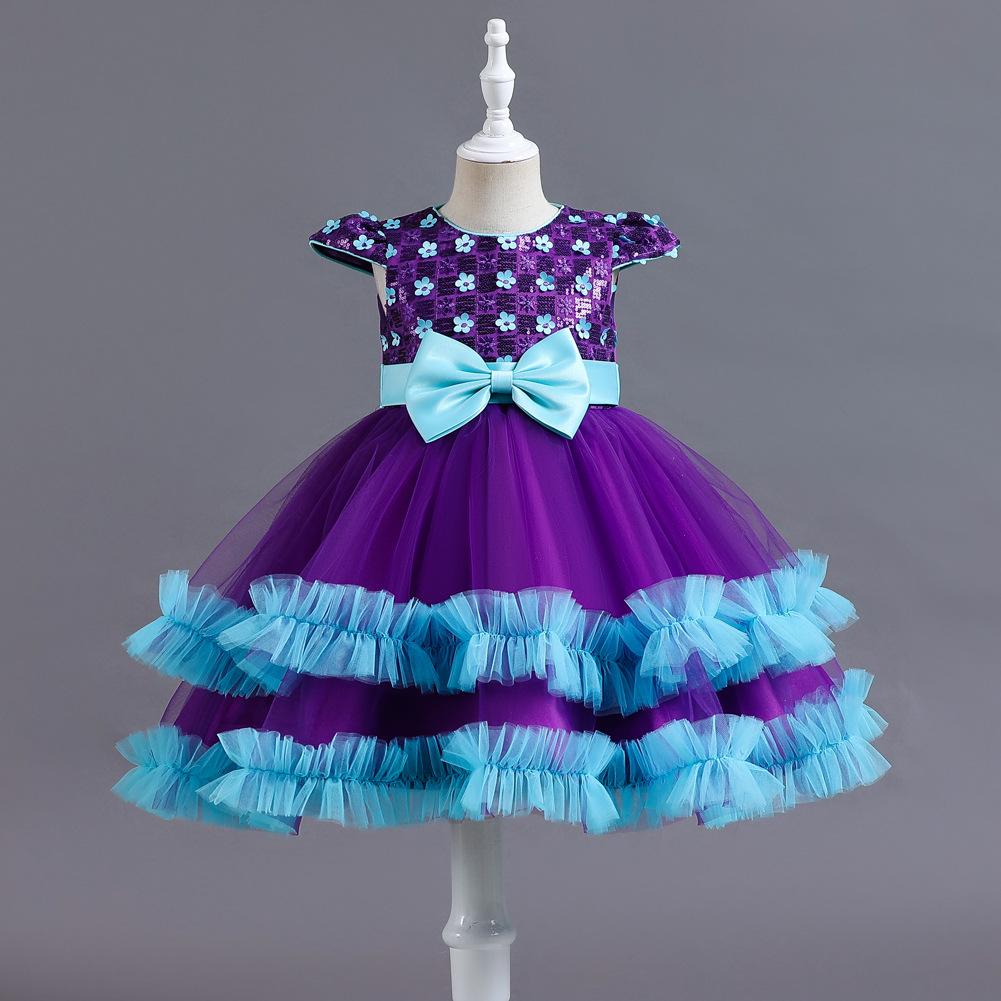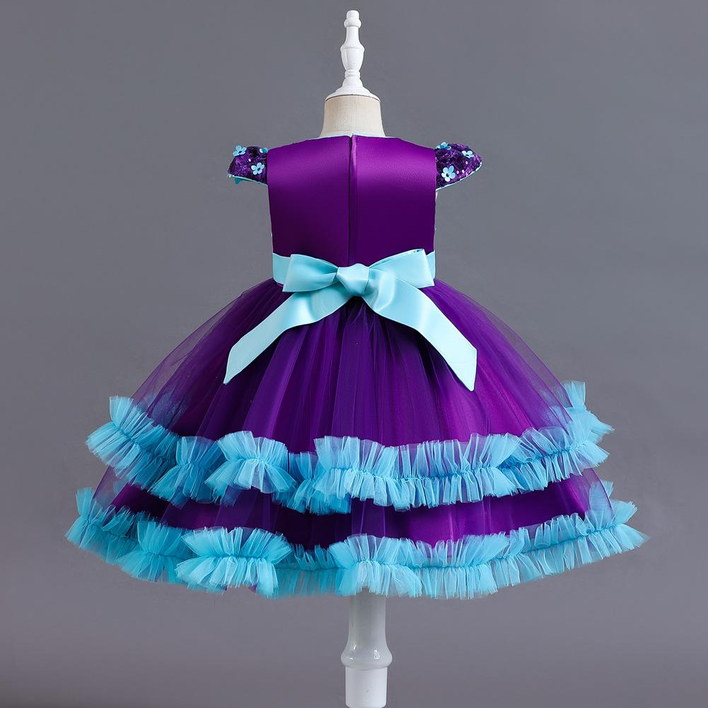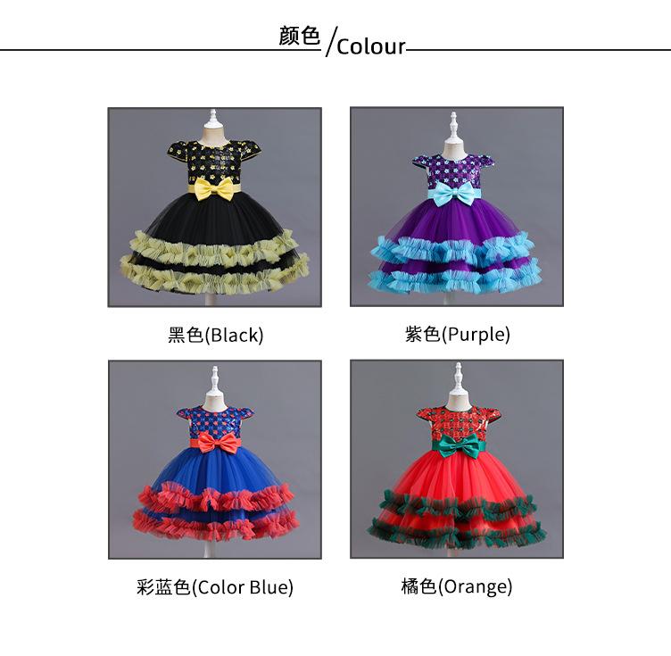Vestido para niñas, disfraz de cosplay de Halloween, vestido para niños, vestido de princesa con lentejuelas, falda de tul de malla de color contrastanteOrdene ahora