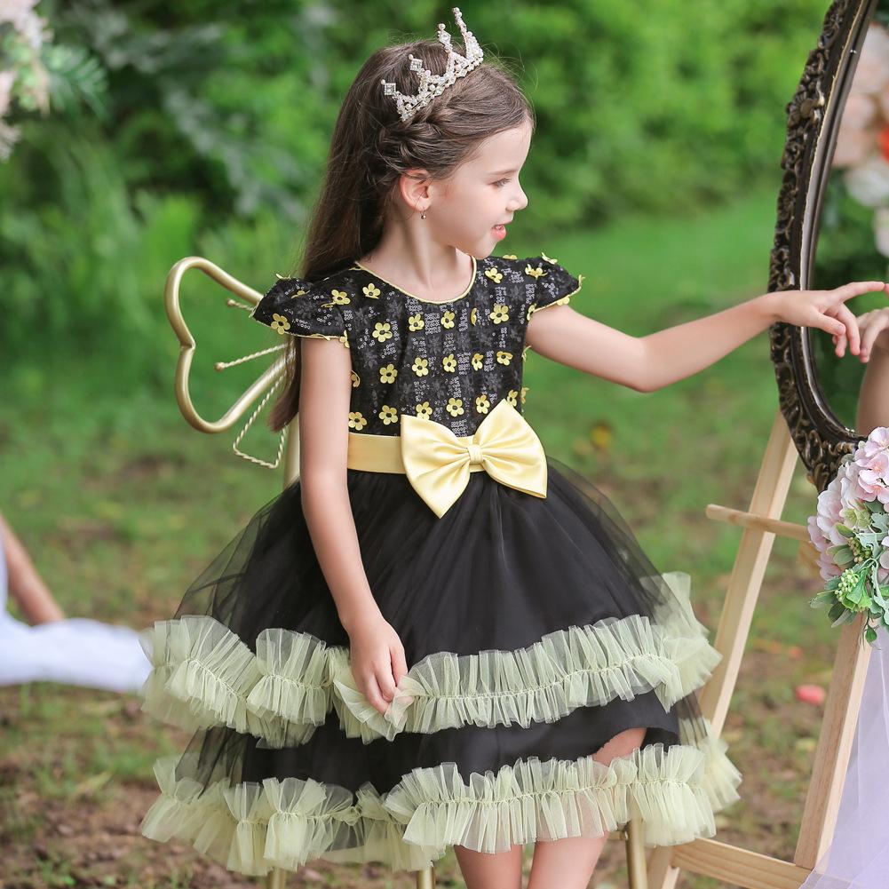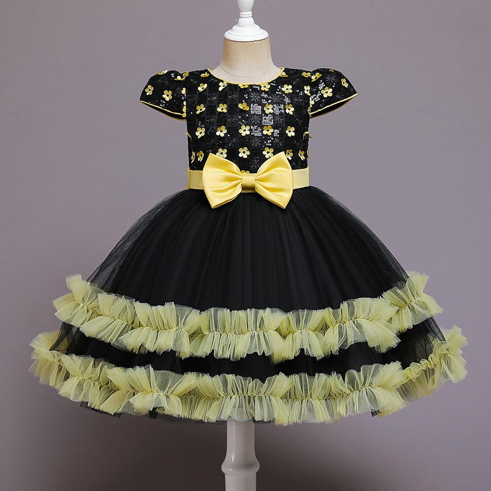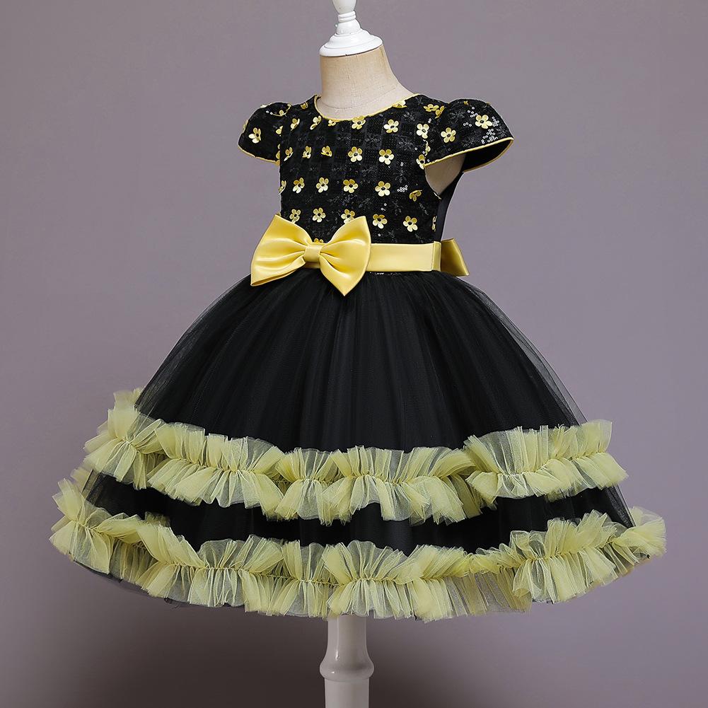 Vestido de princesa amarillo de manga corta para niñas, vestido de actuación para el Día del Niño, falda abullonada para niñas, vestido para niñasOrdene ahora