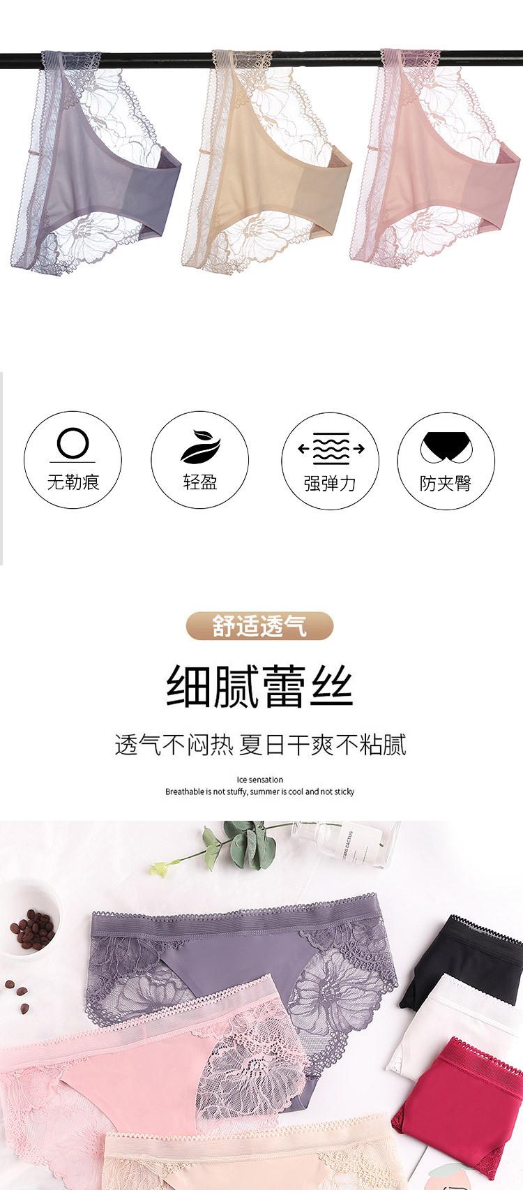 Ropa interior de seda de hielo sin costuras para mujer, de algodón, con entrepierna antibacteriana, de verano, ultrafina, sexy, con encaje Pure Desire, bragas de cintura media para niñas.