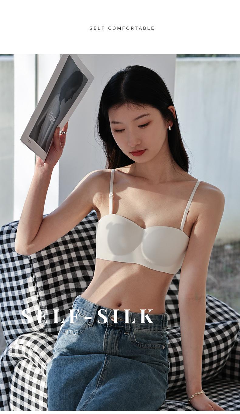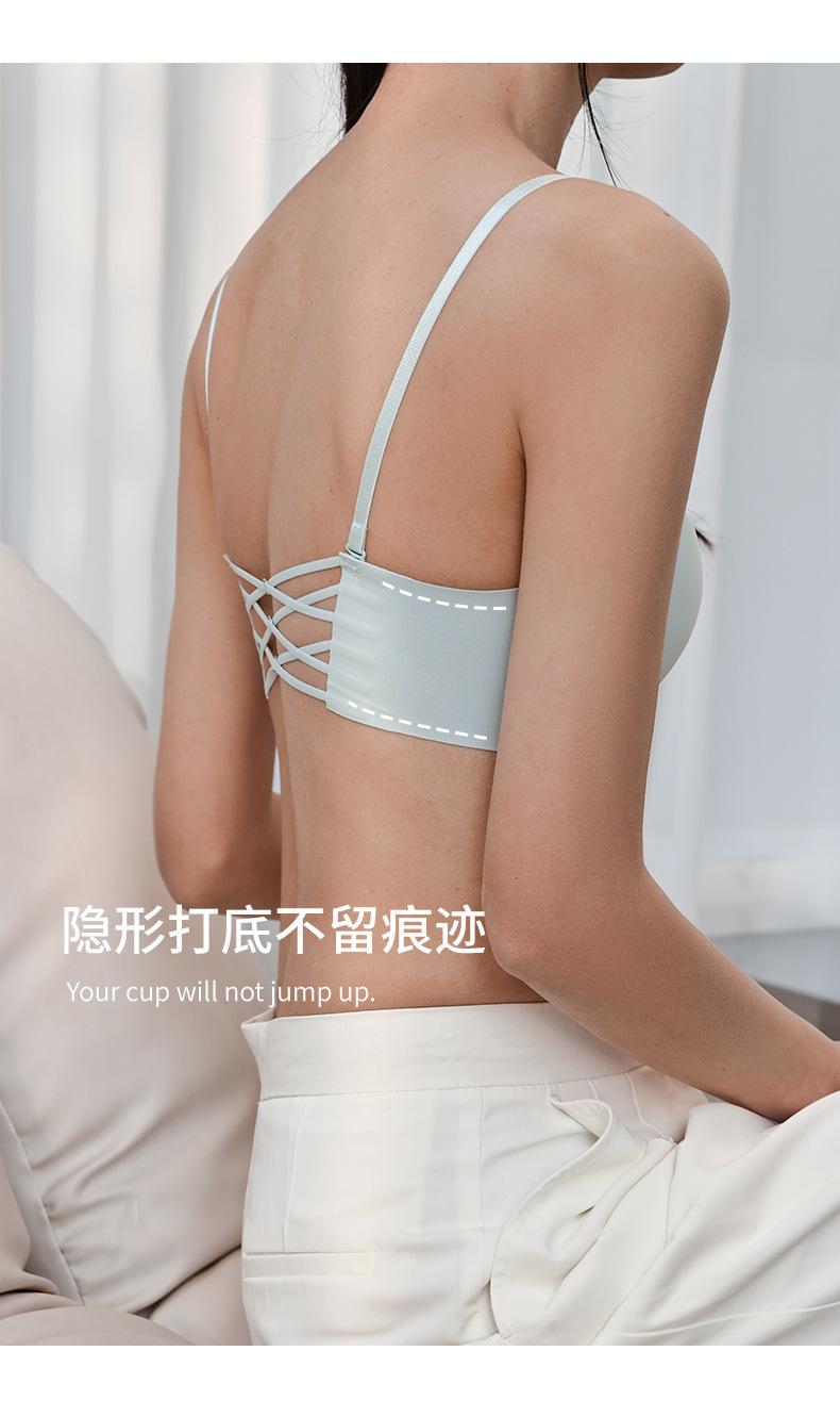 Sujetador invisible sin tirantes para mujer, ropa interior con forma push-up de pecho pequeño, diseño de cinturón cruzado de primavera y verano, hermosa espalda delgada
