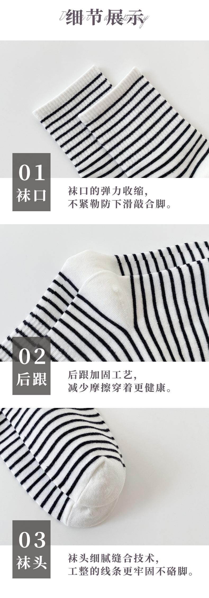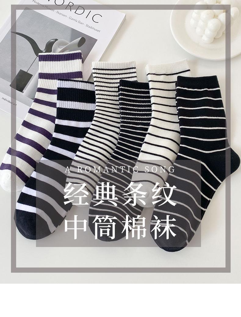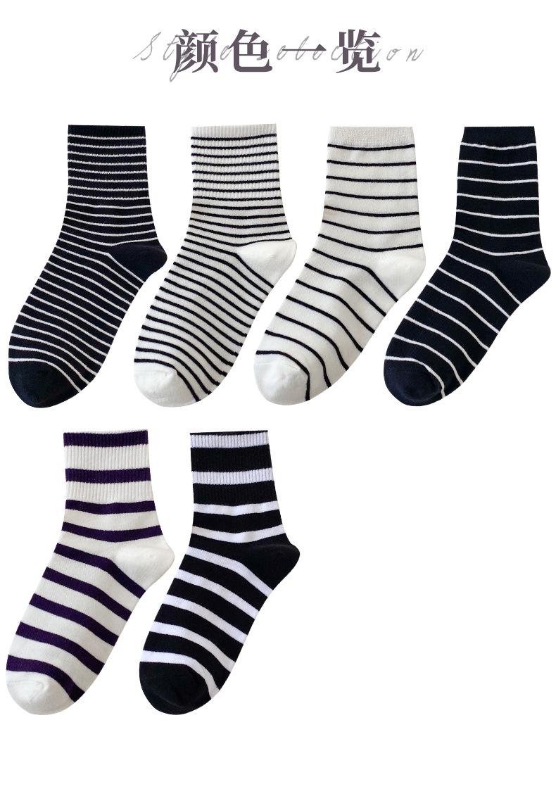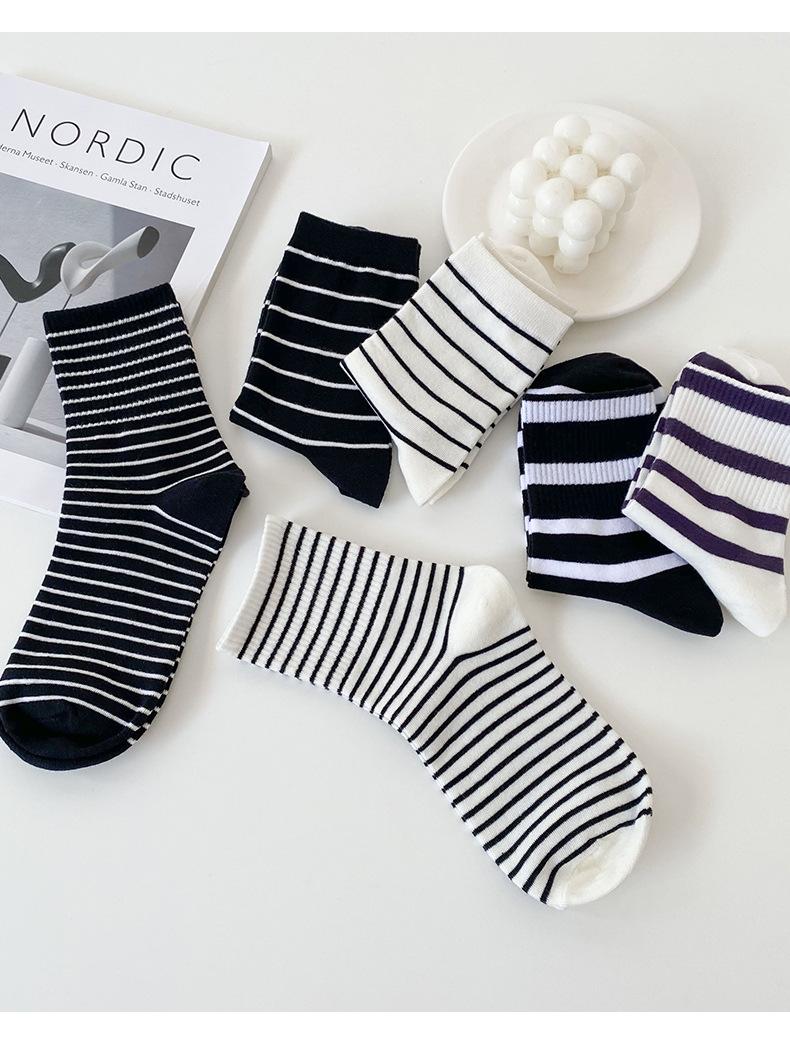 Calcetines de Verano para Mujer hasta la Mitad de la Pantorrilla Versátiles Clásicos Japoneses Lindos Estilo Universitario Rayados Blancos y Negros Calcetines de Moda para Mujer