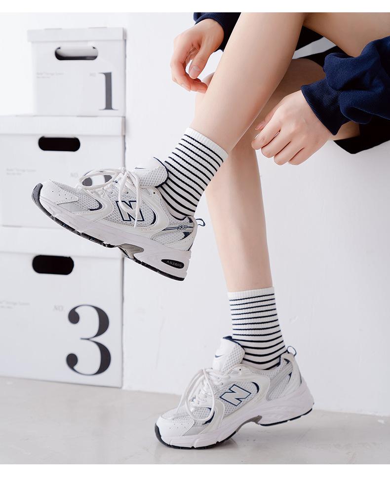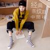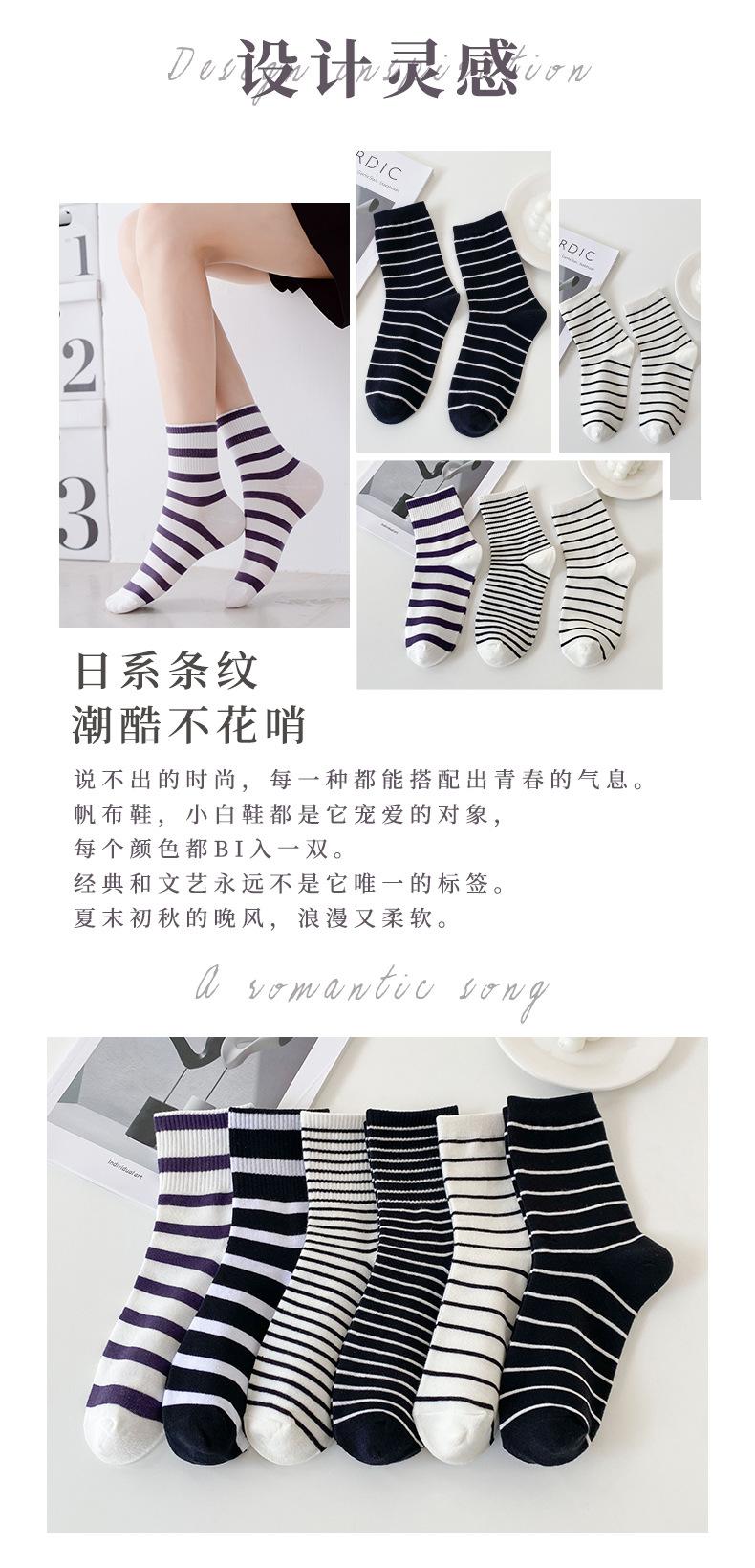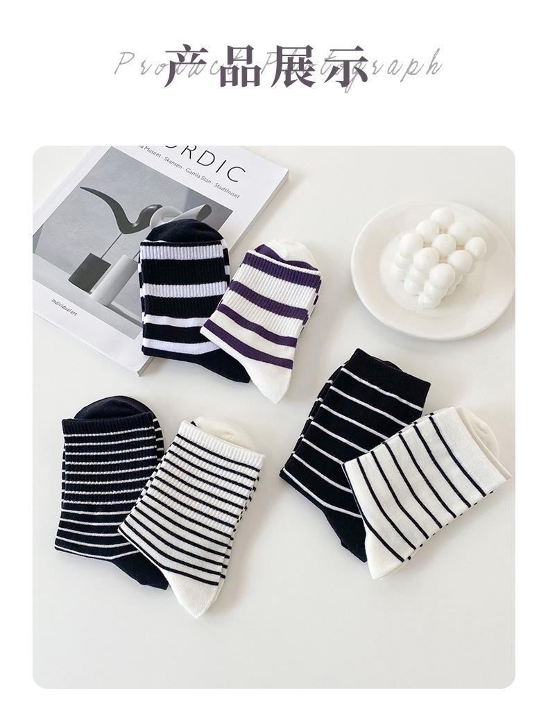 Calcetines de Verano para Mujer hasta la Mitad de la Pantorrilla Versátiles Clásicos Japoneses Lindos Estilo Universitario Rayados Blancos y Negros Calcetines de Moda para Mujer