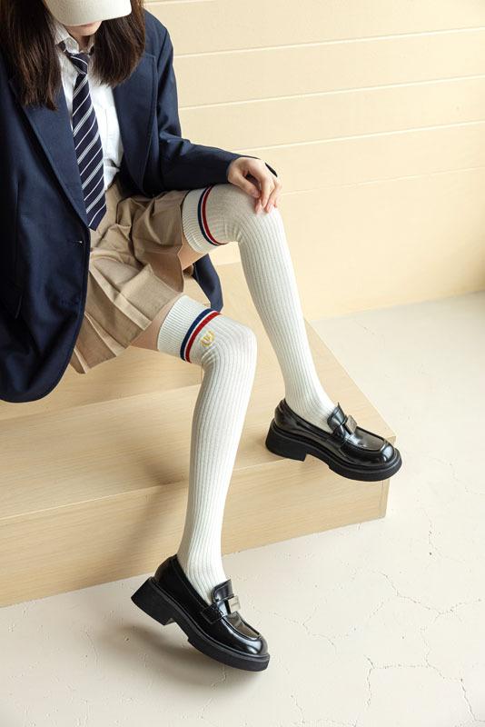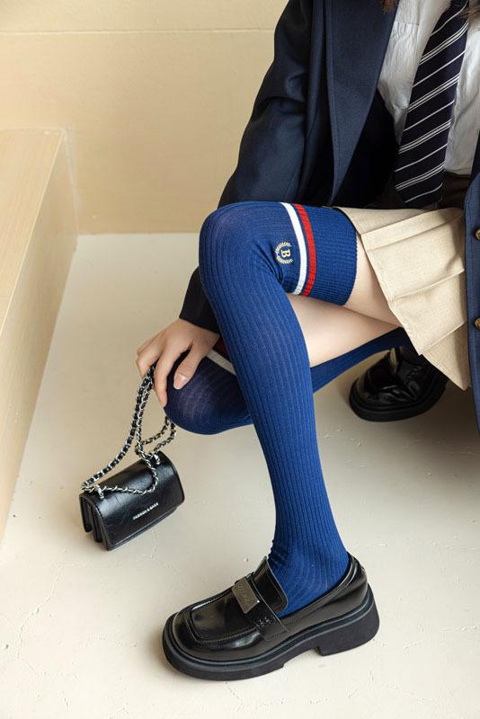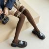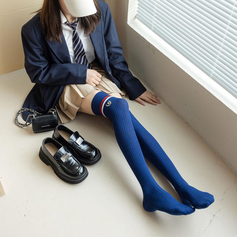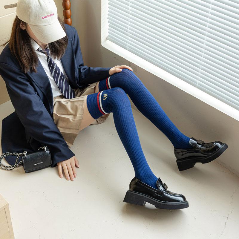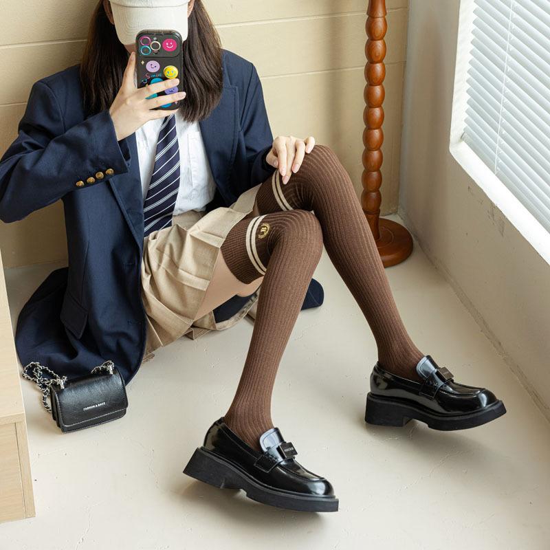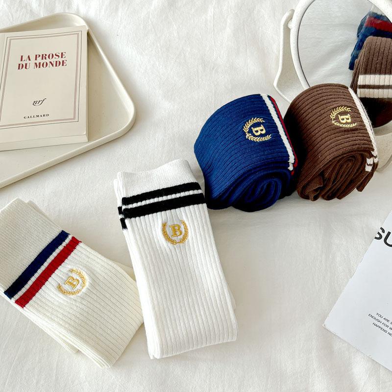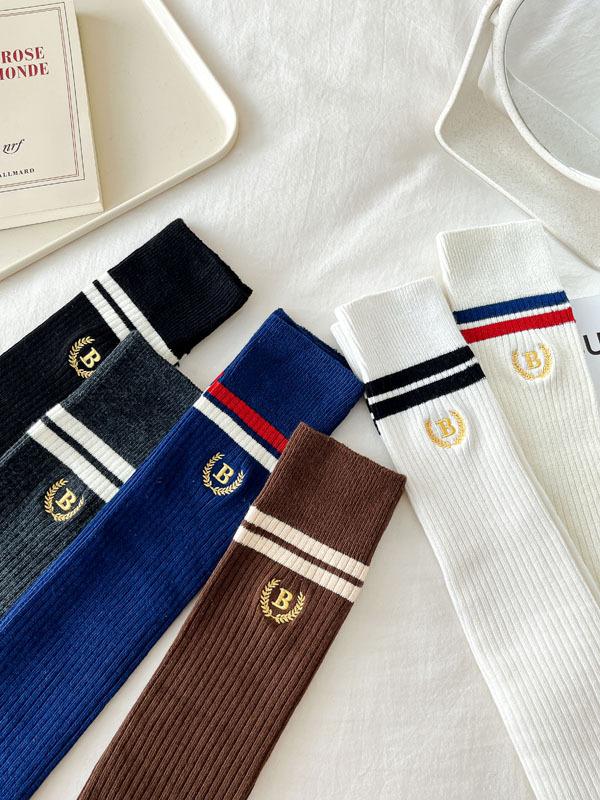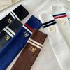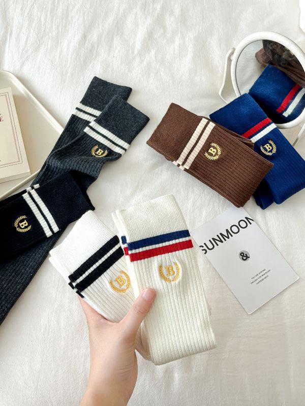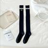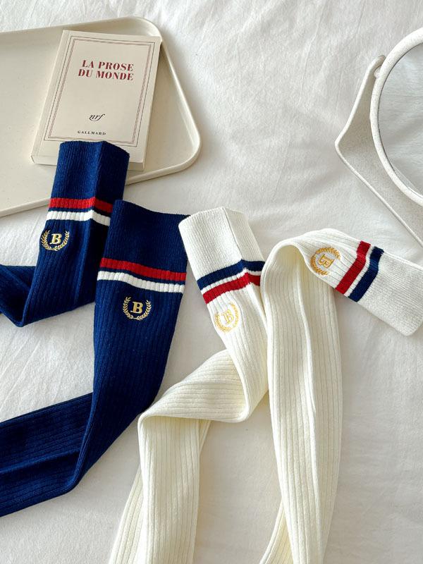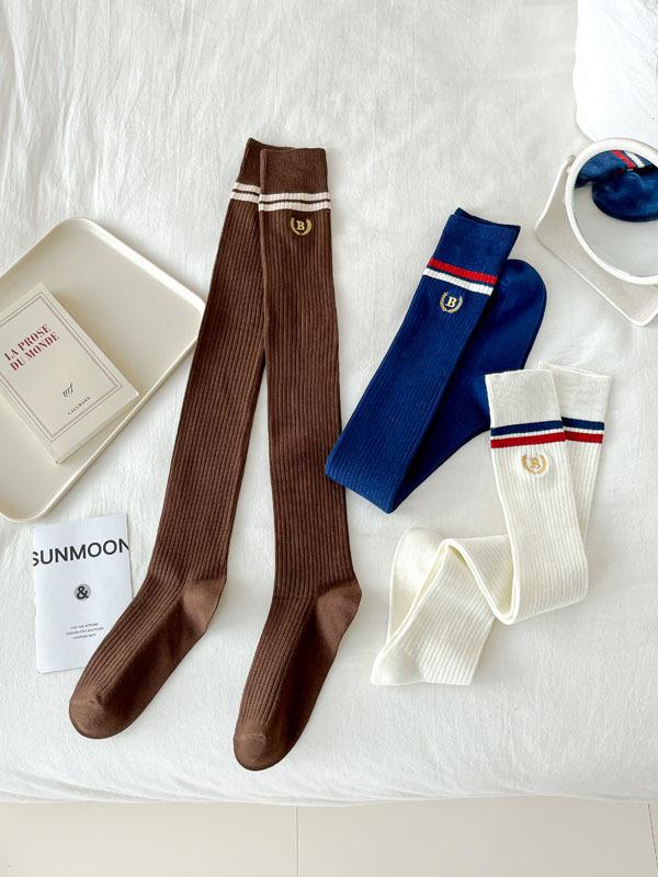 Otoño e Invierno calcetines nuevos Calcetines hasta la rodilla bordados de rayas blancas y negras retro estilo americano para mujer Chica hot Shibuya JK moda universitaria
