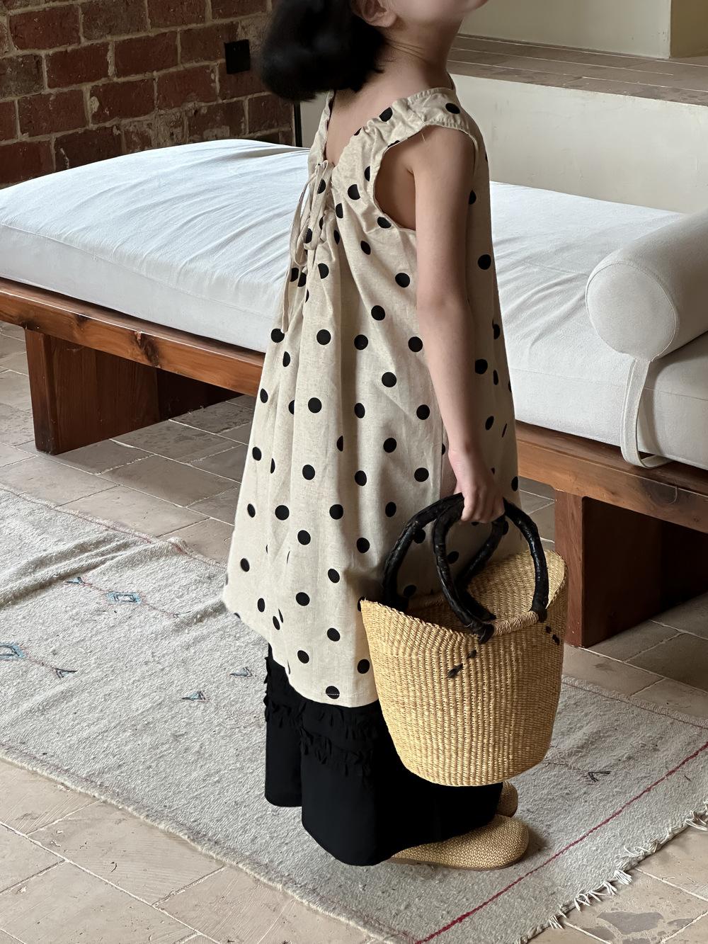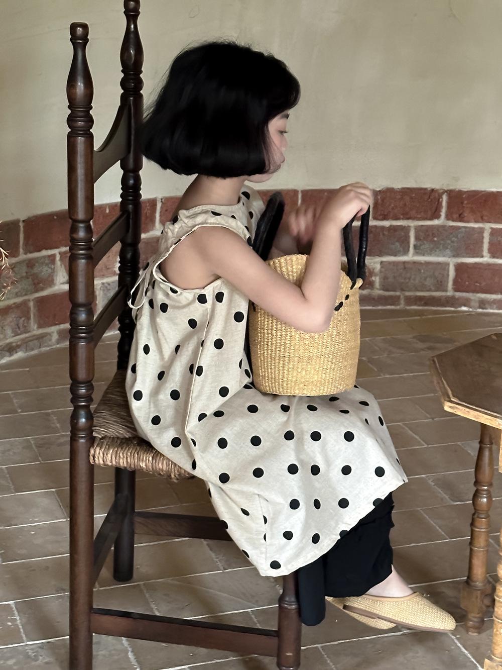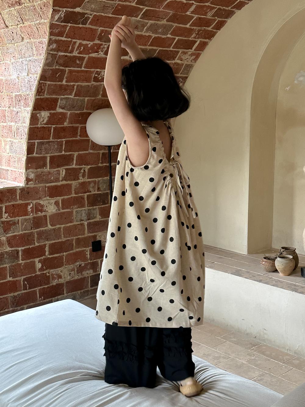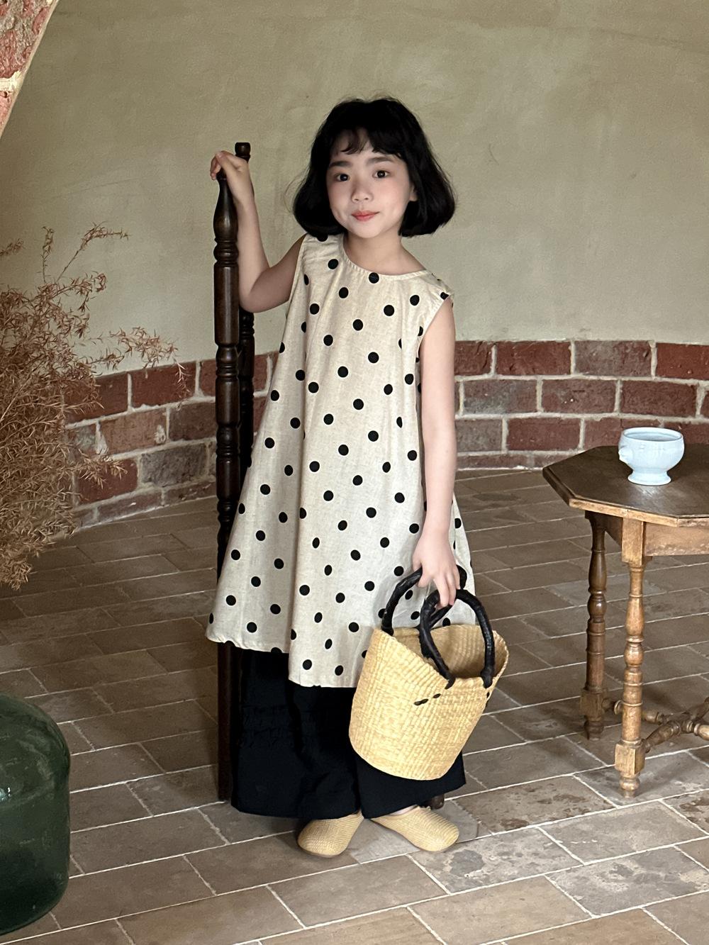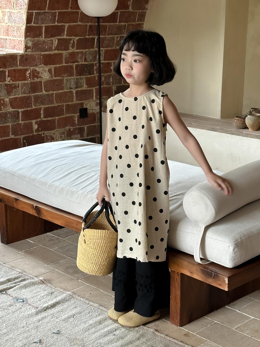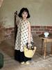 Falda para Niñas 2025 Estilo Verano Bebé Niña Estilo Coreano Vestido de Encaje de Lunares Falda Casual Holgada con Tirantes para Niños Mo Xiaomeng