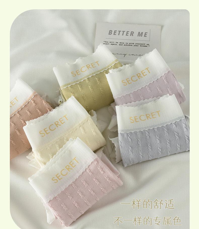 Ropa interior de talla grande para mujer, chica gordita, holgada, con borde de encaje, estilo de chica japonesa, shorts triangulares, entrepierna de algodón