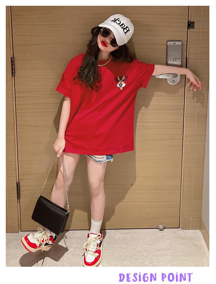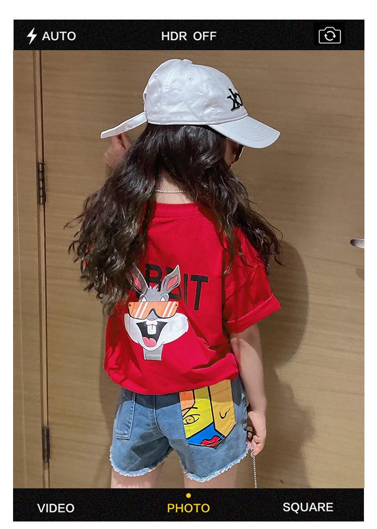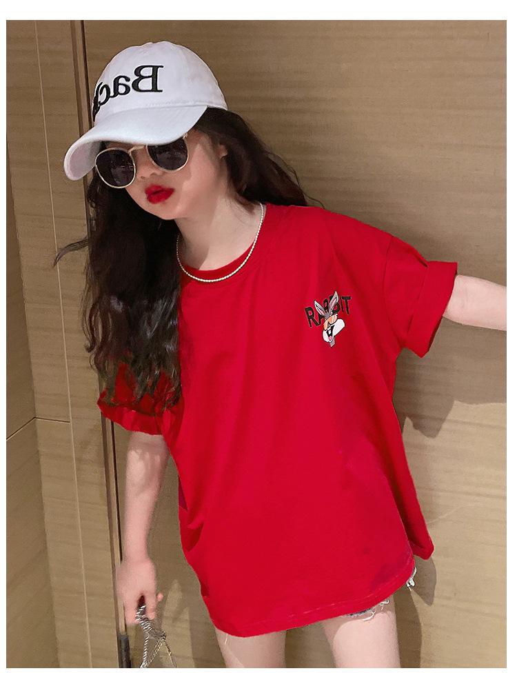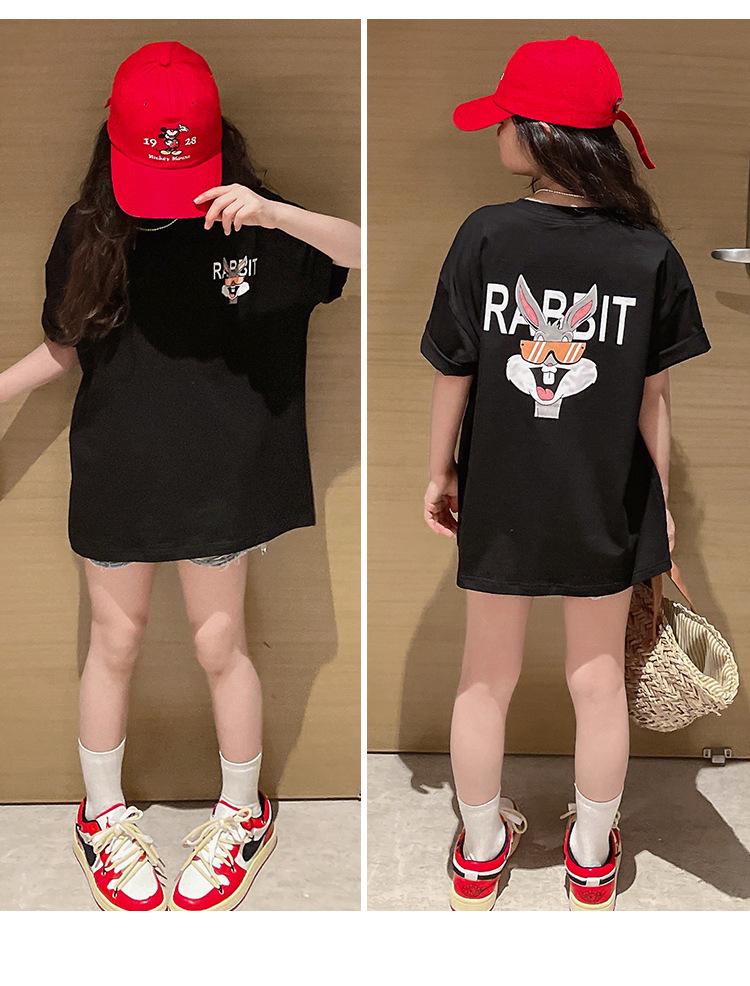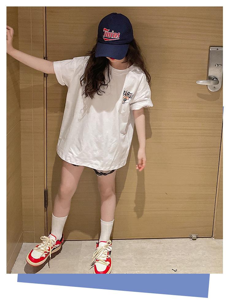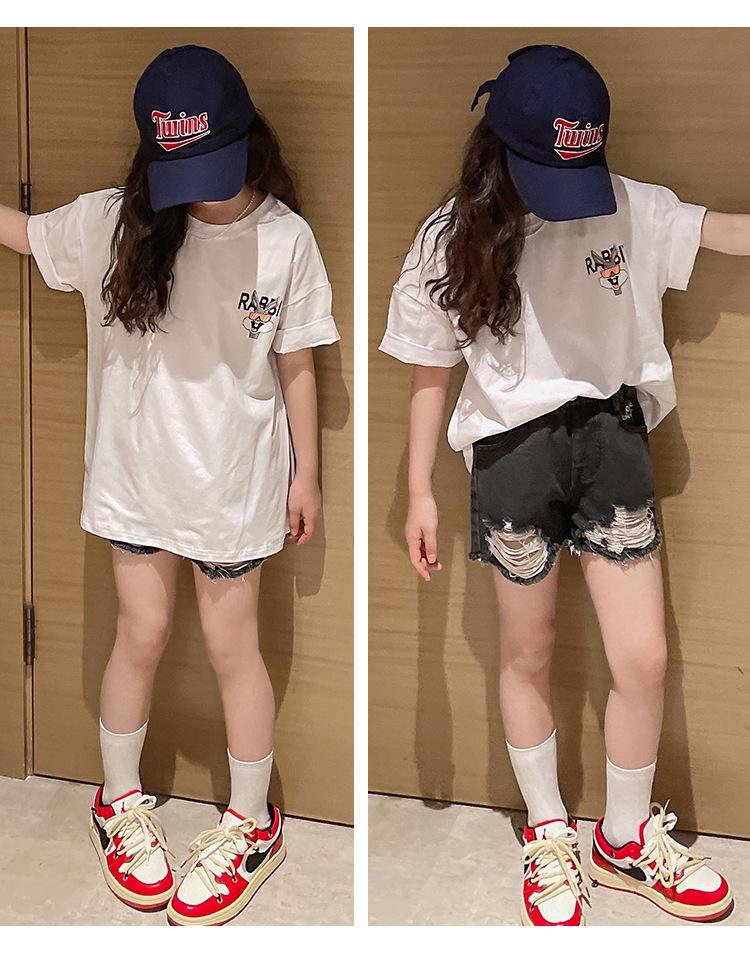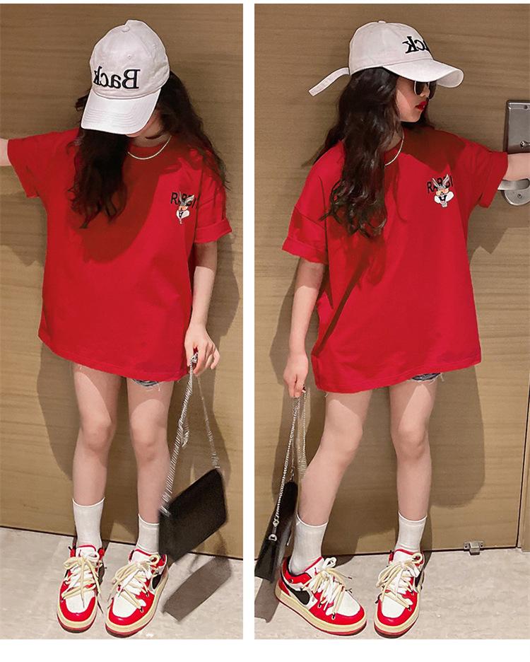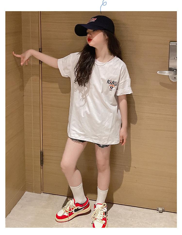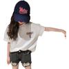 Camiseta de Manga Corta de Algodón Puro para Niñas Estilo Occidental Camiseta Infantil de Verano Holgada con Estampado Delantero y Trasero Top de Media Manga Ropa Infantil de Moda