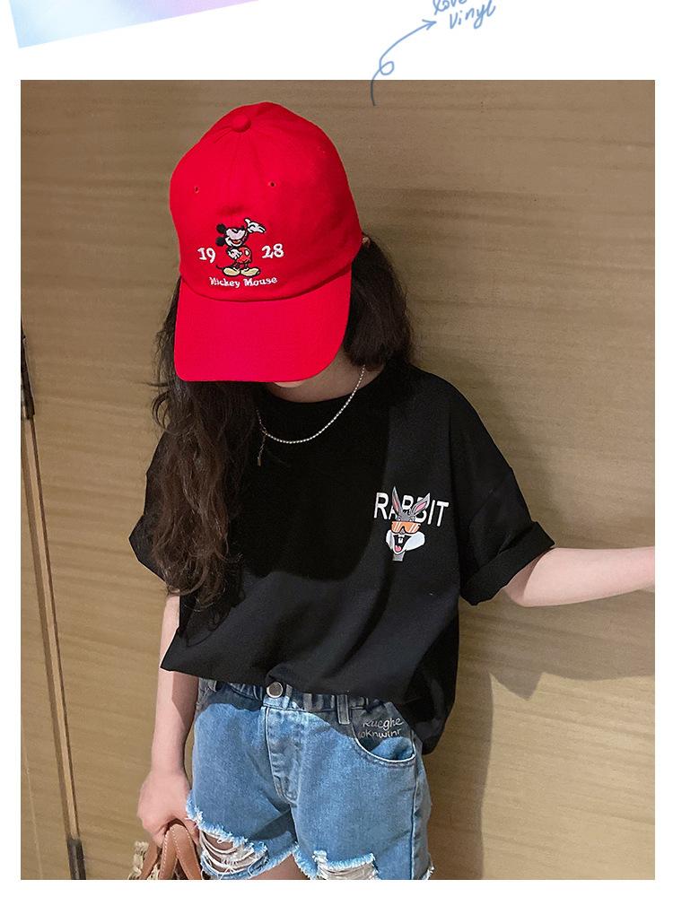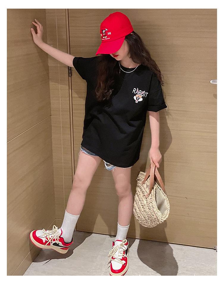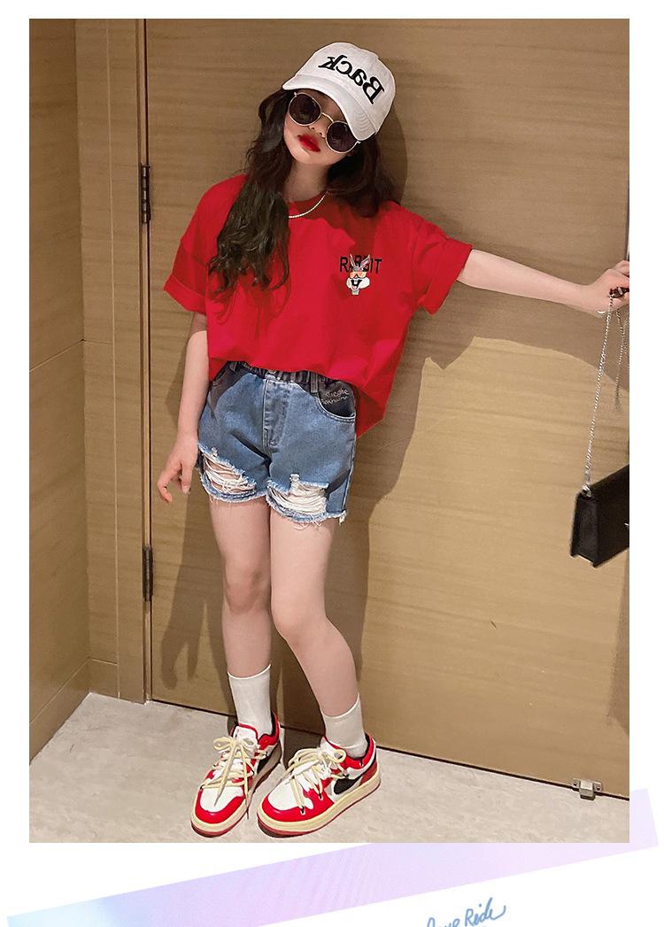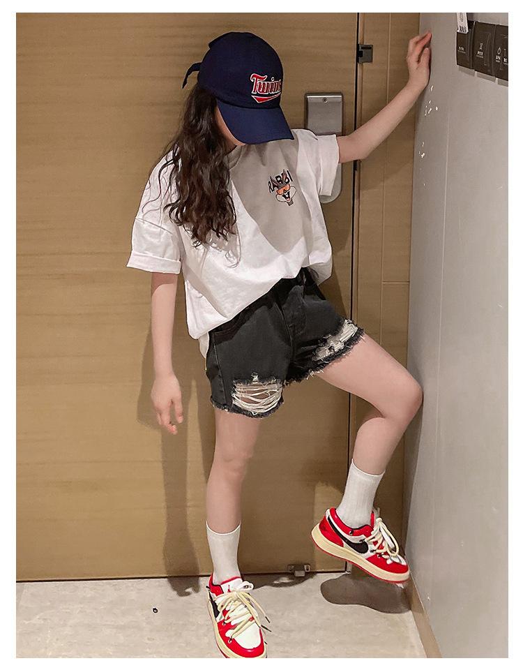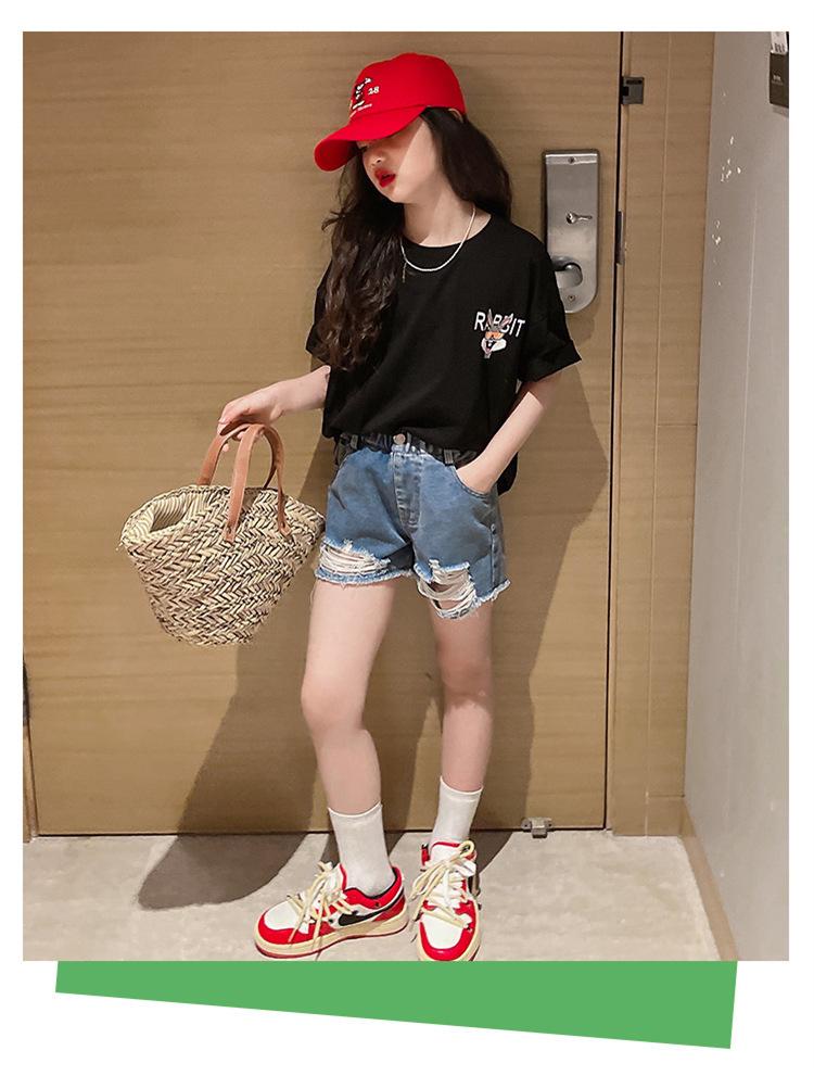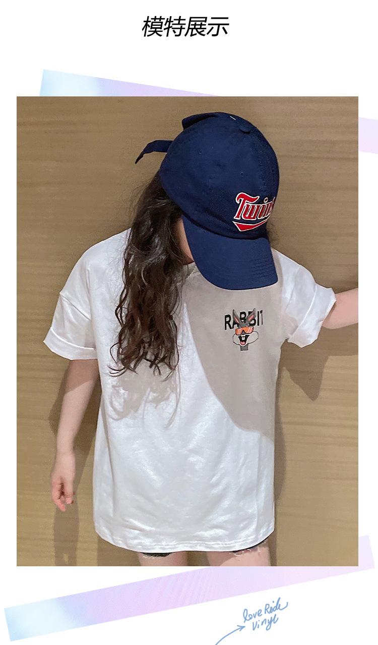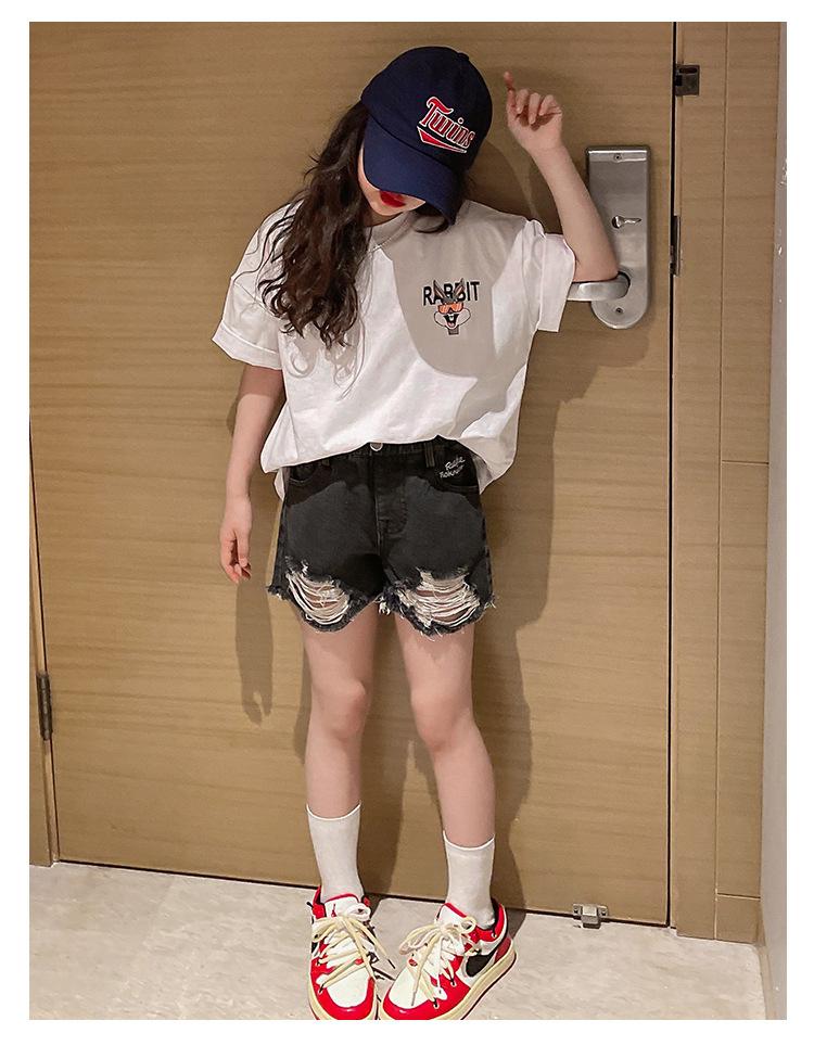 Camiseta de Manga Corta de Algodón Puro para Niñas Estilo Occidental Camiseta Infantil de Verano Holgada con Estampado Delantero y Trasero Top de Media Manga Ropa Infantil de Moda