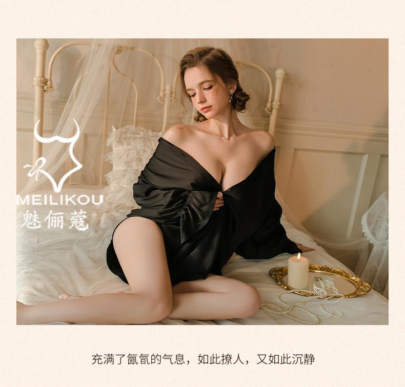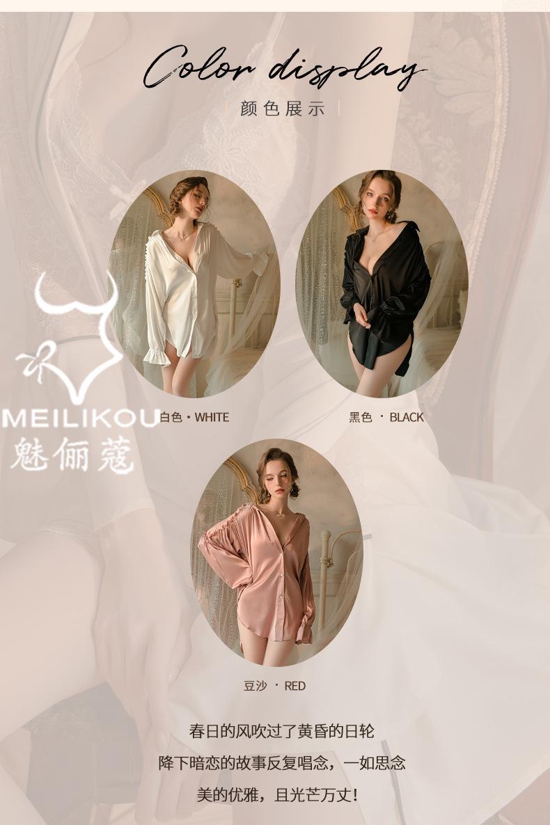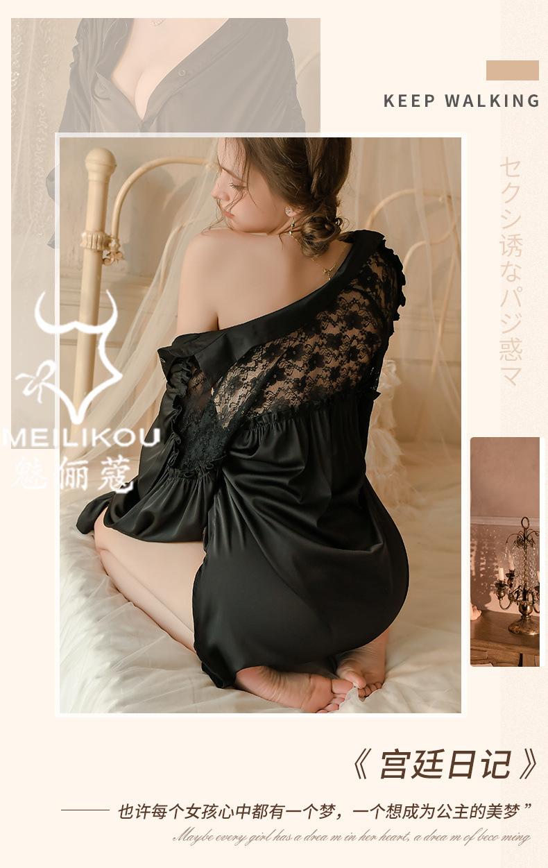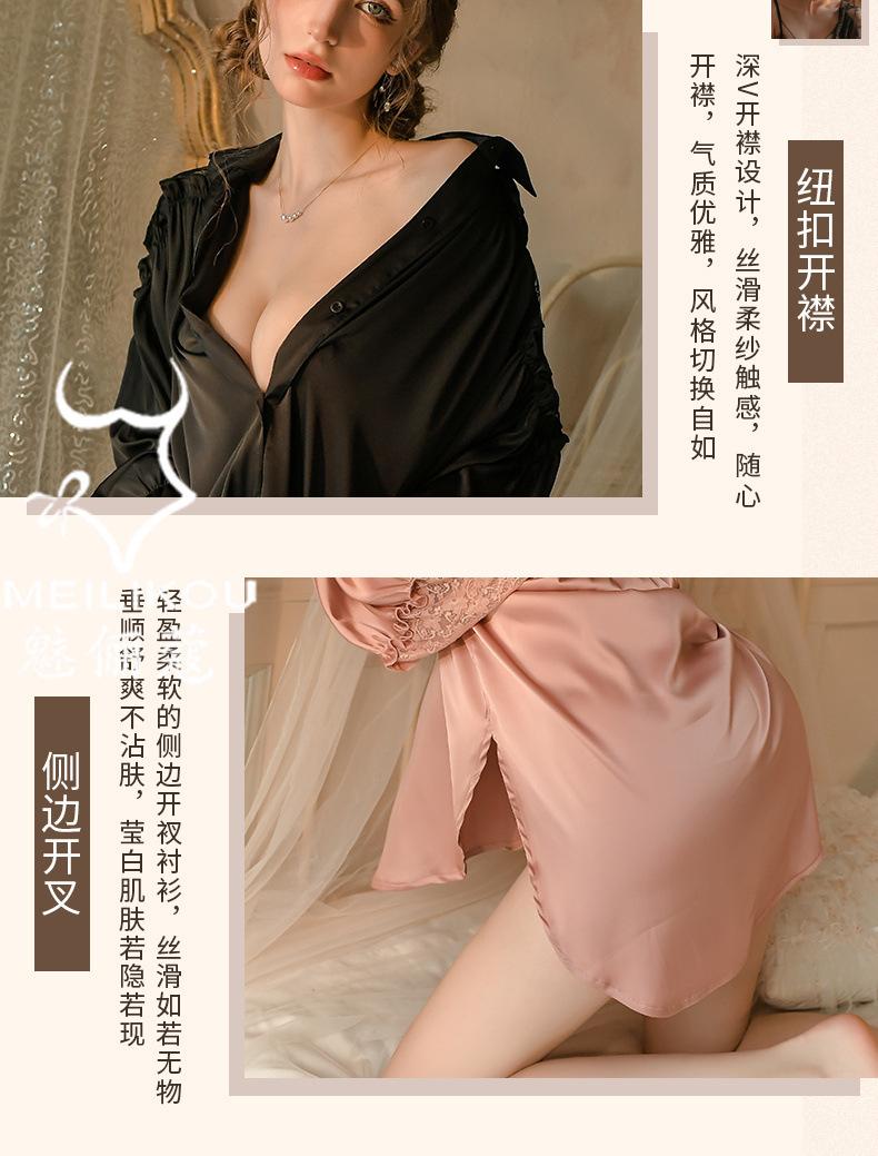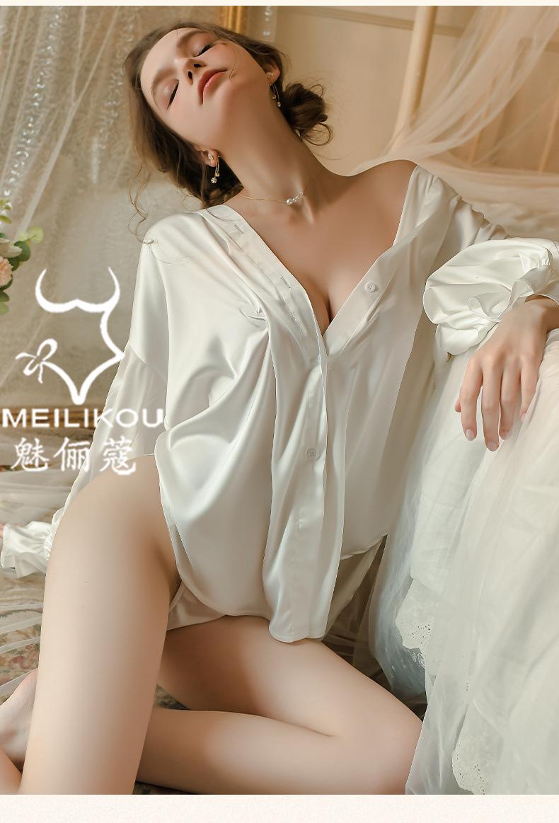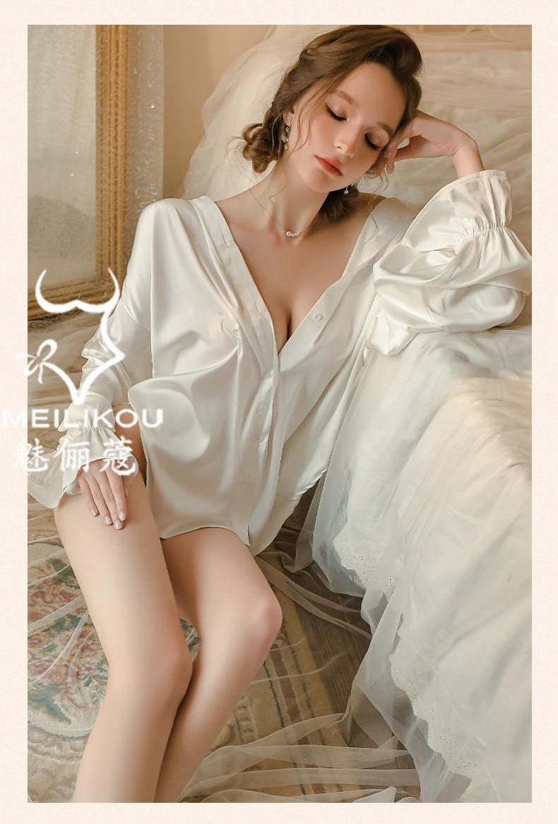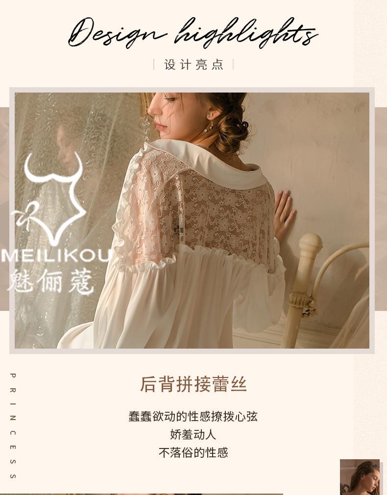 Meilikou pijama sexy camisa de mujer Seda de Hielo verano nuevo ropa de casa estilo puro deseo encaje manga larga camisón 2064