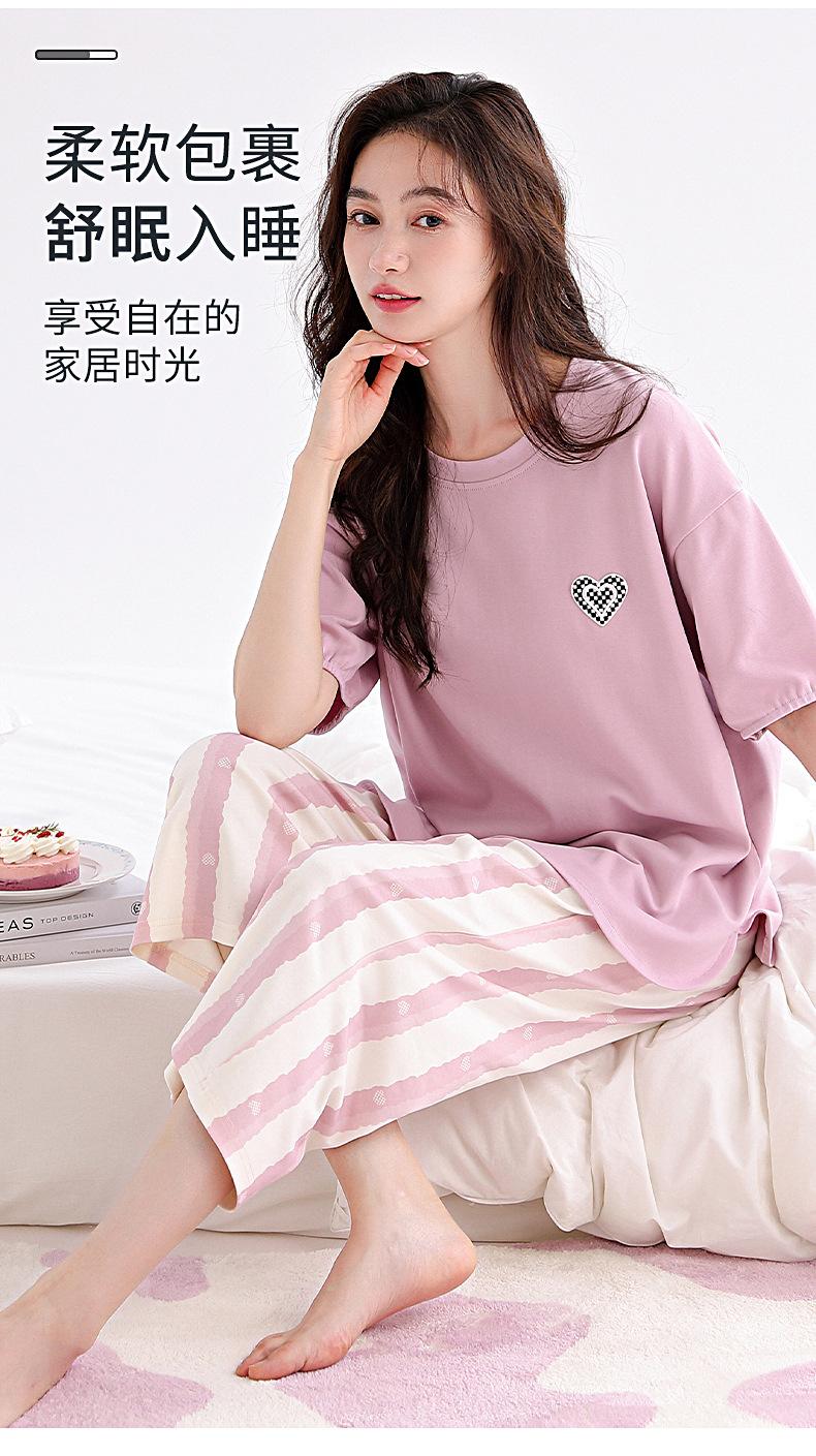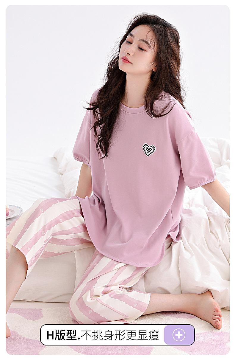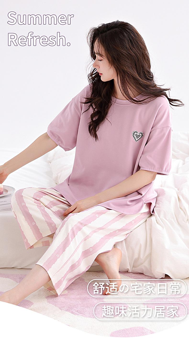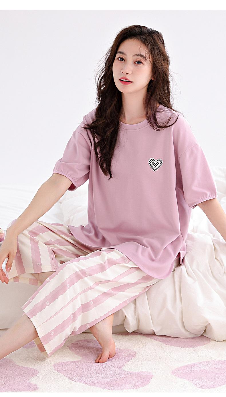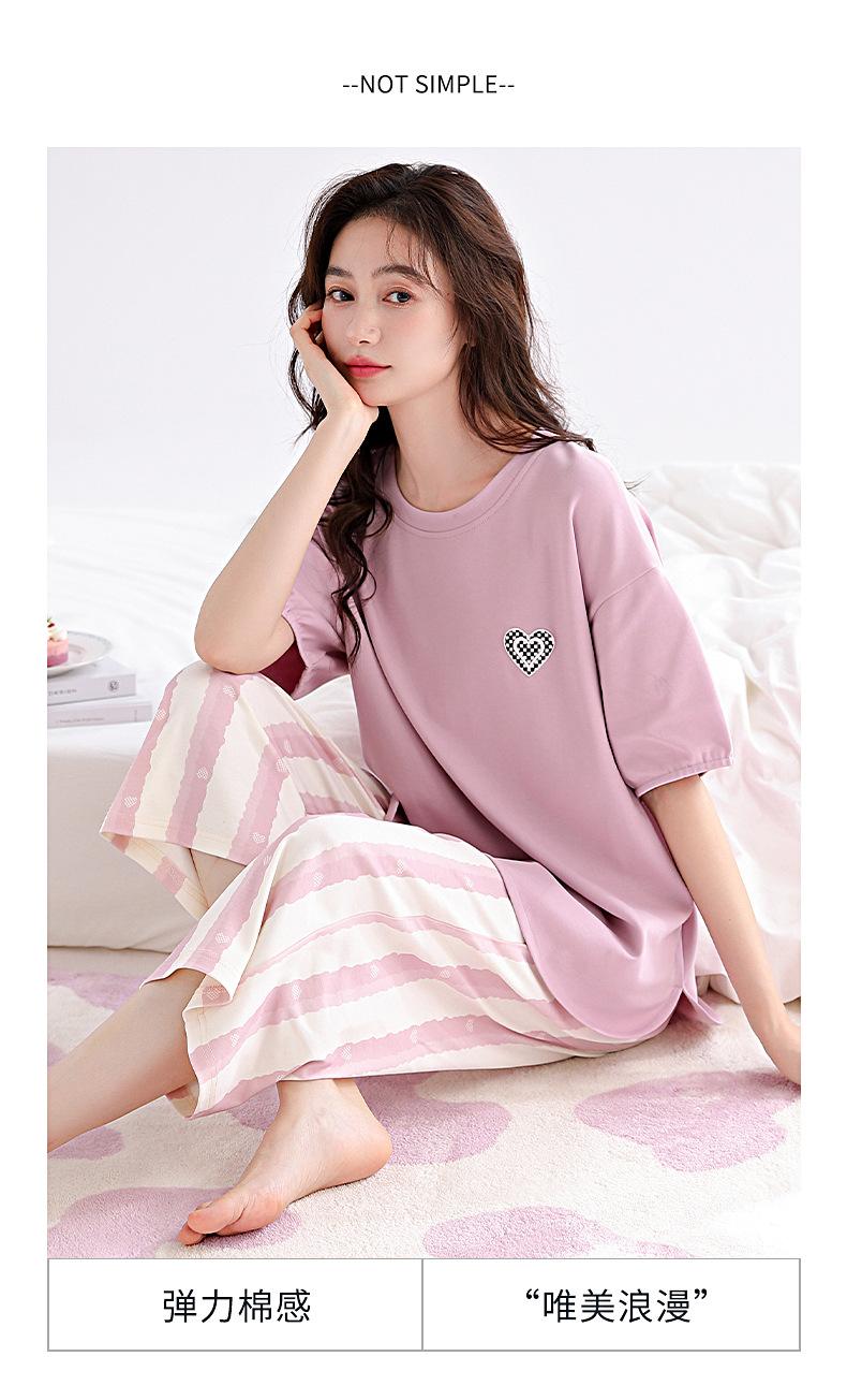 Pijamas de algodón para mujer, de manga corta, holgados y elegantes, ropa de casa de moda, traje fino de verano de talla grande.