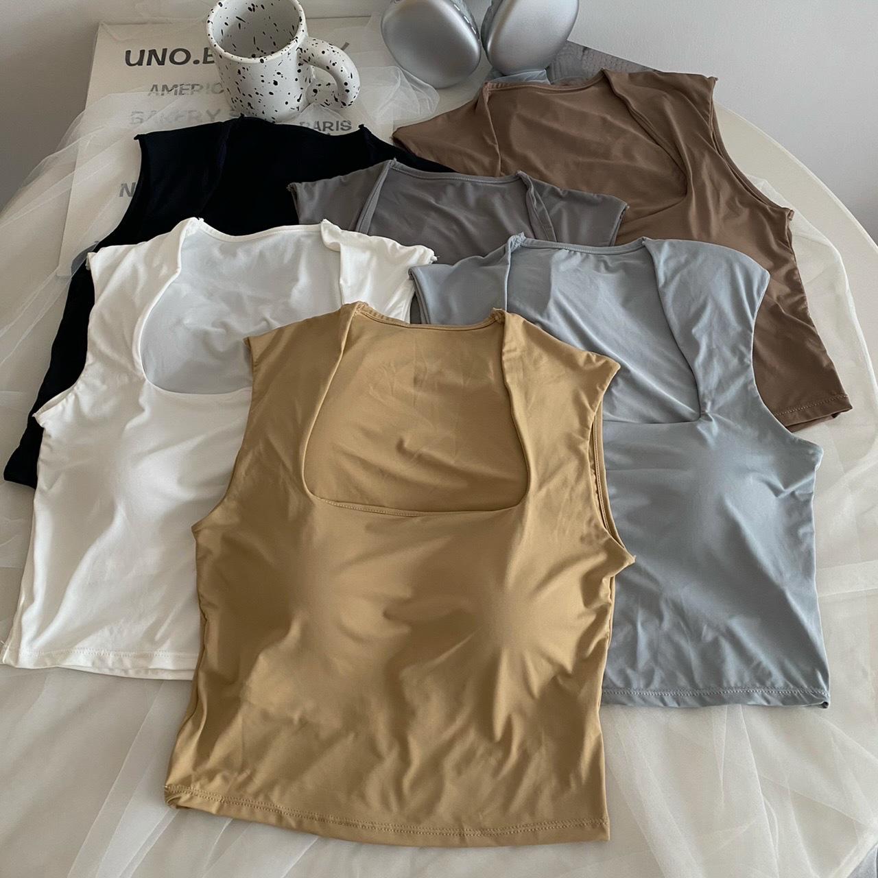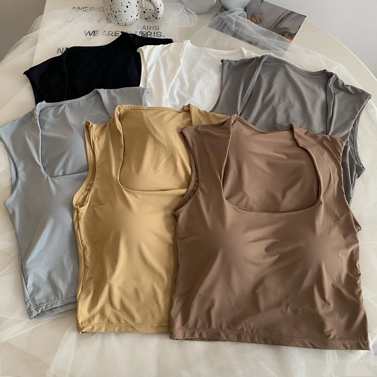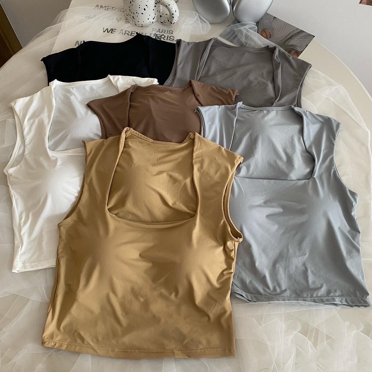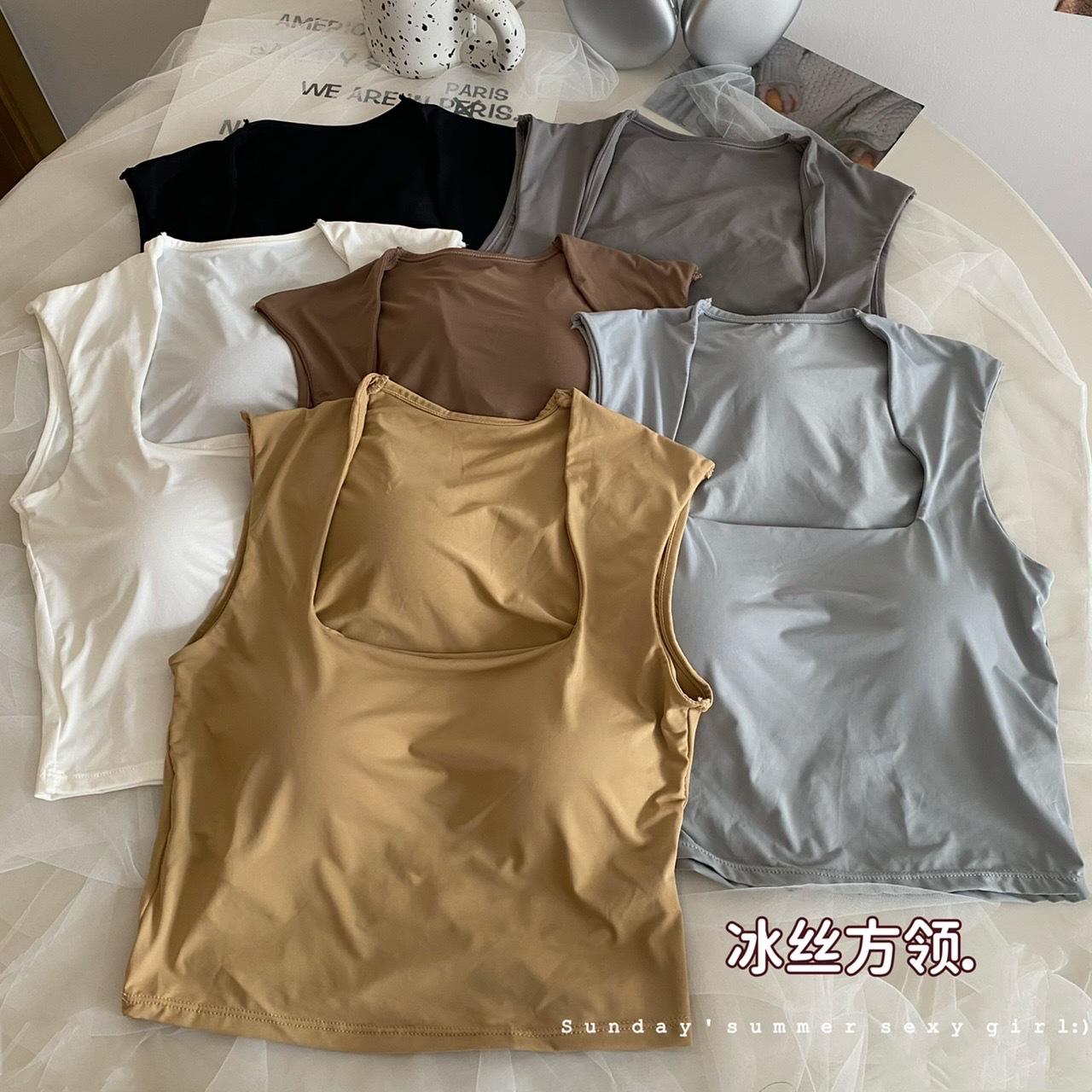 Camisola deportiva interior de seda helada con cuello cuadrado de verano para mujer, corte entallado, espalda hermosa, sin tirantes, prenda exterior sin mangas