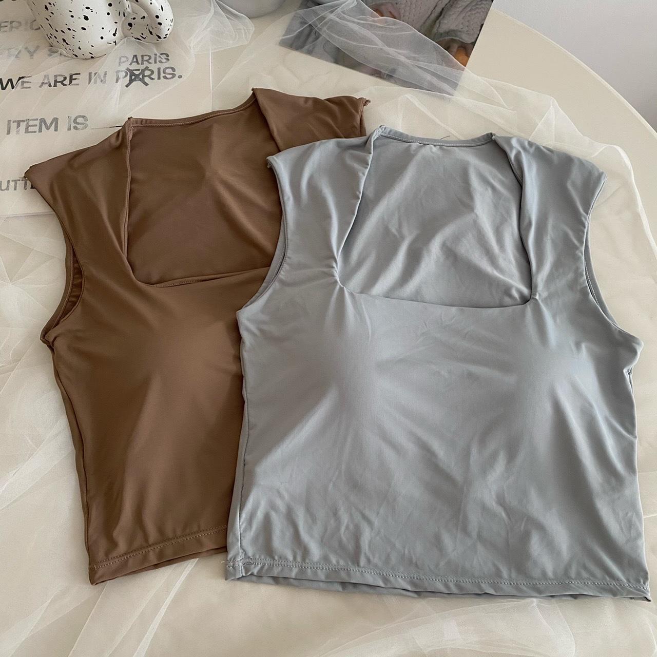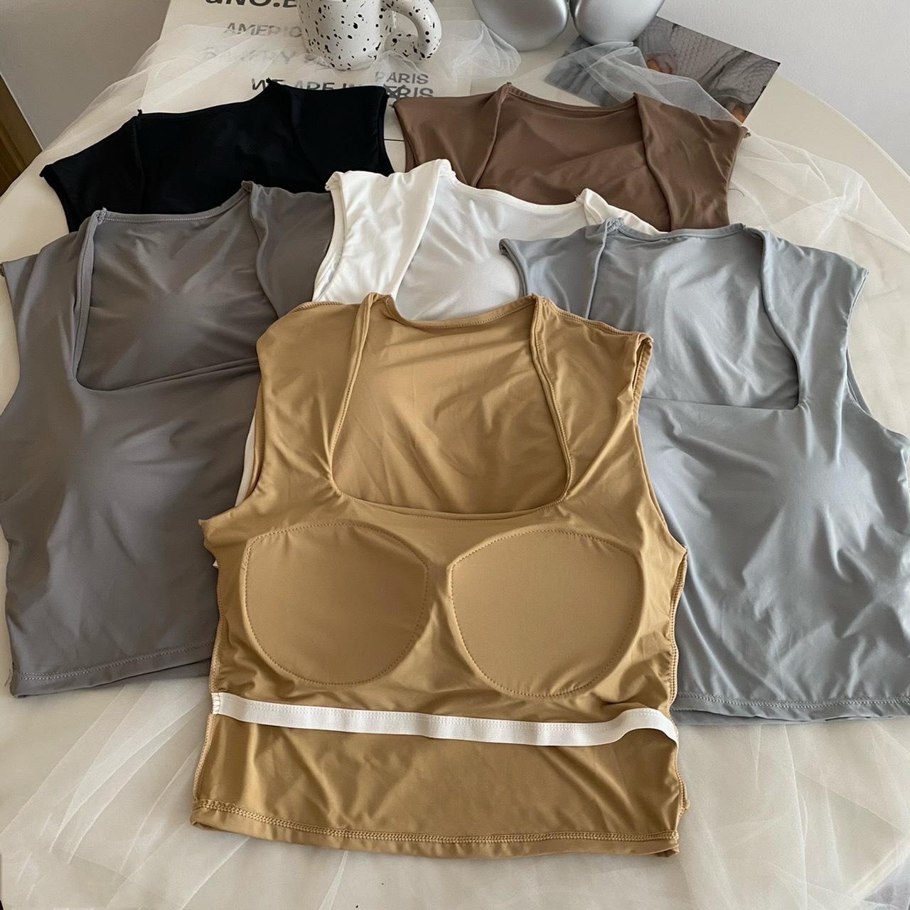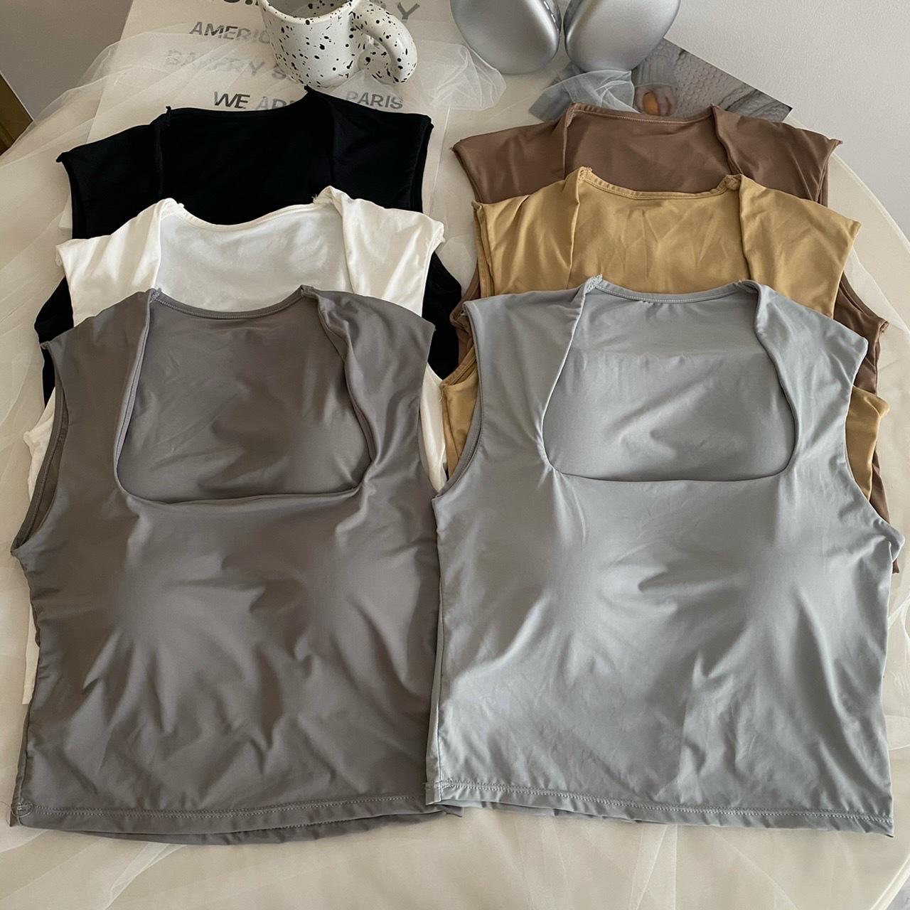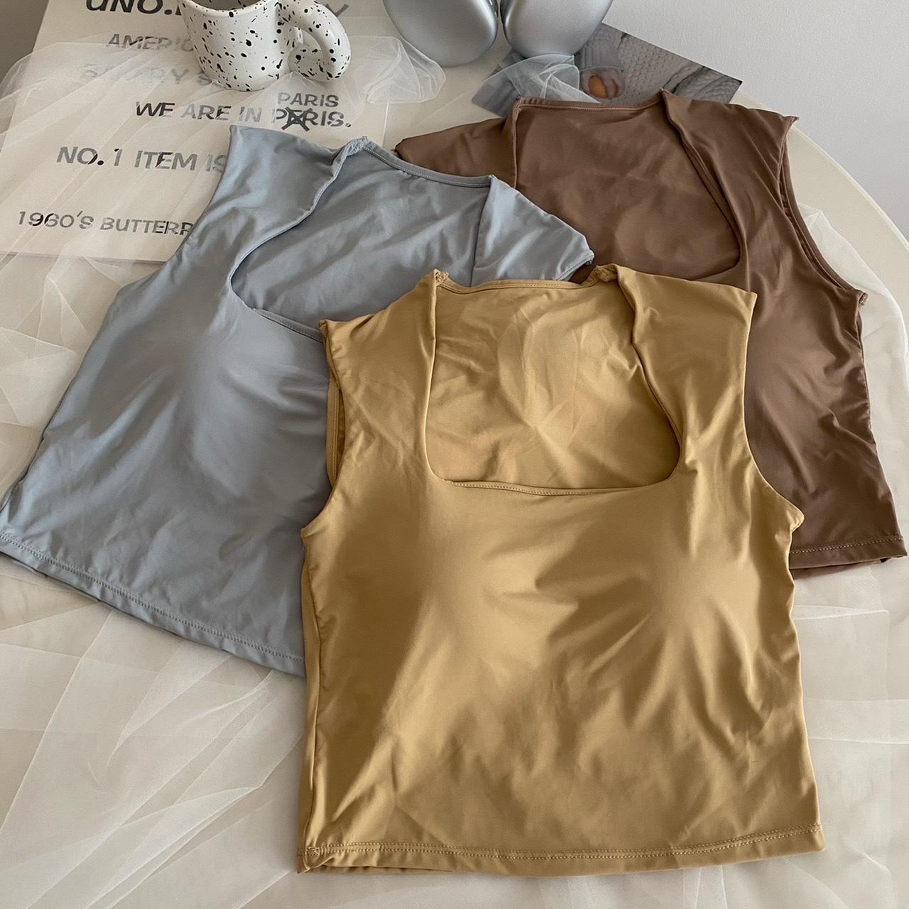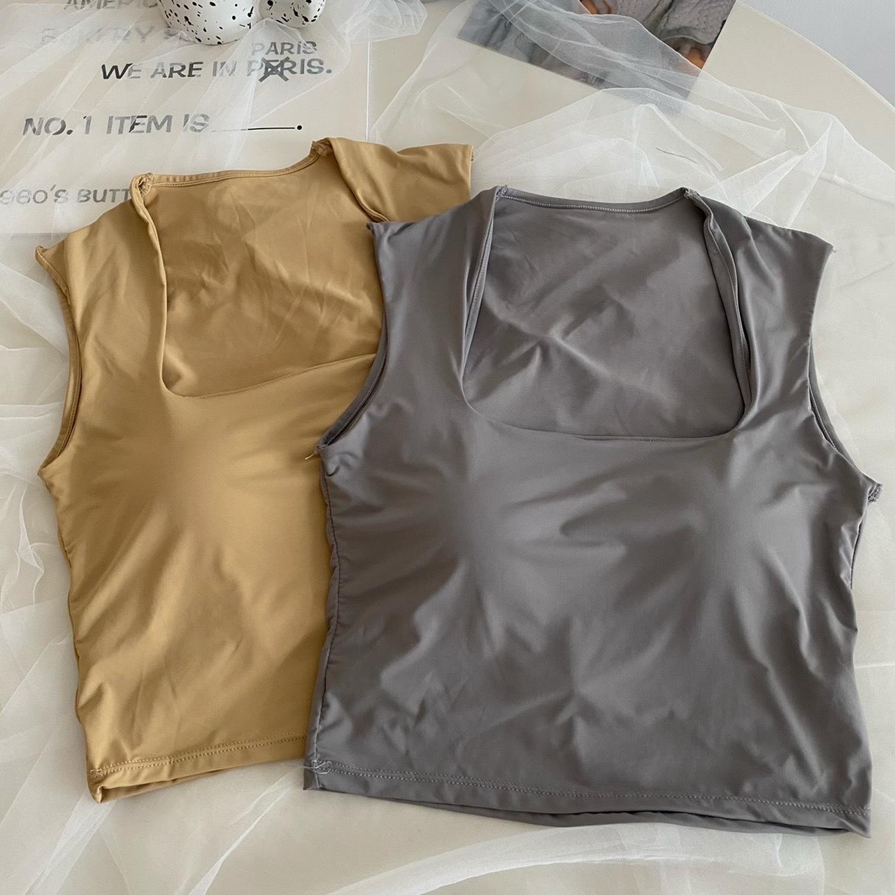 Camisola deportiva interior de seda helada con cuello cuadrado de verano para mujer, corte entallado, espalda hermosa, sin tirantes, prenda exterior sin mangas