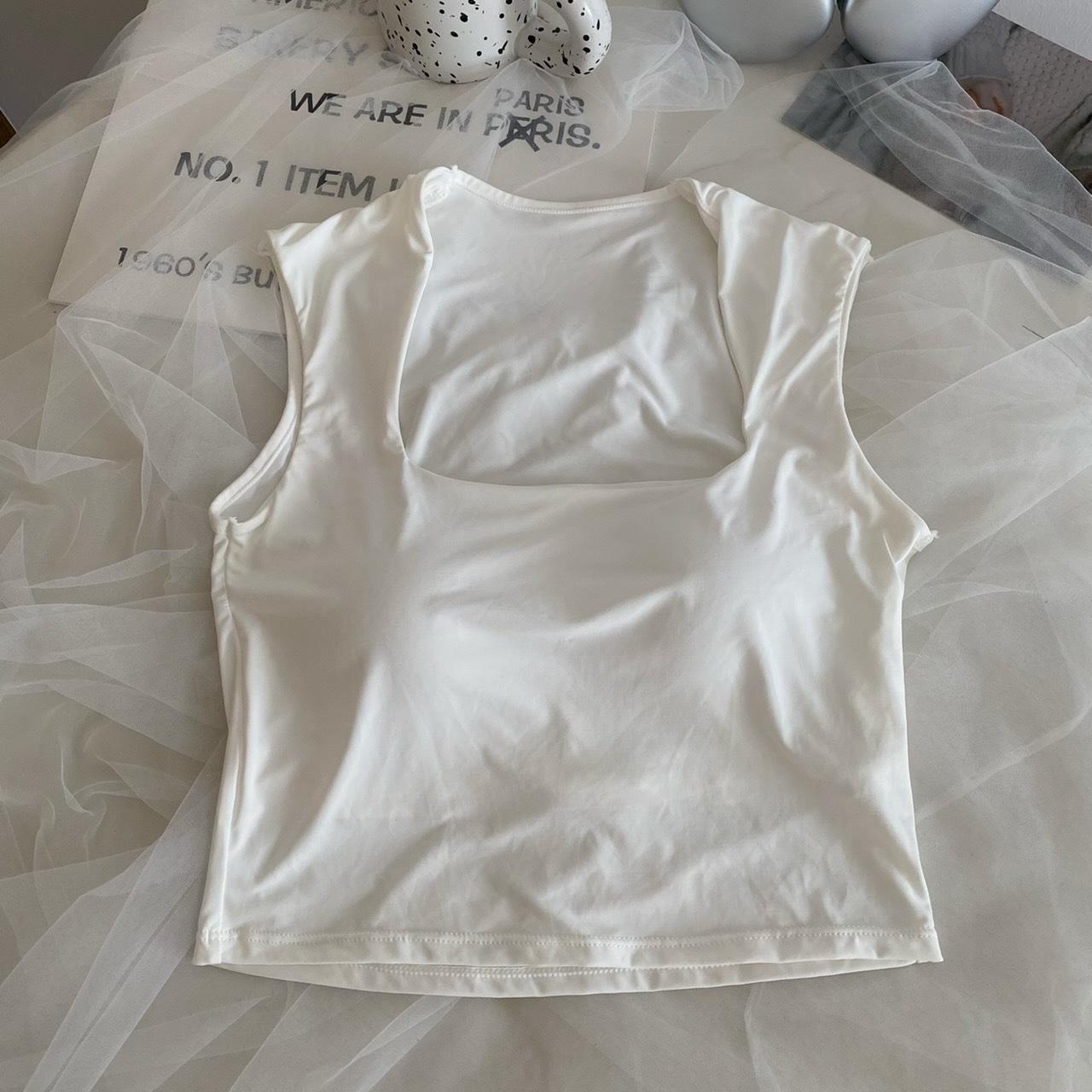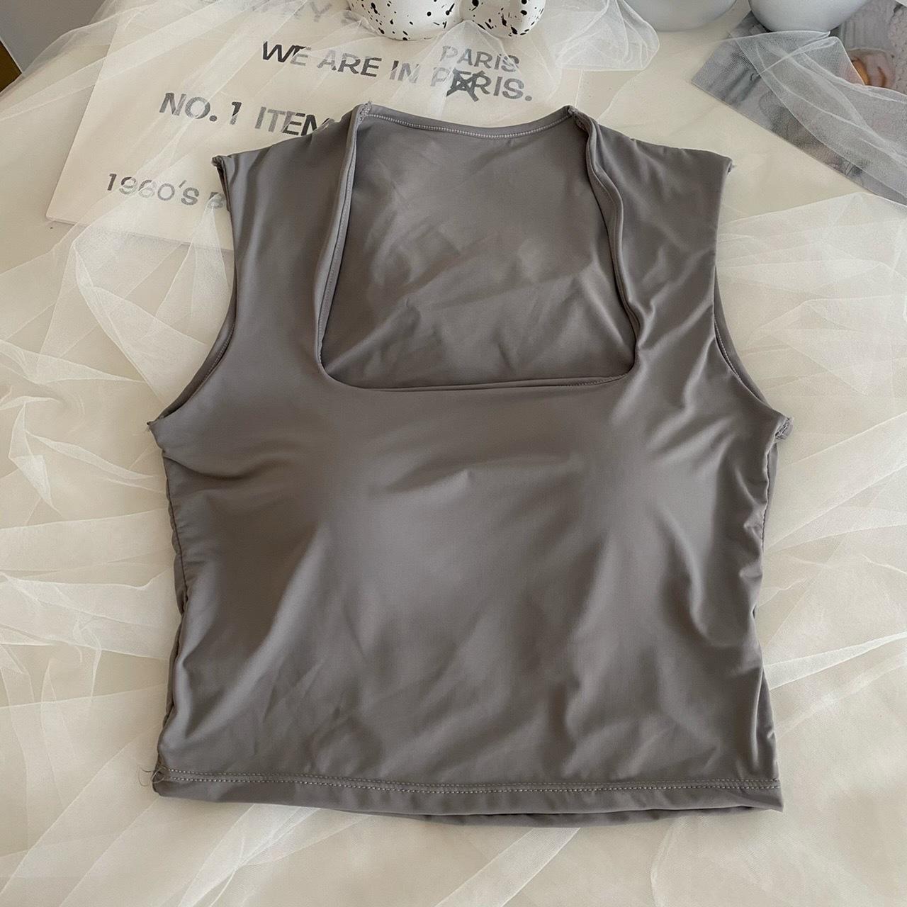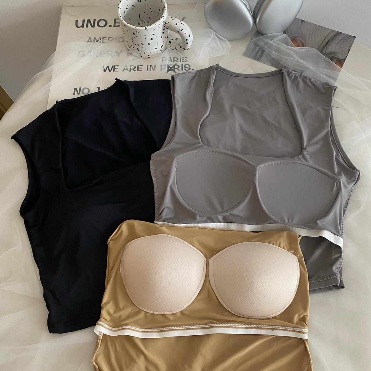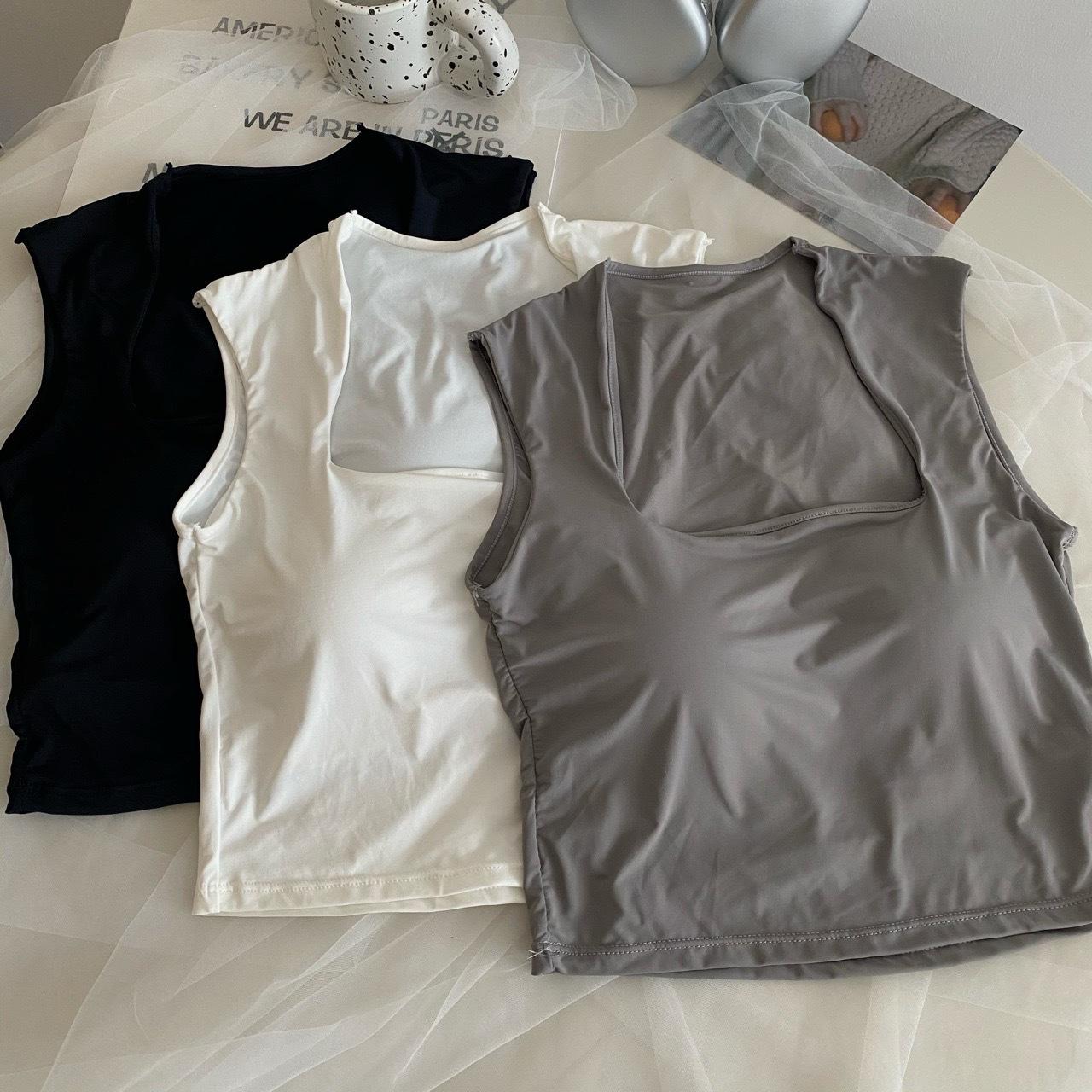 Camisola deportiva interior de seda helada con cuello cuadrado de verano para mujer, corte entallado, espalda hermosa, sin tirantes, prenda exterior sin mangas