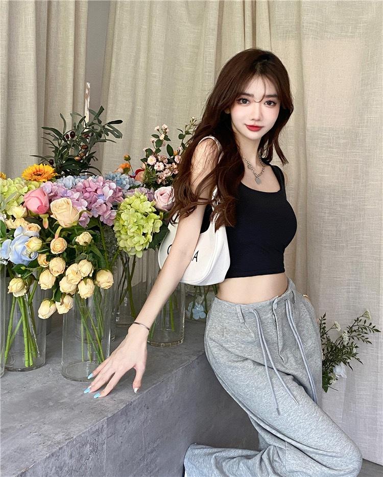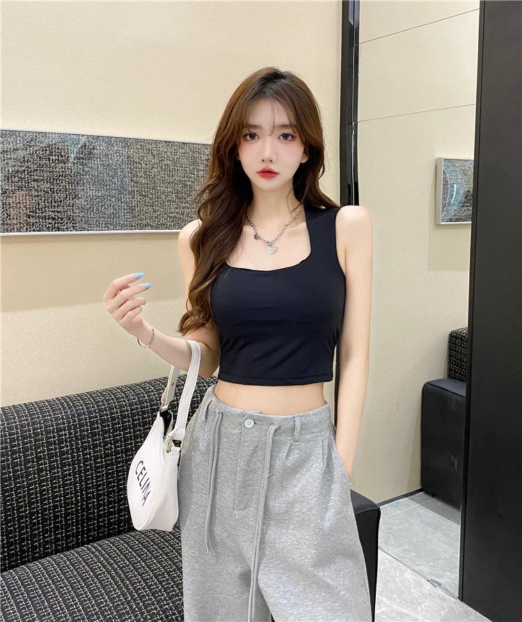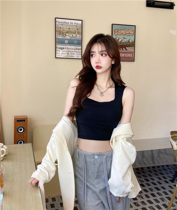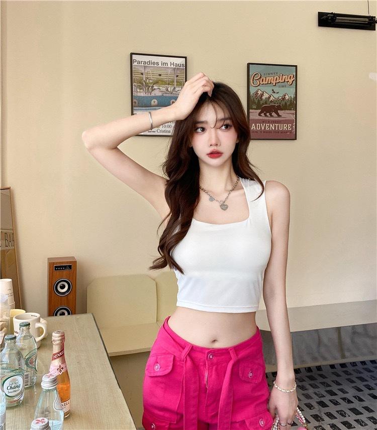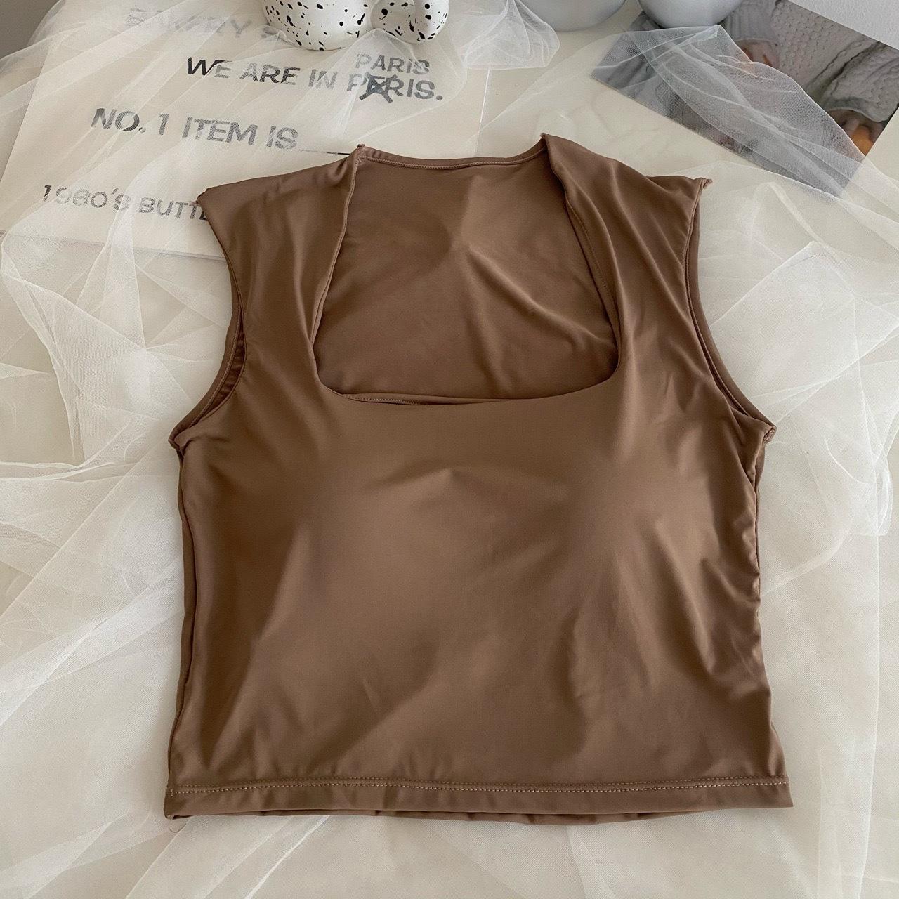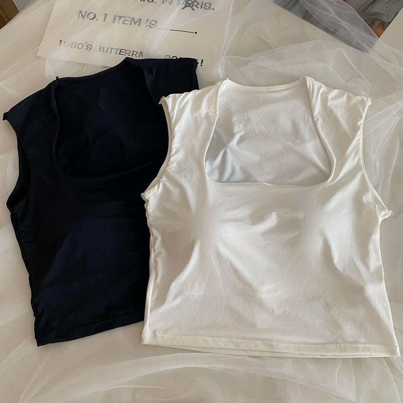 Camisola deportiva interior de seda helada con cuello cuadrado de verano para mujer, corte entallado, espalda hermosa, sin tirantes, prenda exterior sin mangas