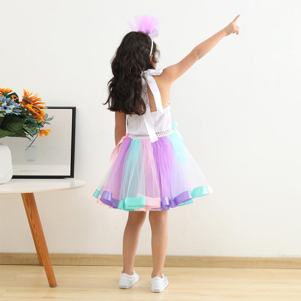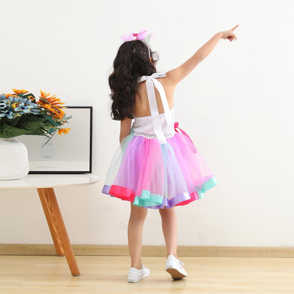 Falda tutú de malla con lentejuelas degradadas para niñas, con tocado, para fiesta de cumpleaños, unicornio, 2023