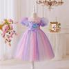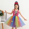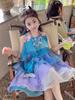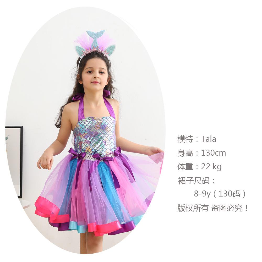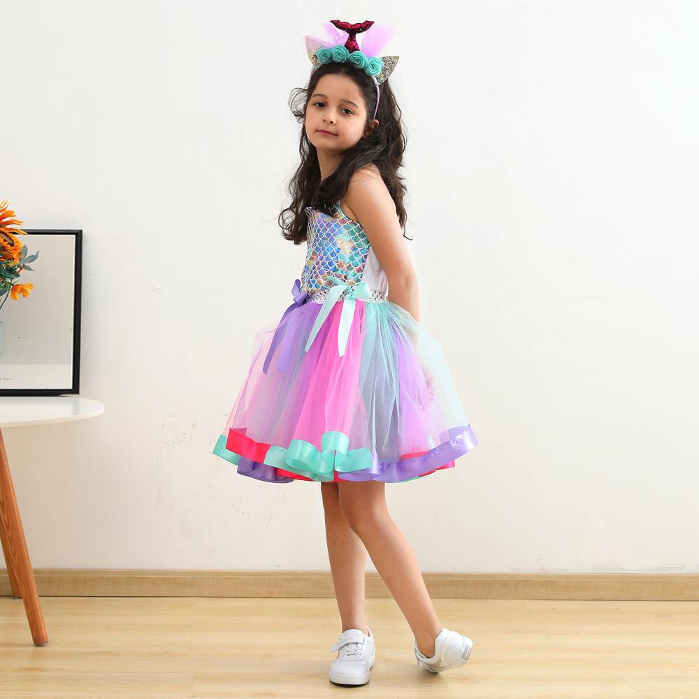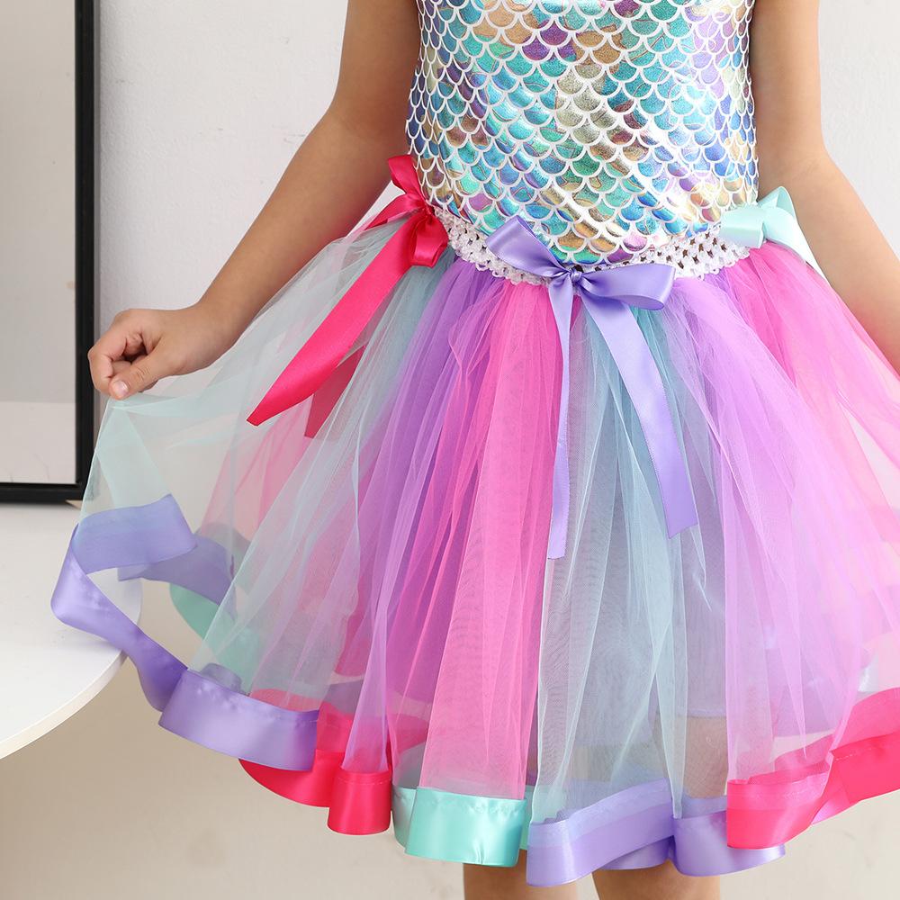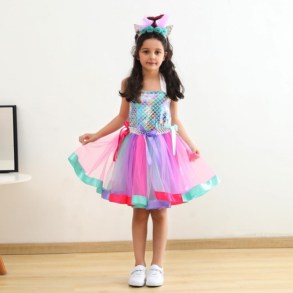 Vestido de niña arcoíris europeo y americano nuevo 2023, vestido de sirena con tocado de cola de pez, falda de tul con lazo