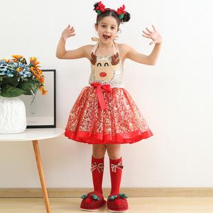 Vestido navideño europeo y americano para niñas, falda tutú de alce con estampado de malla y tocado, regalo de fiesta