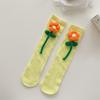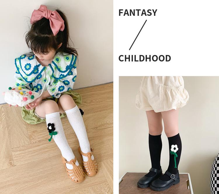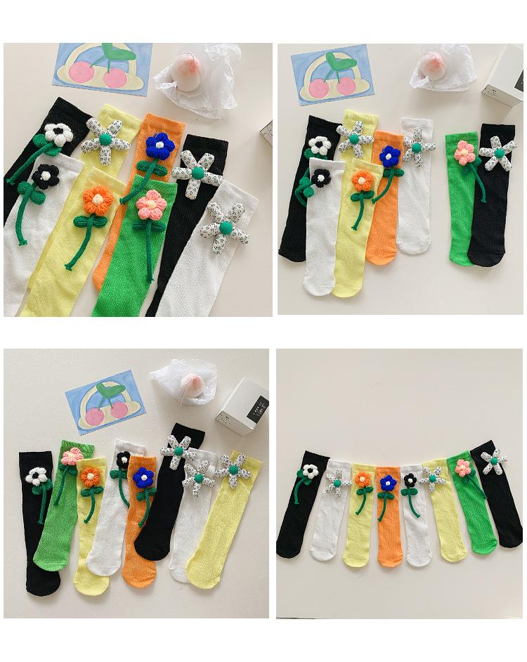 Calcetines de verano para niñas, de algodón fino, de malla para niños, de longitud media, con estampado de flores coreanas, a la moda, para bebés