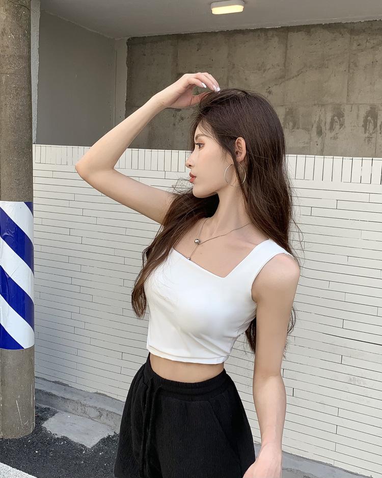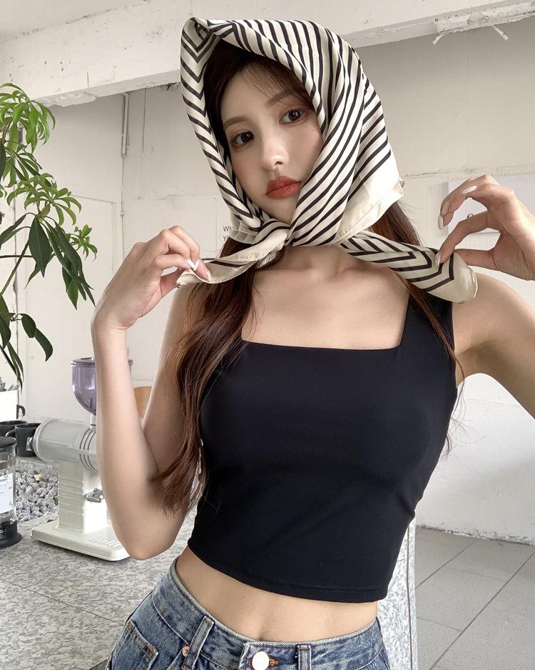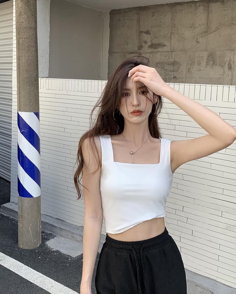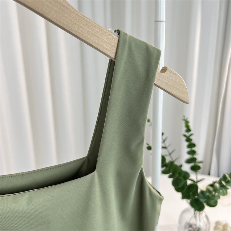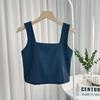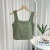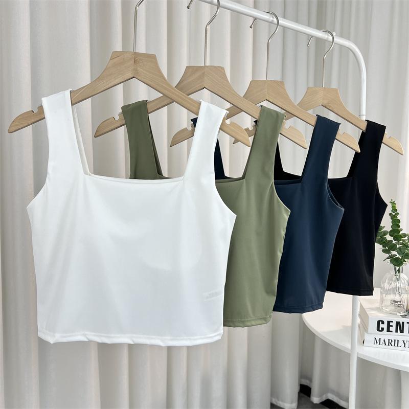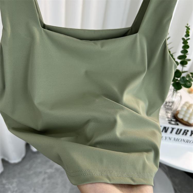 Camisola de seda de hielo con cuello cuadrado y hombros anchos para mujer, chaleco deportivo con almohadilla en el pecho, prenda exterior de verano, top corto con base interior para el ombligo