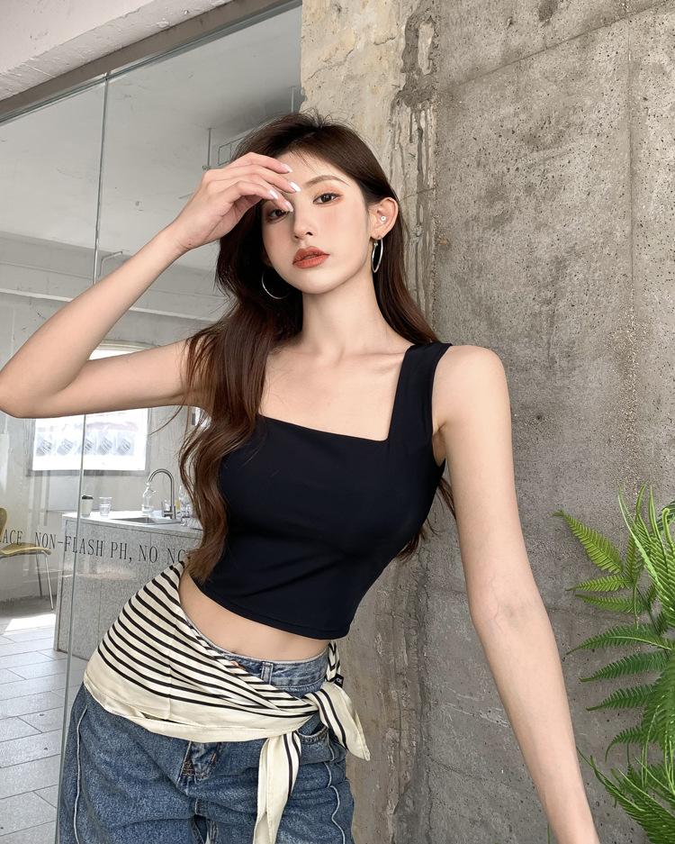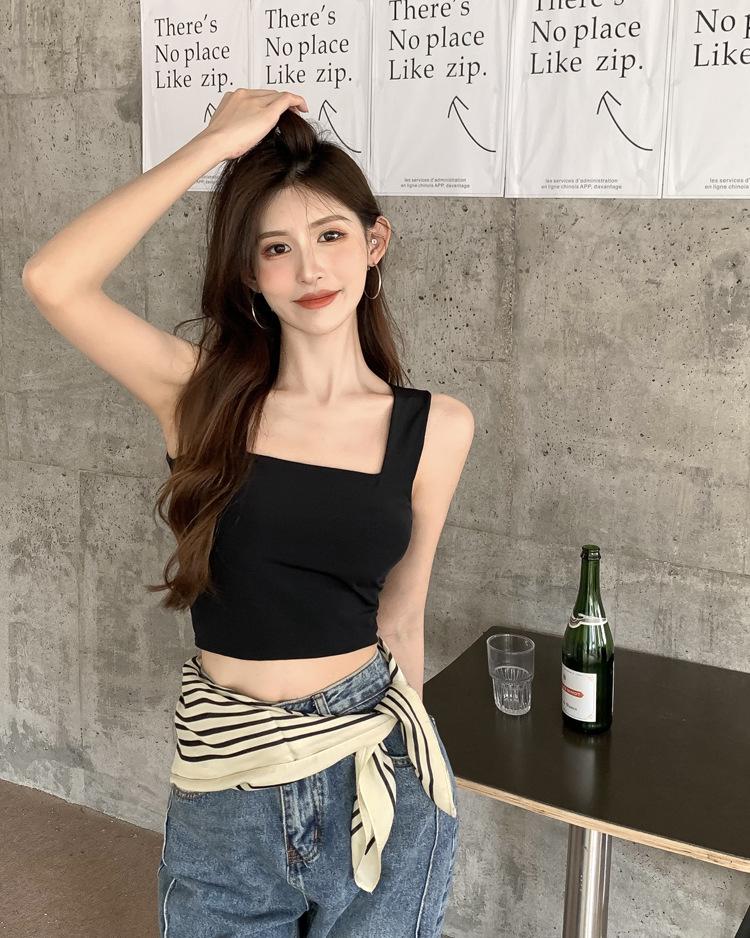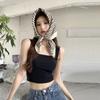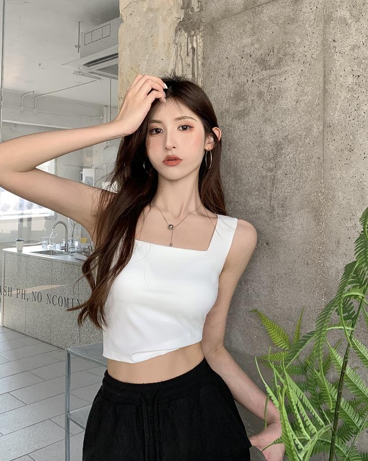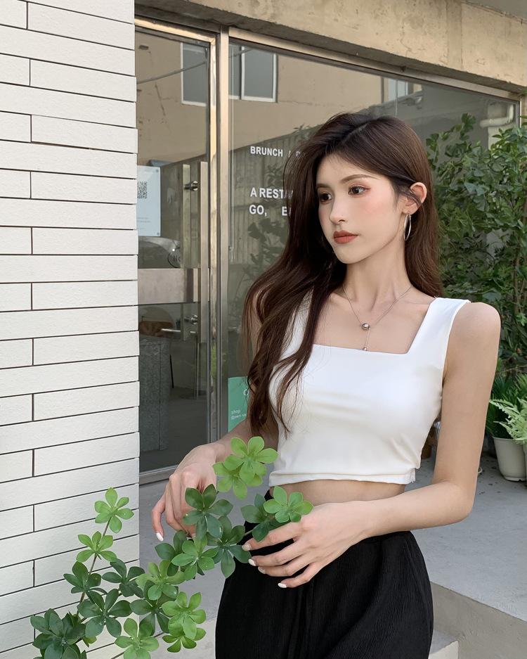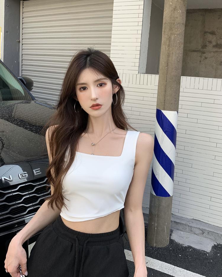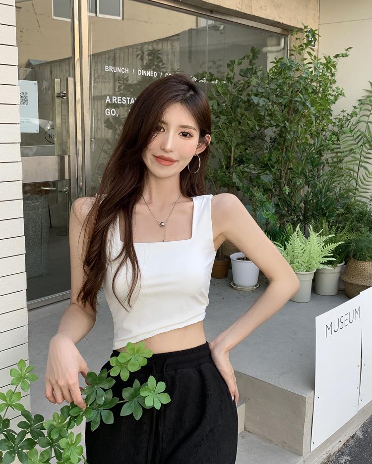 Camisola de seda de hielo con cuello cuadrado y hombros anchos para mujer, chaleco deportivo con almohadilla en el pecho, prenda exterior de verano, top corto con base interior para el ombligo
