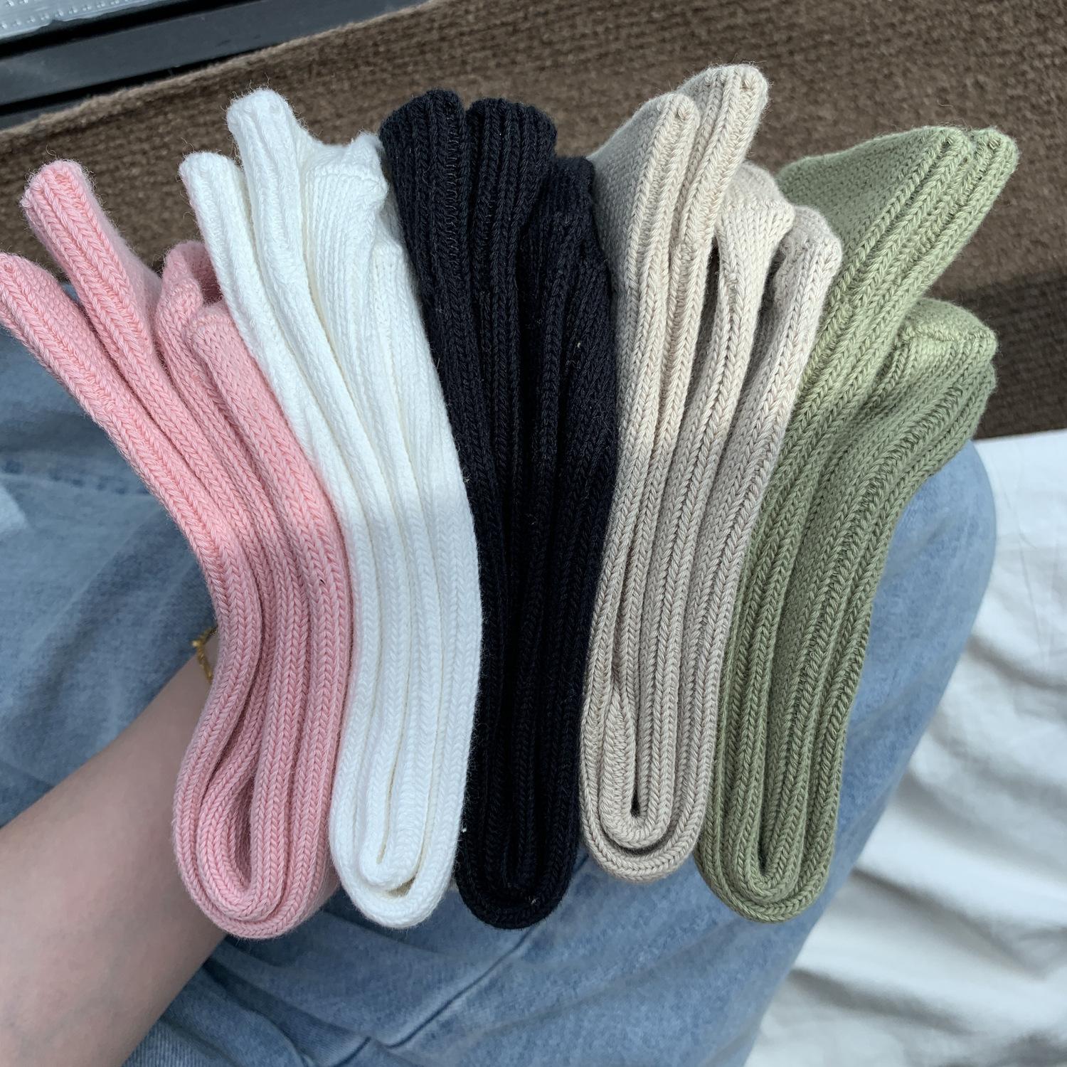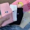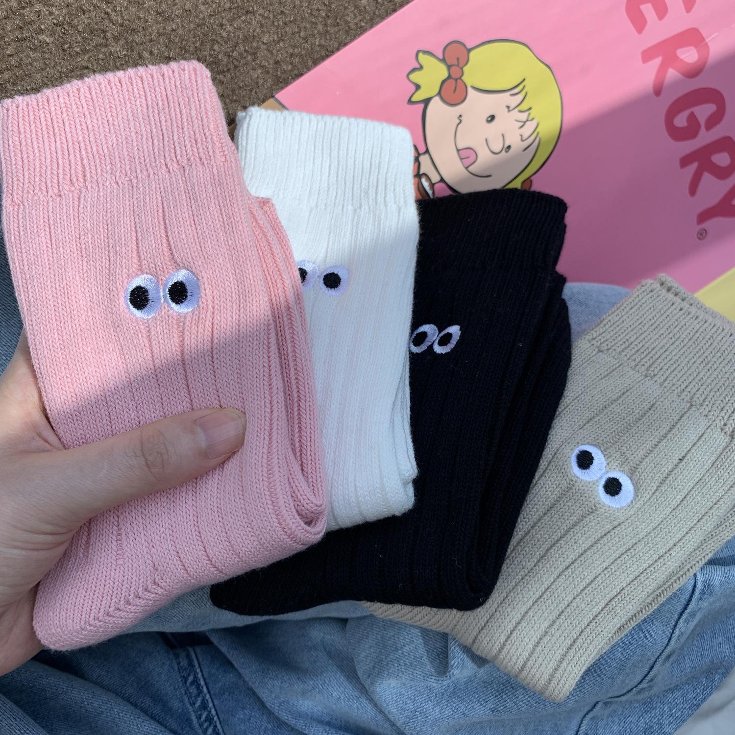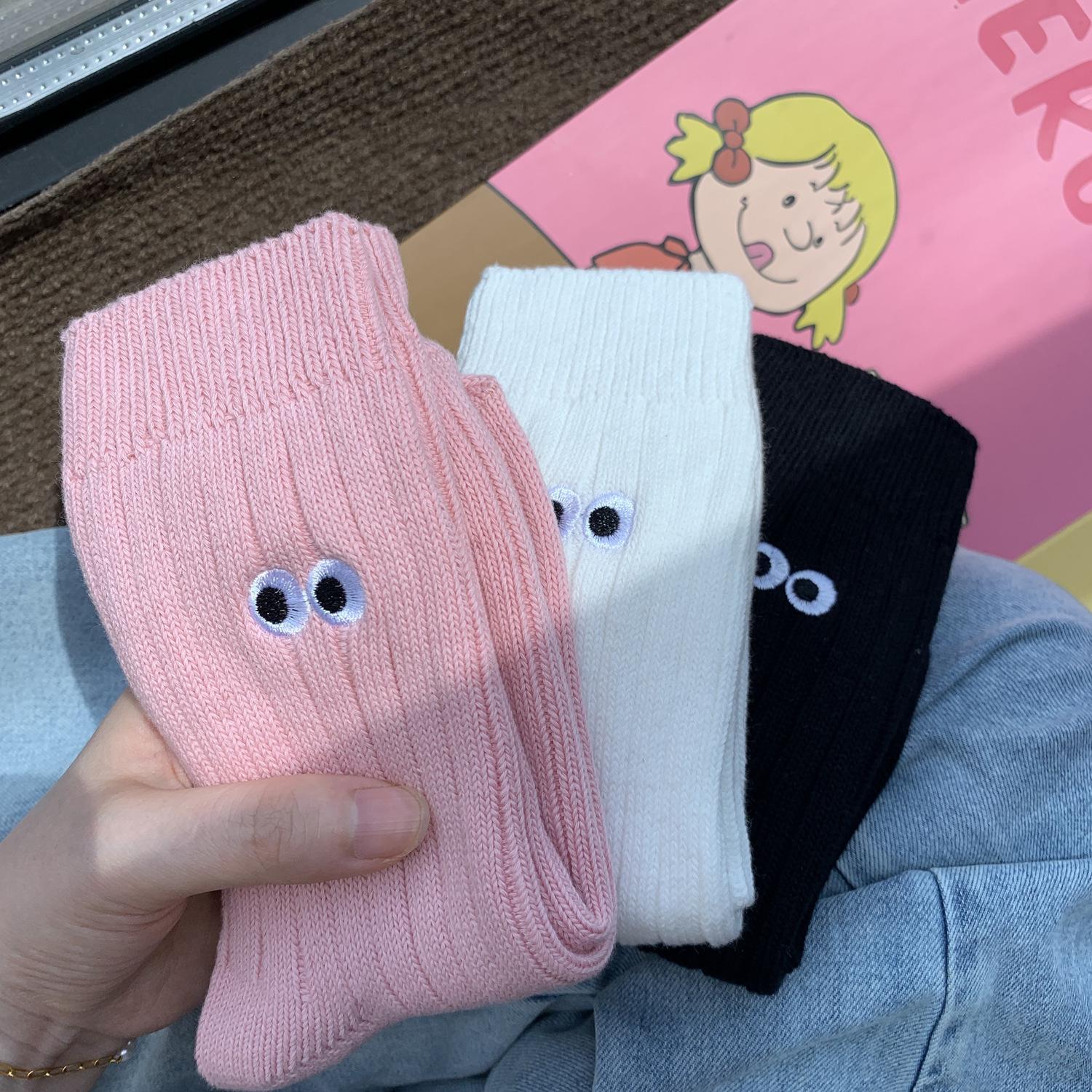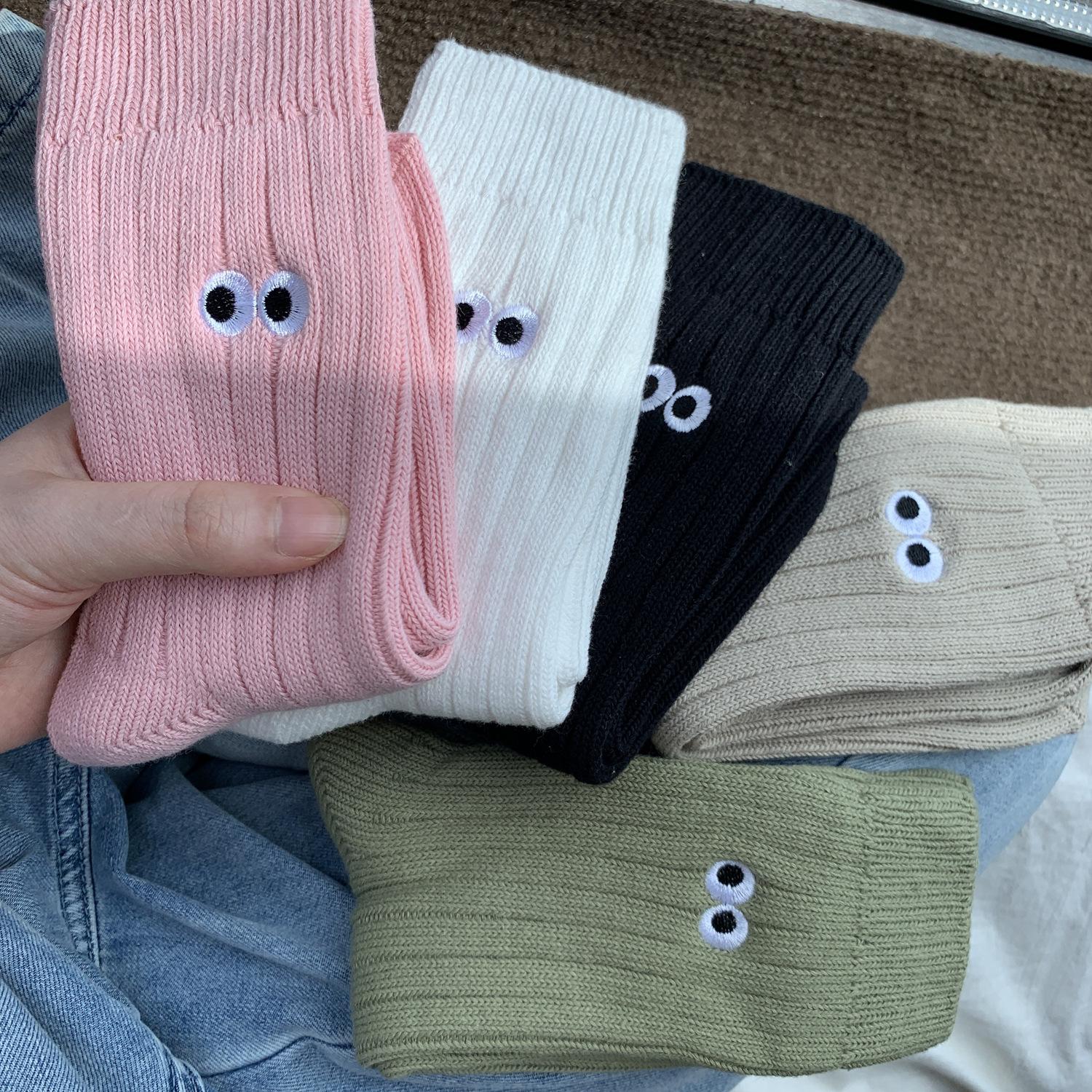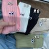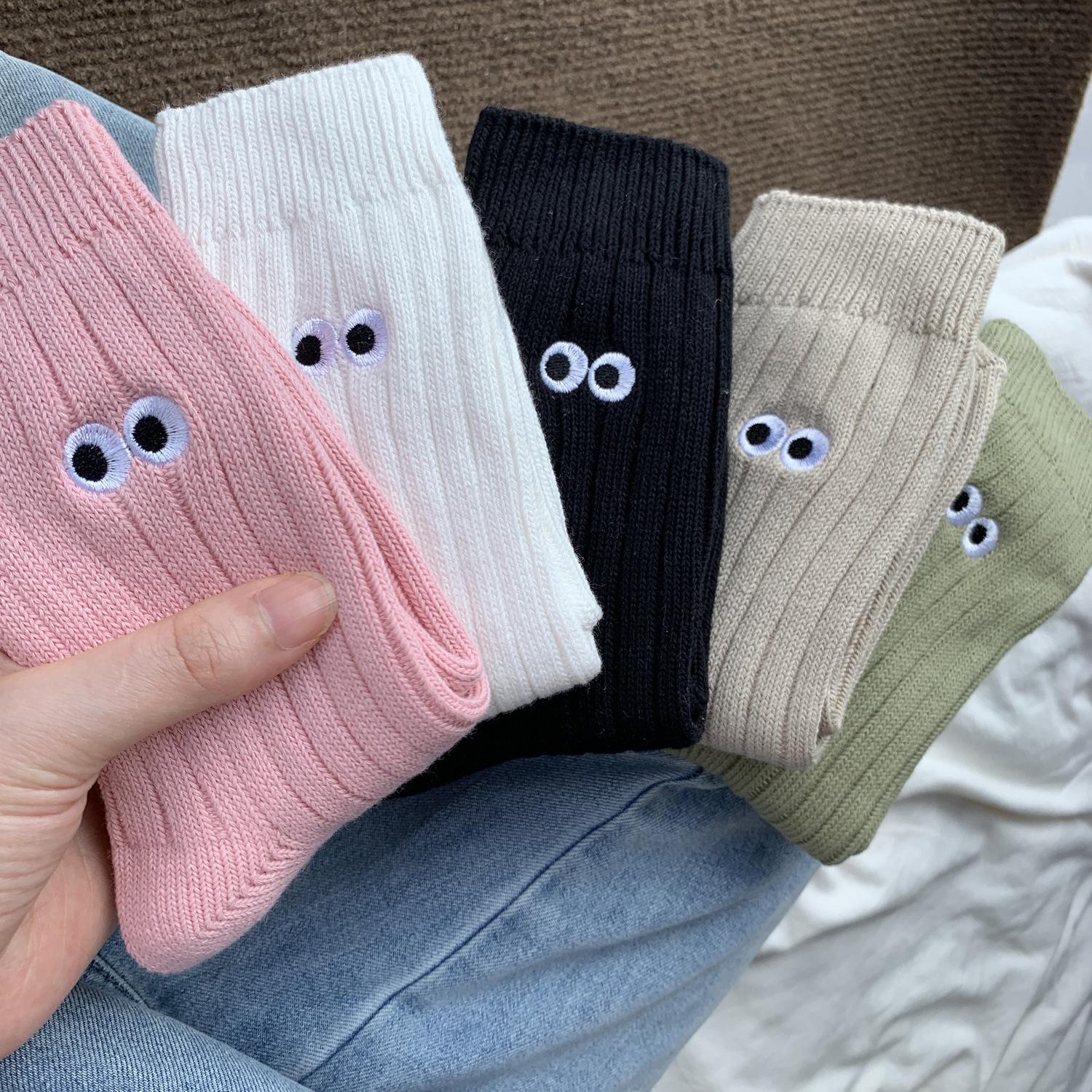 Calcetines hasta media pantorrilla para mujer Moda ins de Corea del Sur que combinan con todo, color sólido, línea gruesa, otoño e invierno, estilo japonés, calcetines de felpa con ojitos bordados, moda