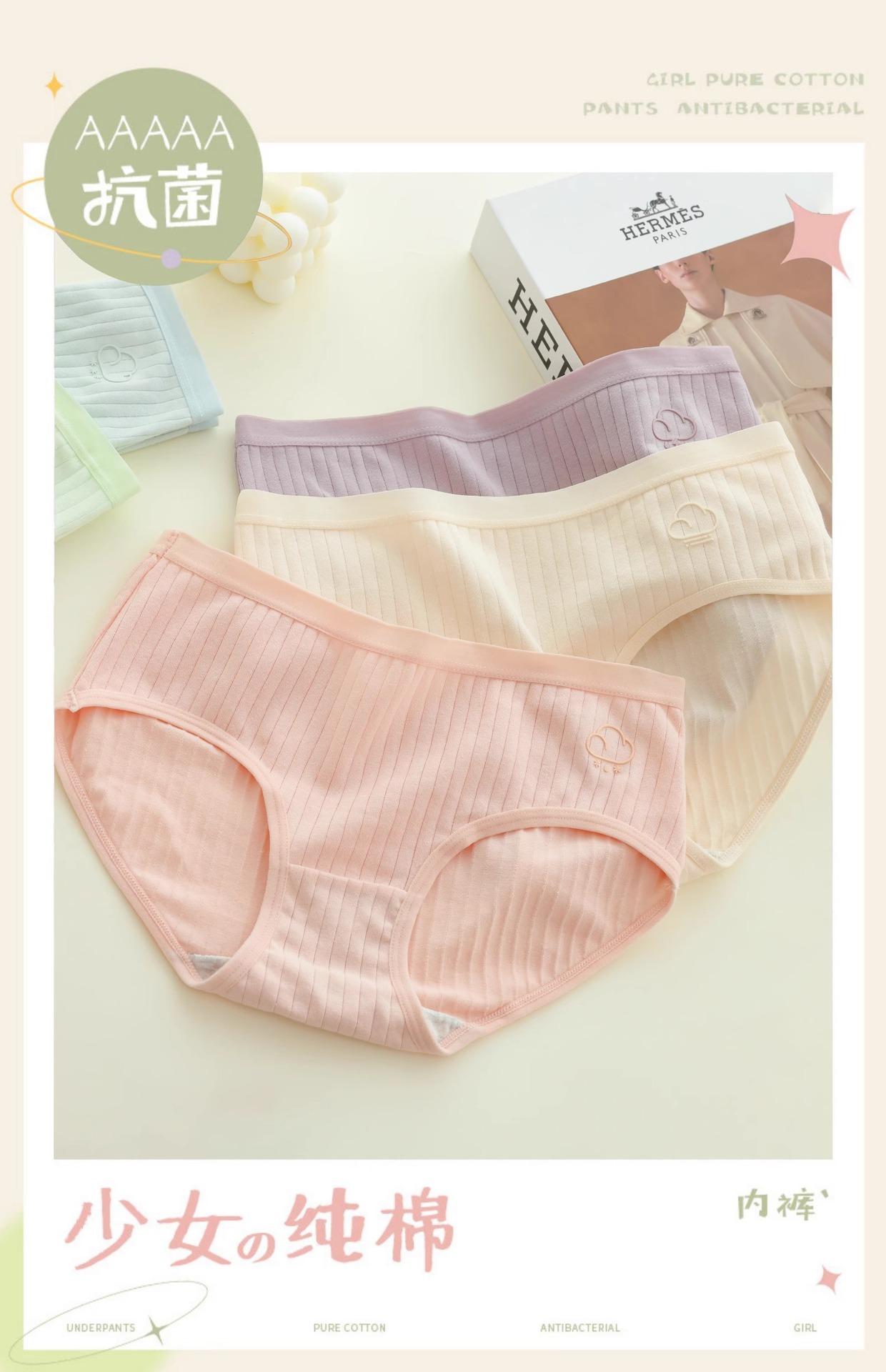 Ropa interior de algodón para mujer, con estampado de dibujos animados para estudiantes, sin costuras, ajustada, transpirable, antibacteriana, de cintura media, venta al por mayor