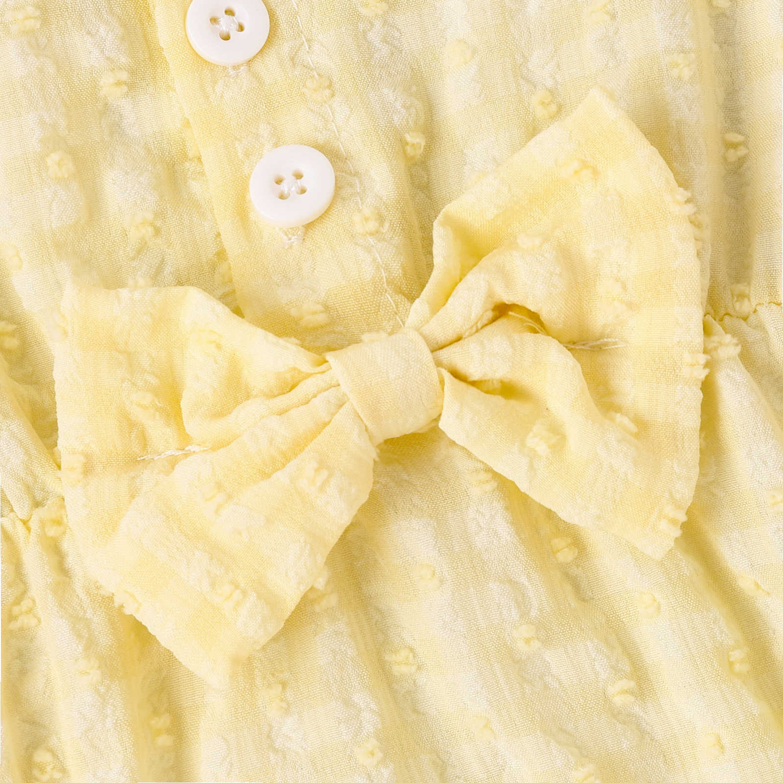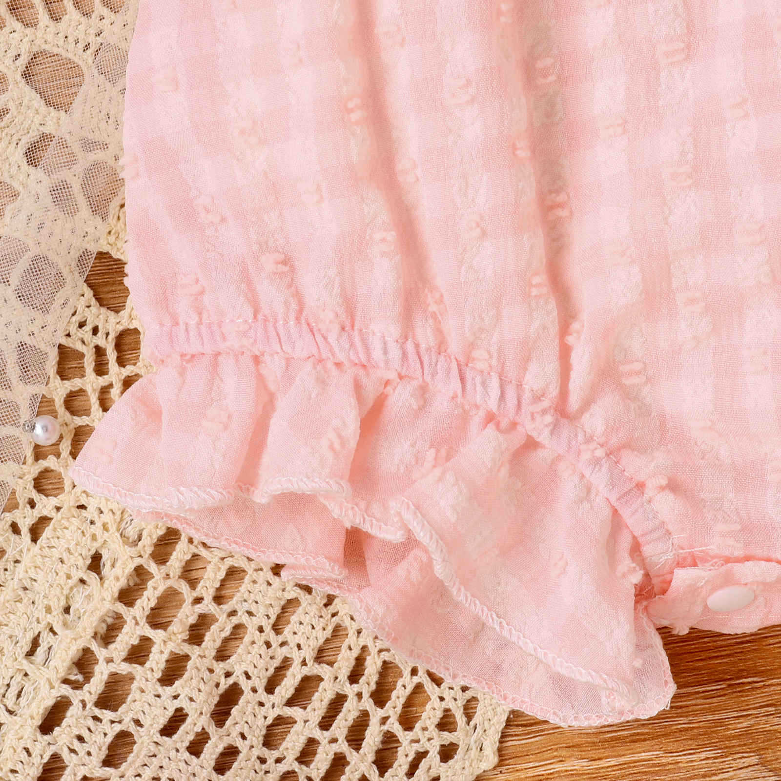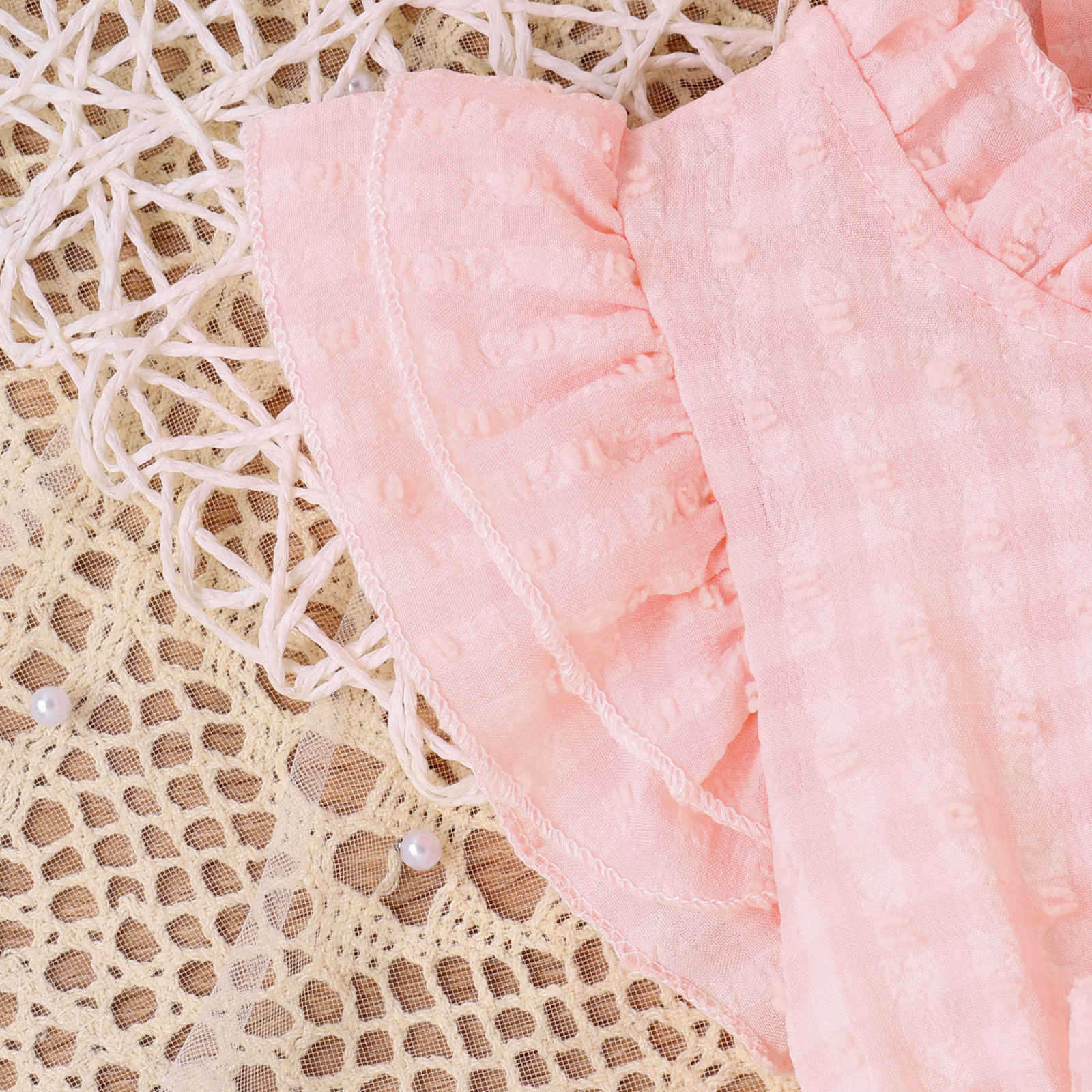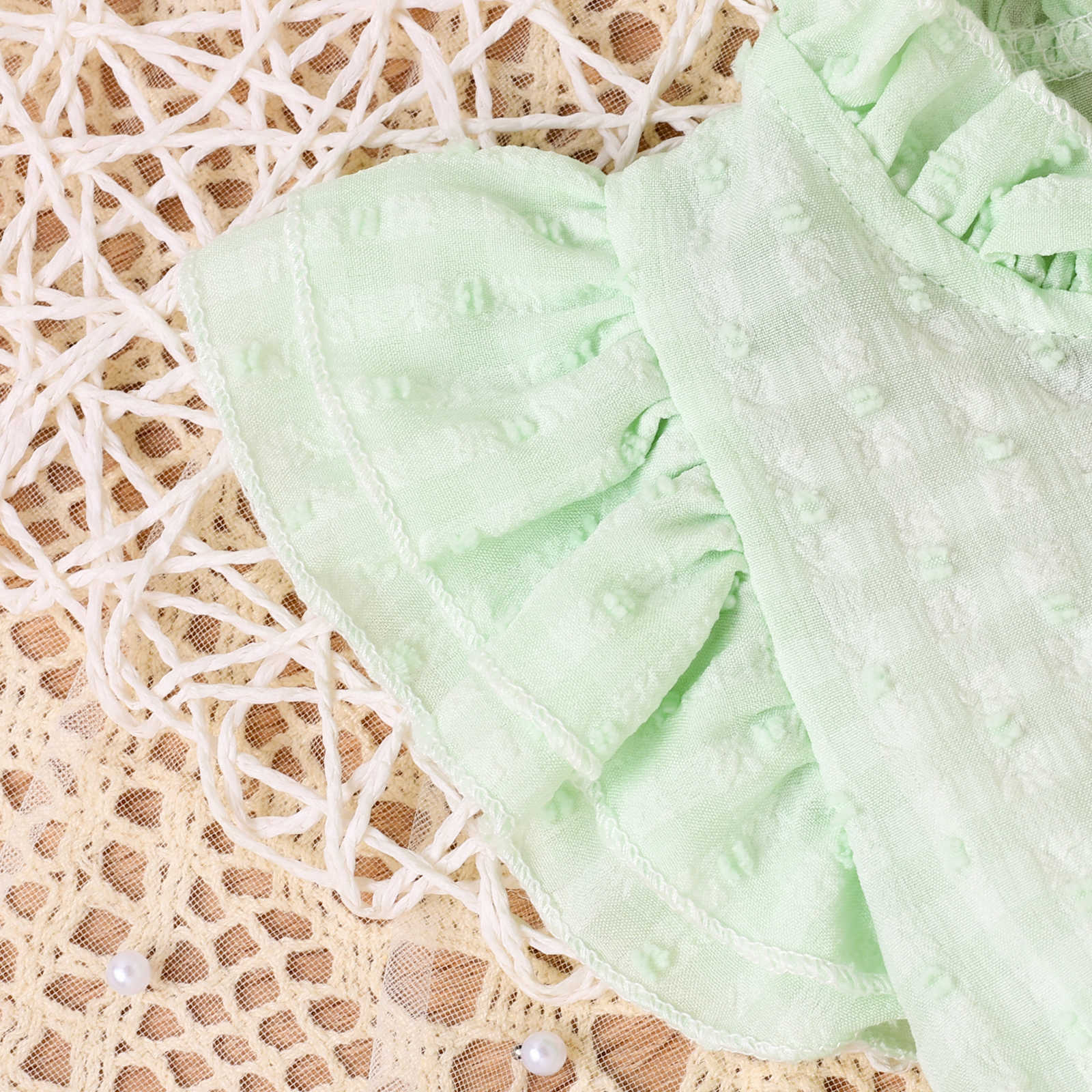 Ropa Infantil Baopai Estilo Japonés y Coreano Primavera y Verano Lindo Manga de Encaje Jacquard Cuadros Patrón Oscuro Lazo Envolvente Triangular Ropa Abierta